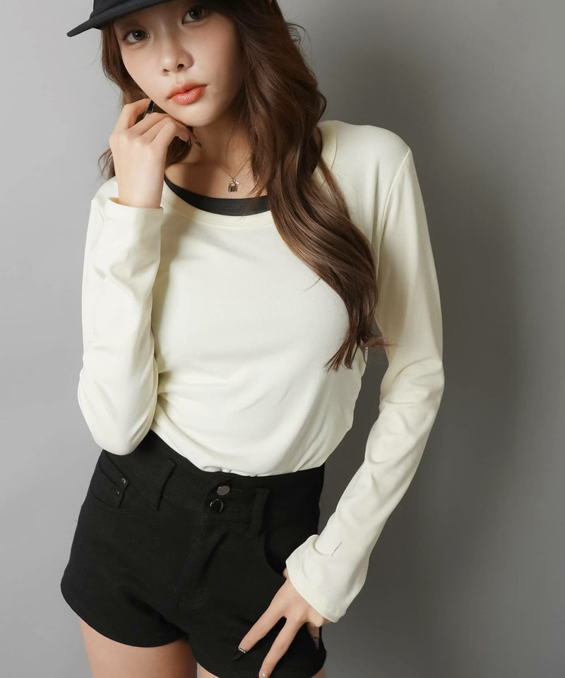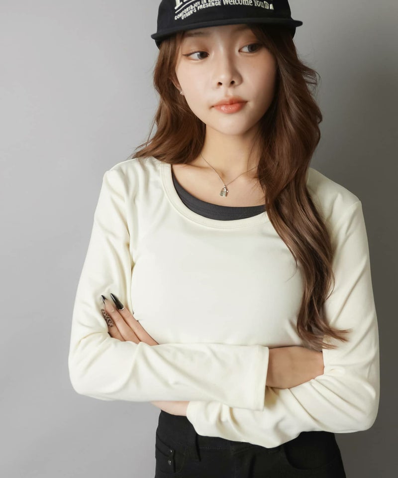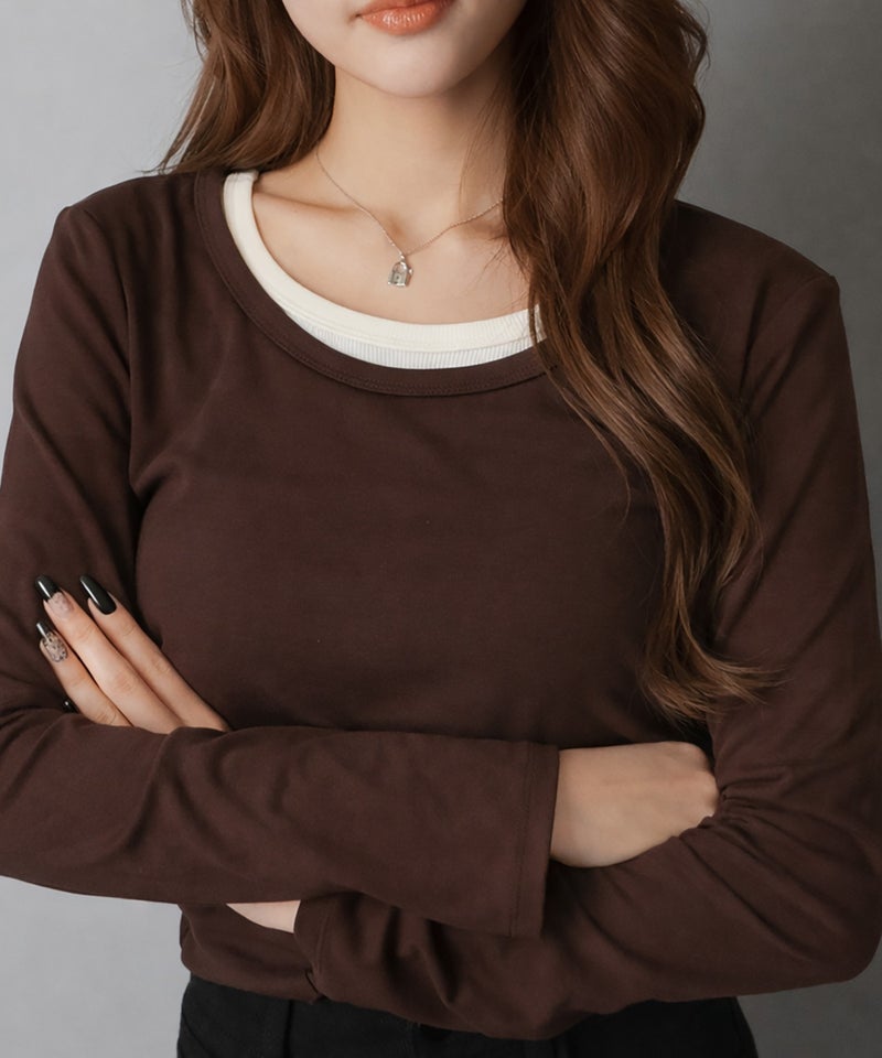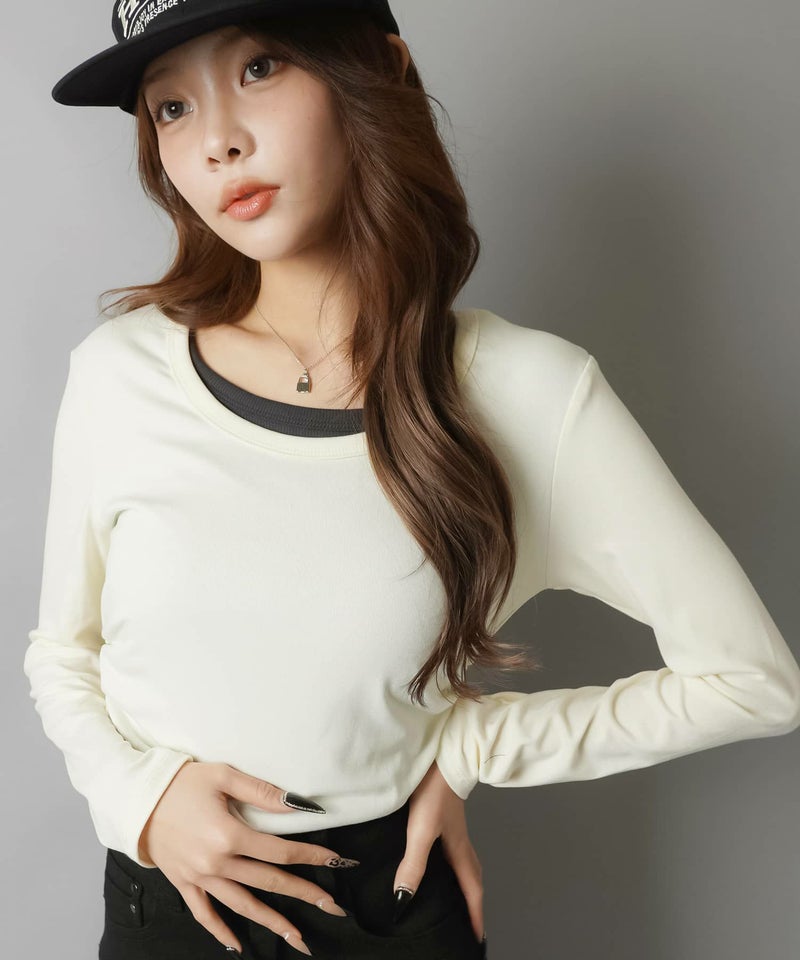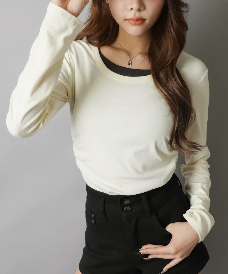 カットソー×インナーを重ねたように見える、人気の“レイヤード風デザイン”トップス。