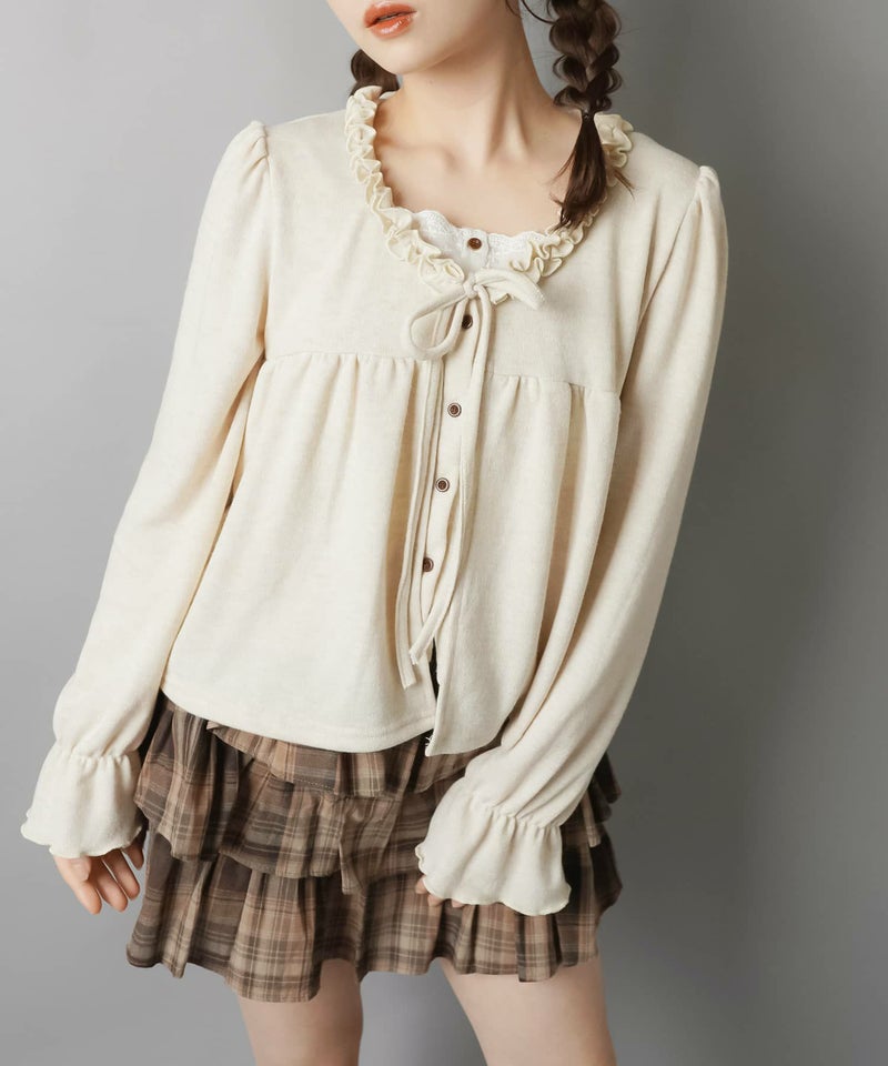 2:フリルとレイヤードのさりげないレースがガーリー感あって可愛い