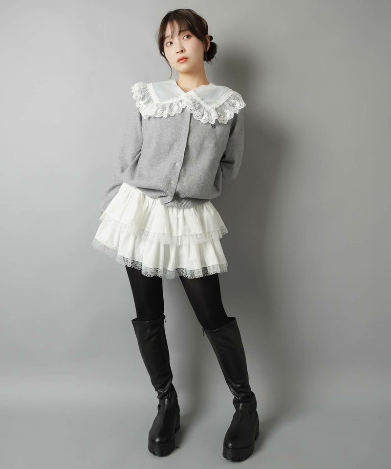 大きめのレースフリルが甘すぎず、フェミニン×ヴィンテージの絶妙ミックスに仕上がる万能アイテムです。