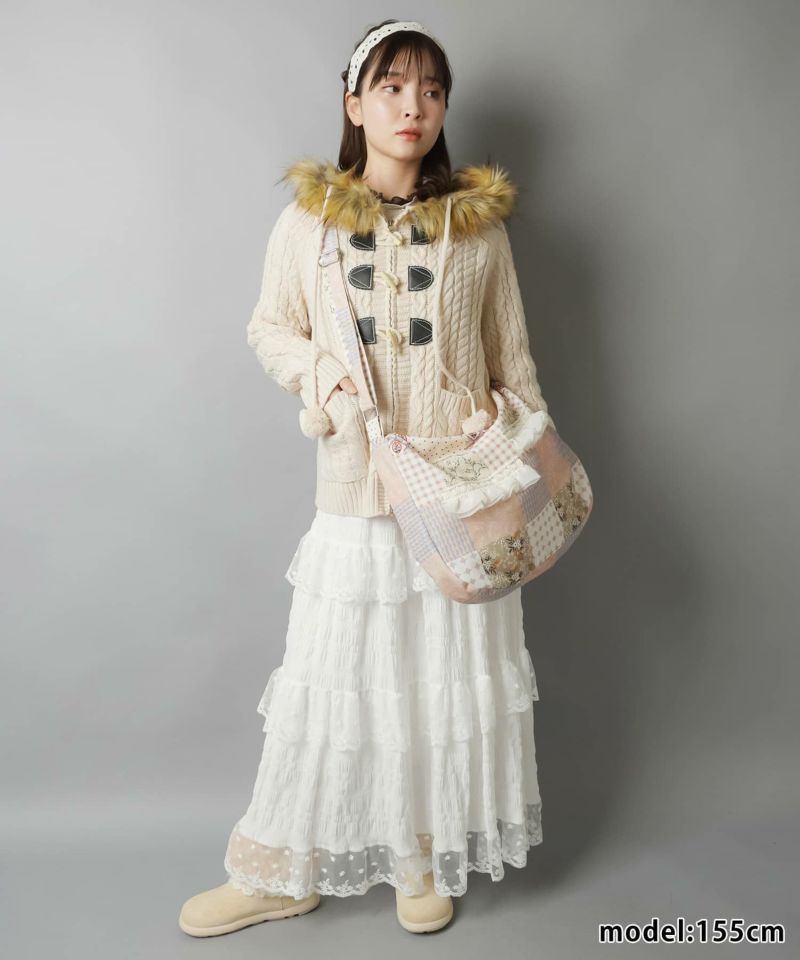 1:ボリュームのあるミックスファーがポイントのニットカーディガン