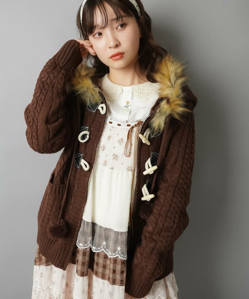 【ナチュラルだけど今っぽい♡ファー付きフードが目を惹くNEO森ガールカーディガン】