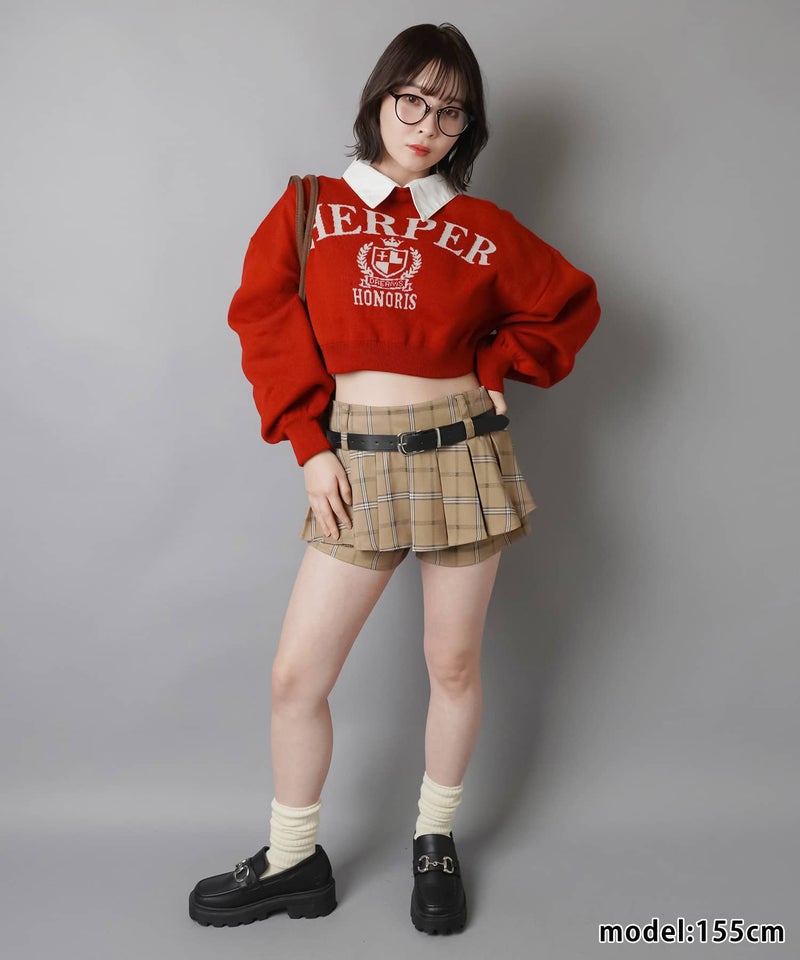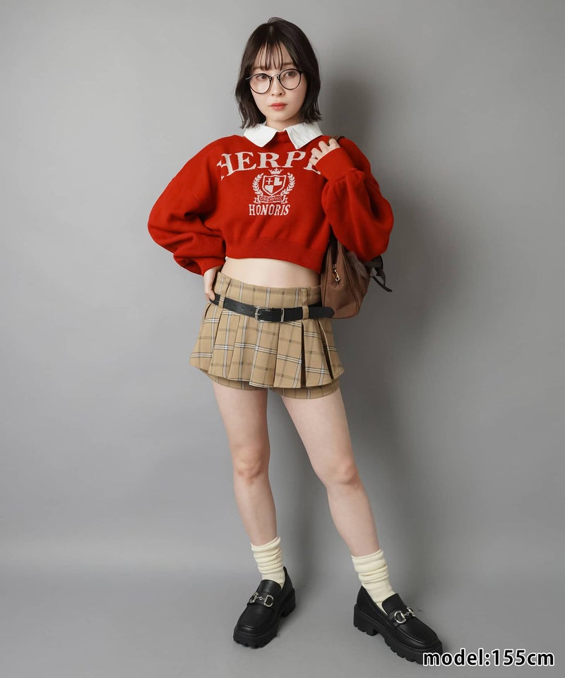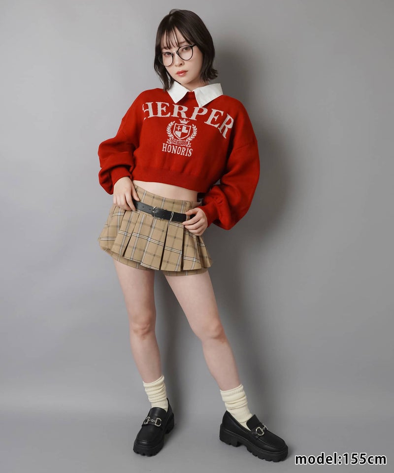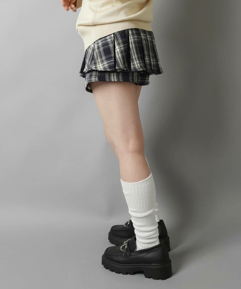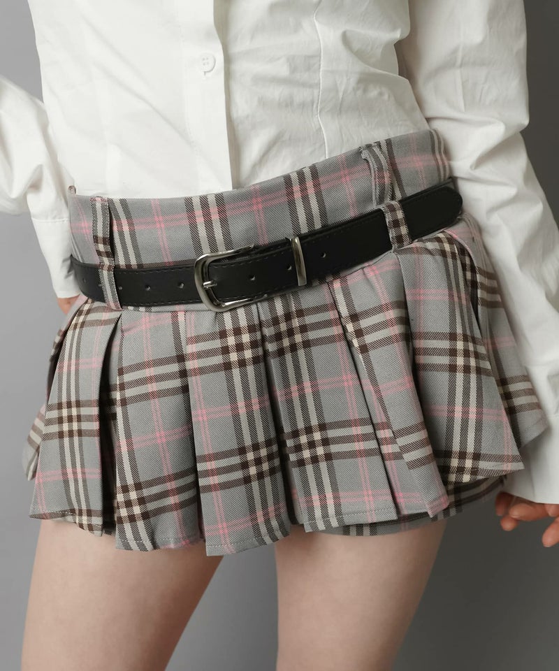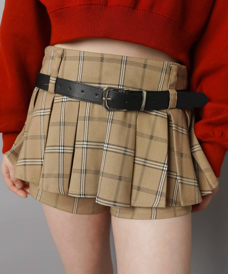インパンレイヤード風プリーツミニスカート/チェック柄/ベルト付き/ギャルJK/スクール風/#平成ギャル