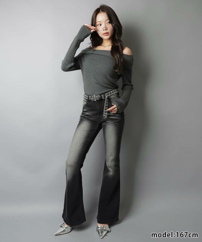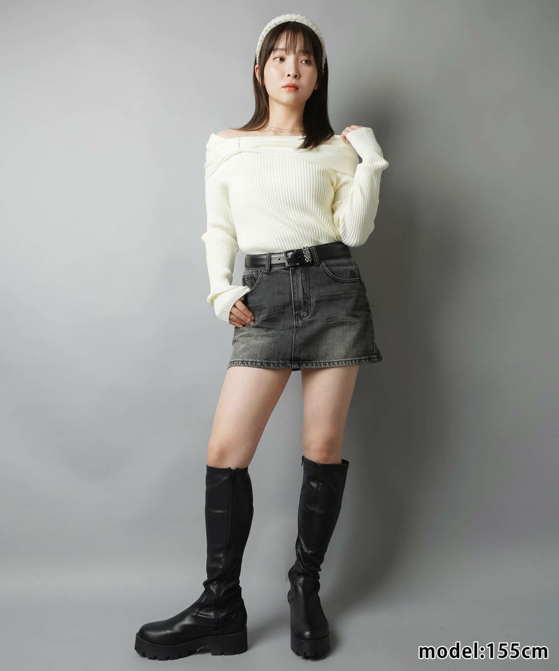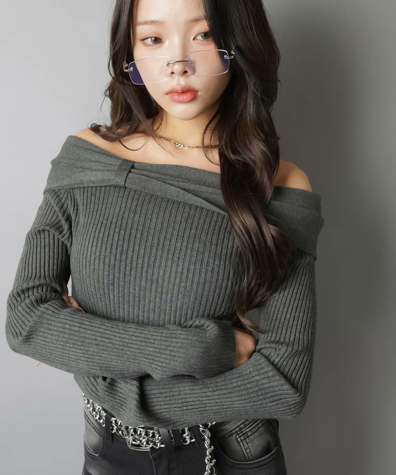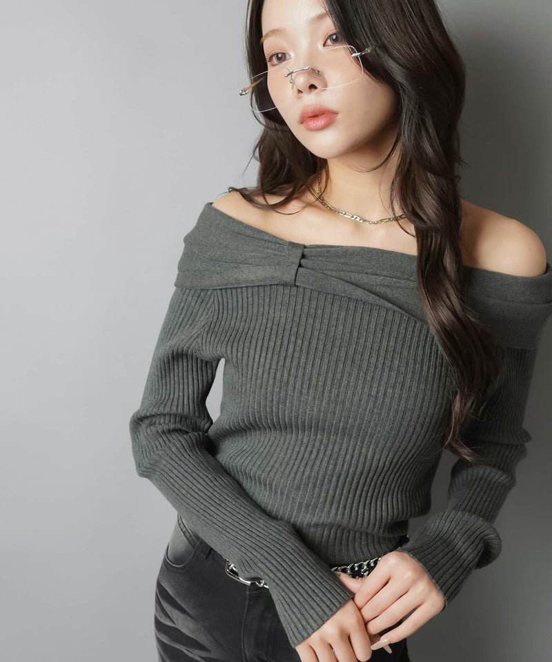1:デコルテラインが綺麗に見えるオフショルデザイン