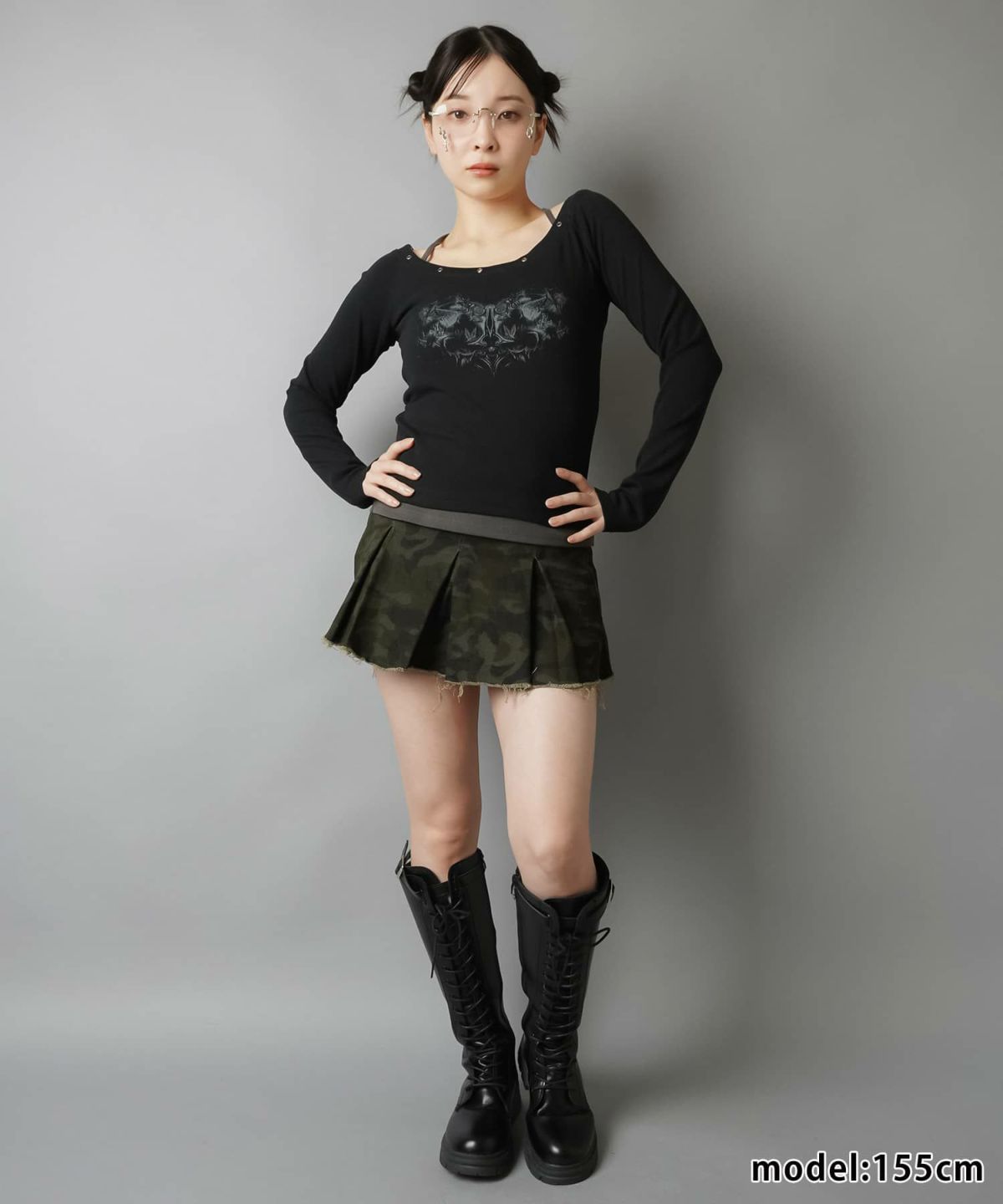 他の画像を見る 【44%OFF】迷彩柄/カモ柄ツイルミニスカート/インナーパンツ付き ¥ 3,850 → ¥ 2,189 税込 SALE 2点以上10%OFFクーポン対象 カートに入れる お気に入りに追加