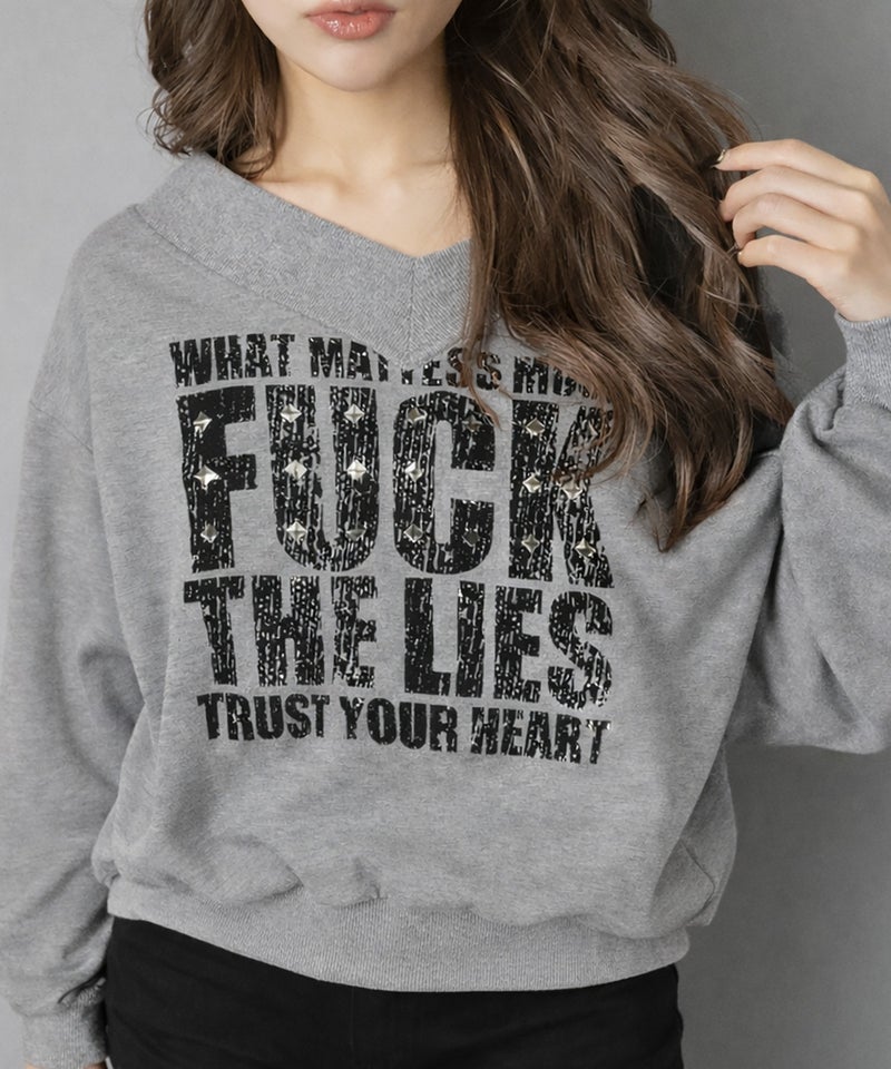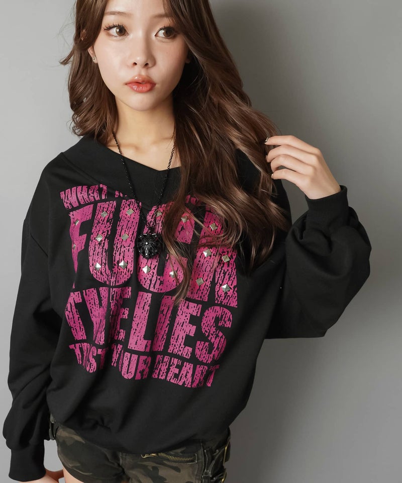 程よく肌見せできるVネックデザインに、インパクト抜群のビッグロゴを落とし込んだギャルムード全開の主役級スウェット。