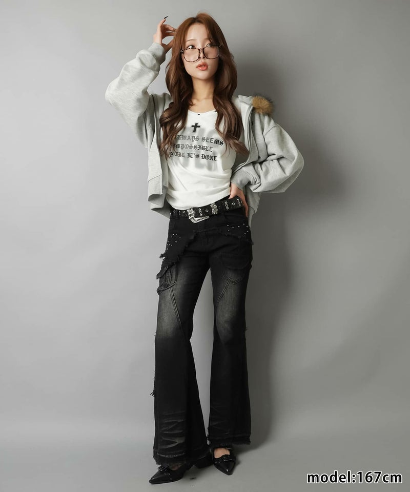 3:フレアパンツやショーパン合わせでY2Kバランスが完成
