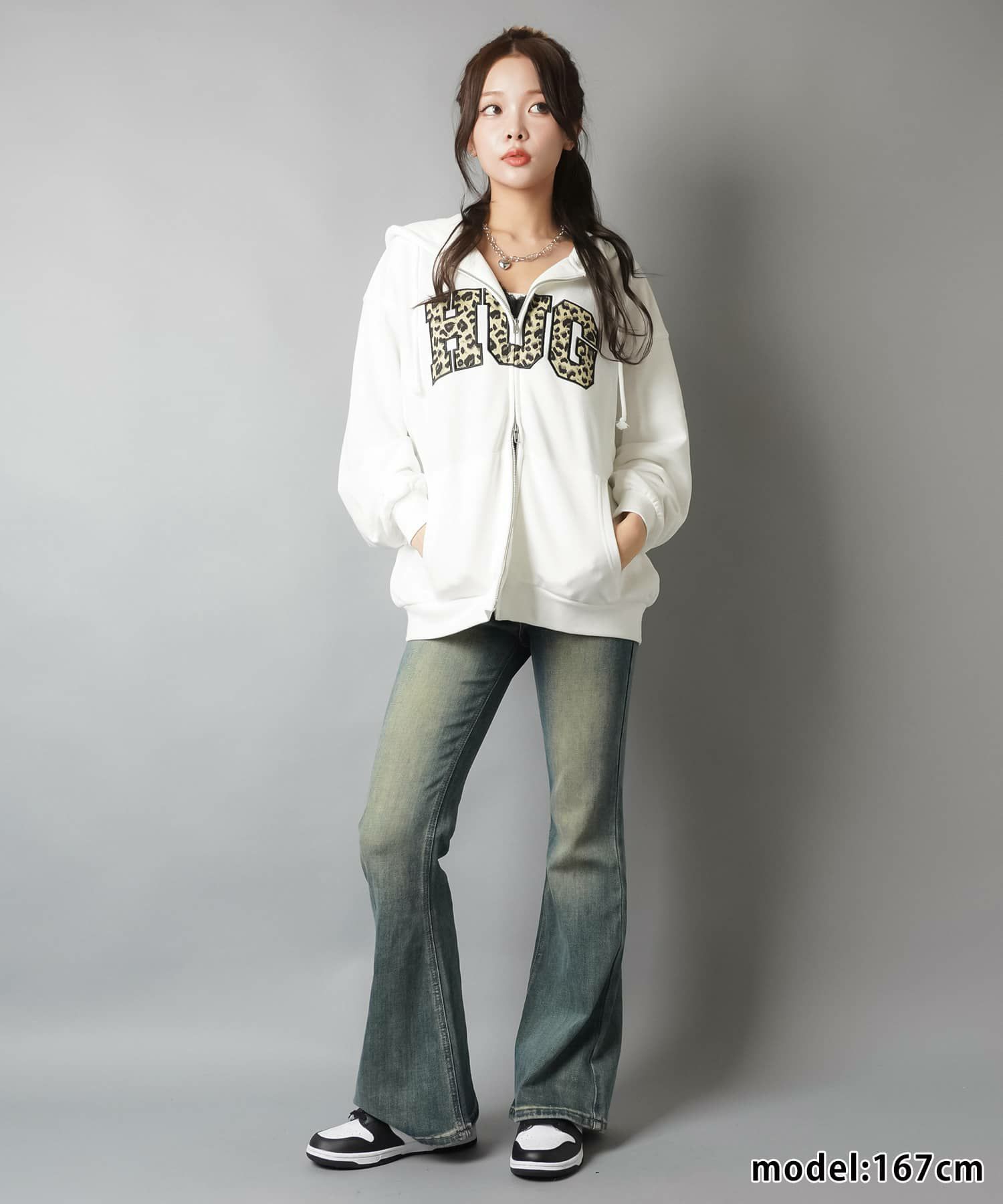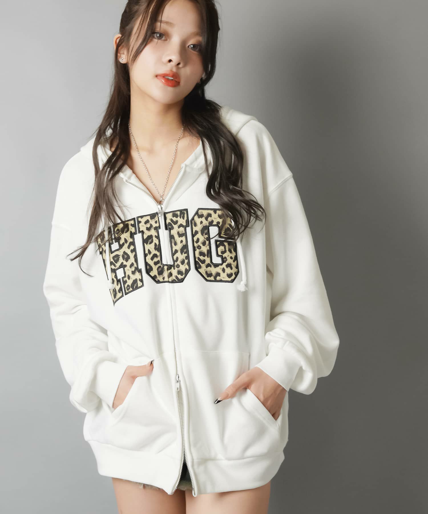 大胆なレオパードロゴがコーデのアクセントになる、存在感バツグンのWジップパーカー。