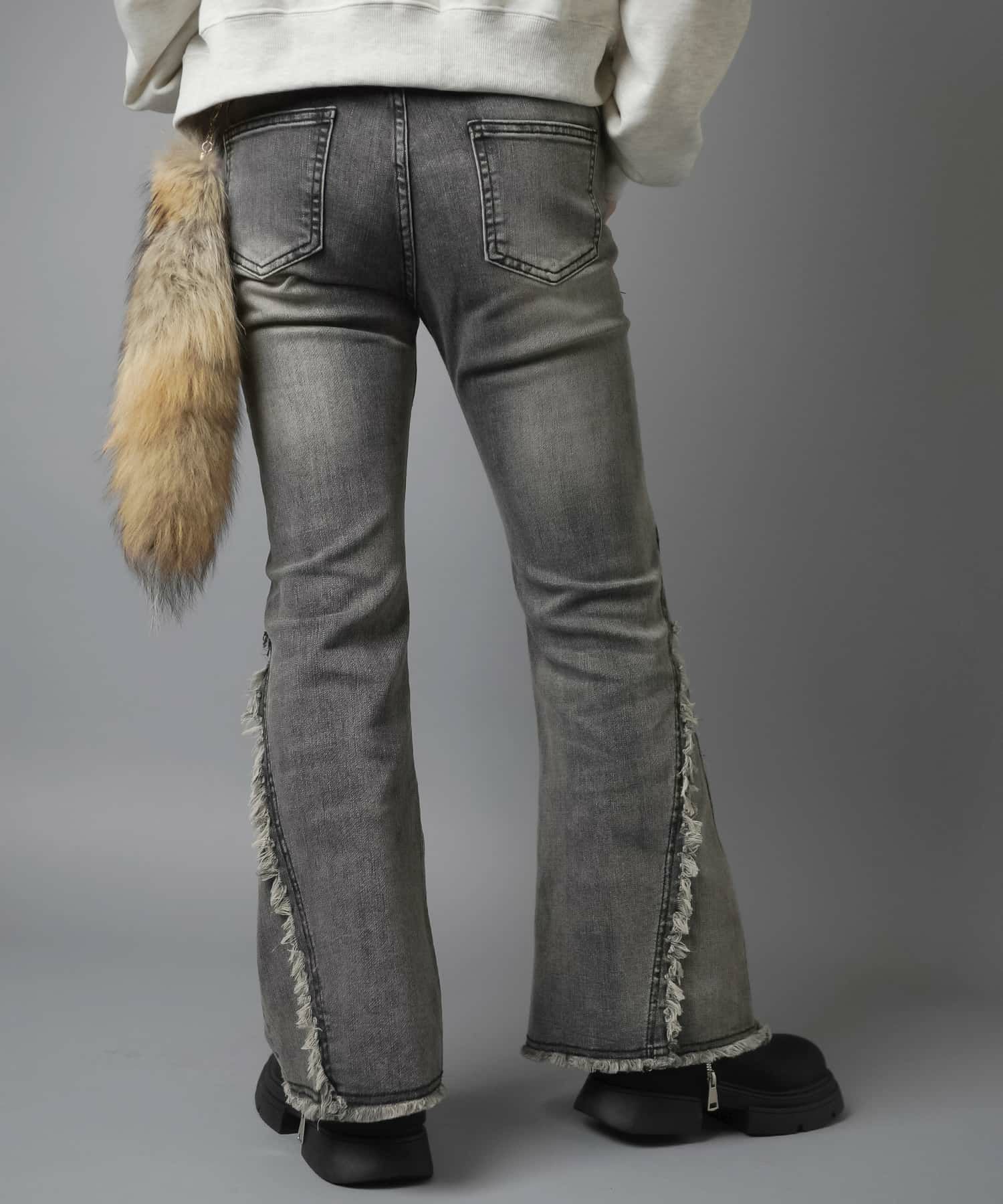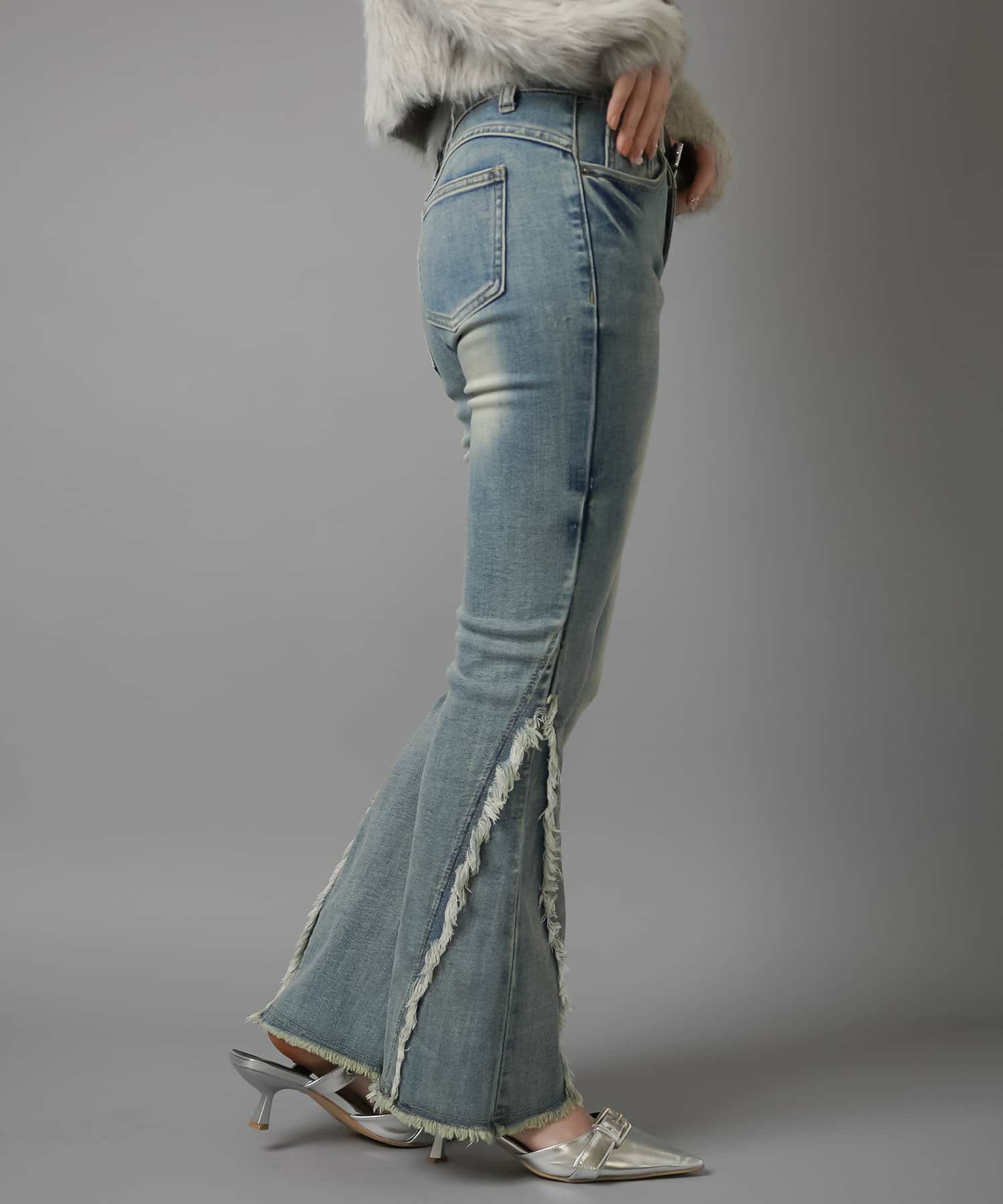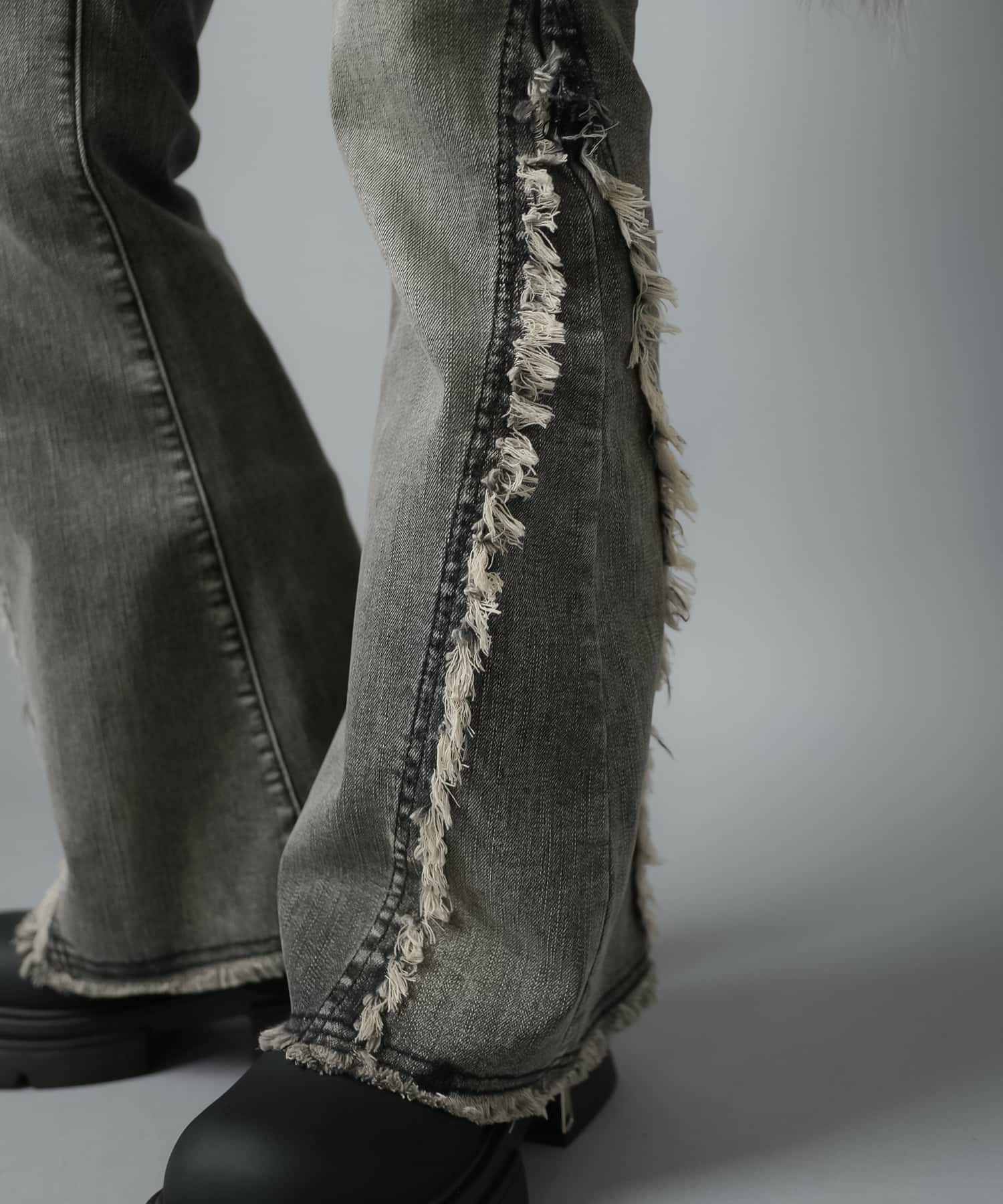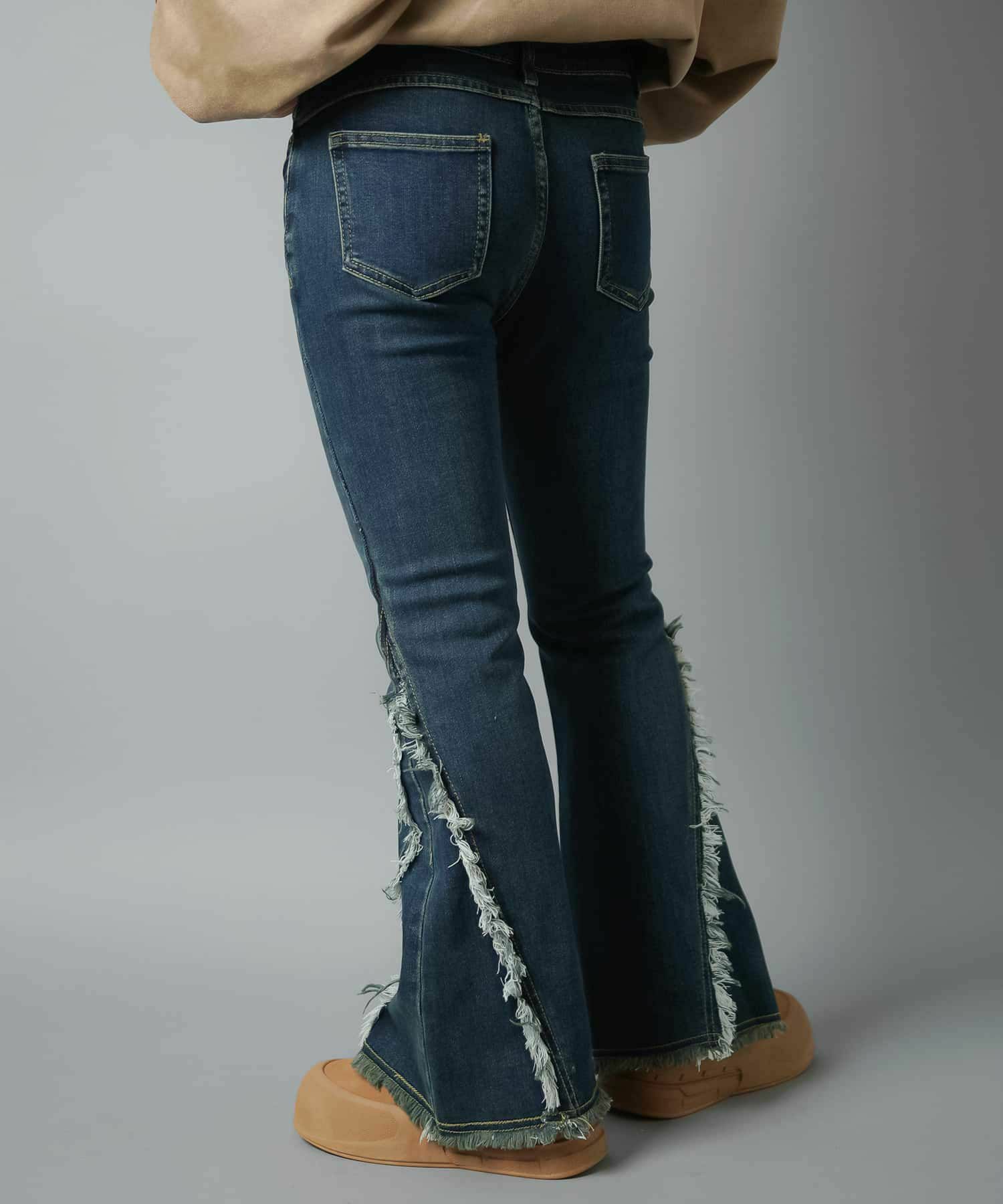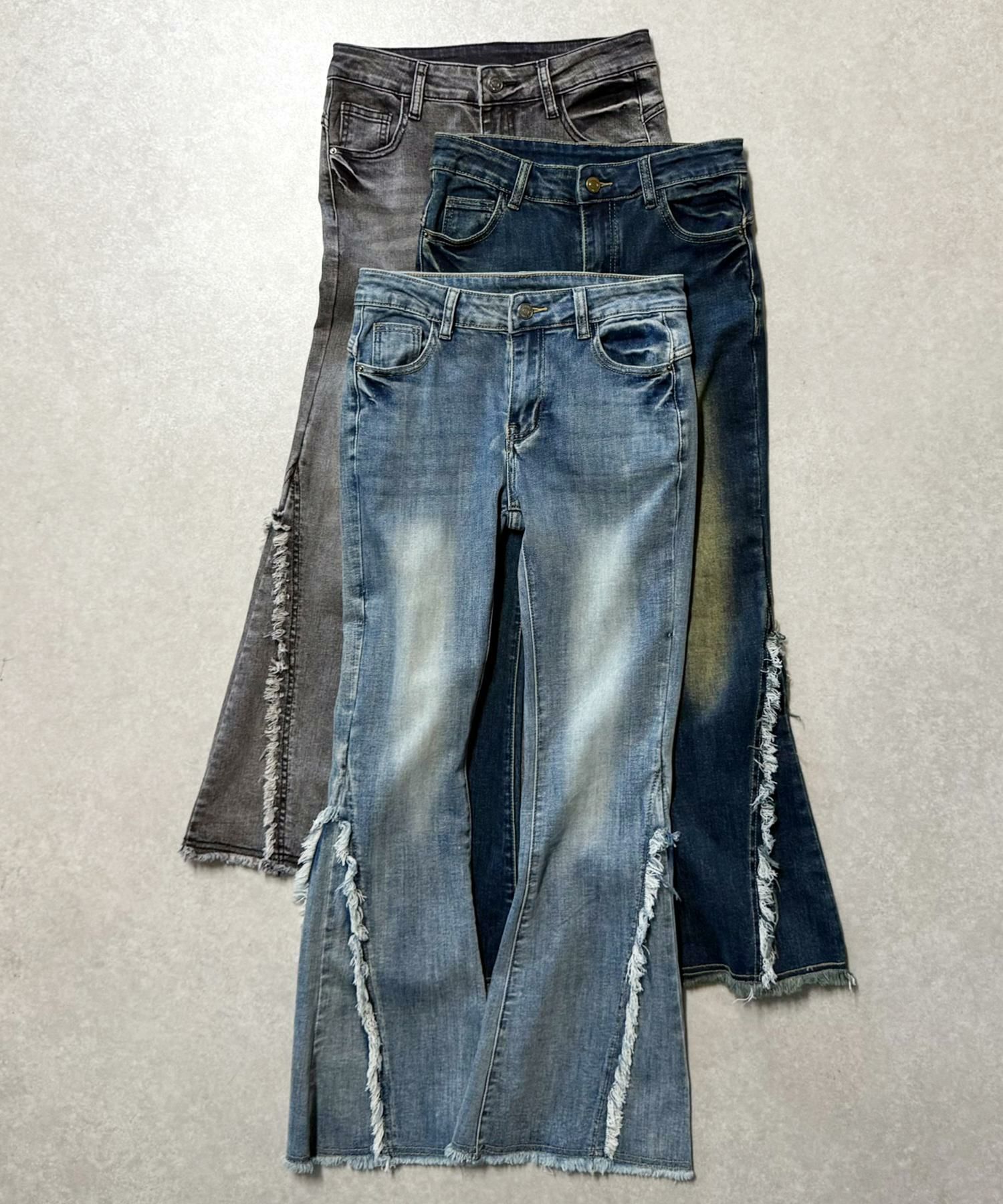 【履くだけで旬なコーデが完成!脚長効果◎トレンドのフリンジデニムパンツ】