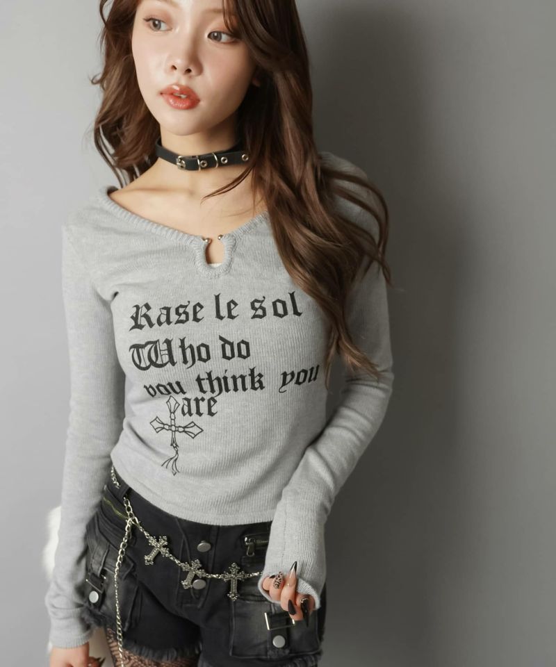 ボートネック長袖ニット/オールドイングリッシュロゴ/#平成ギャル