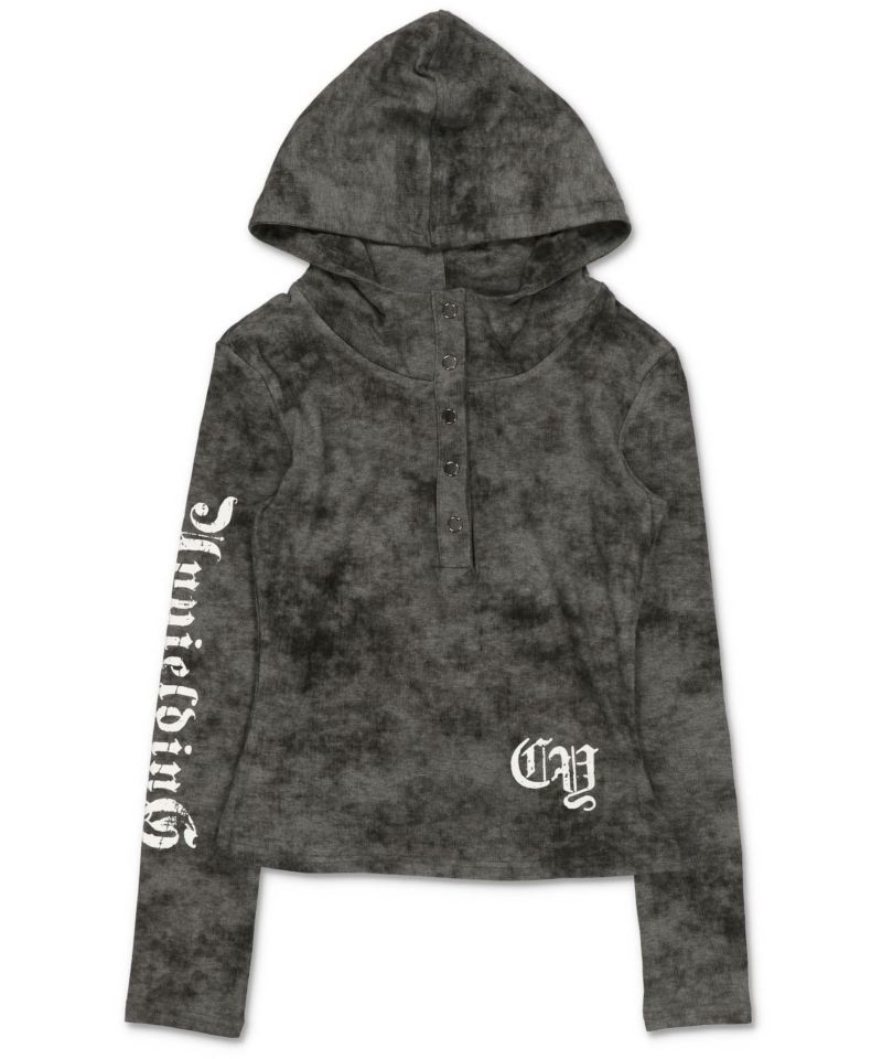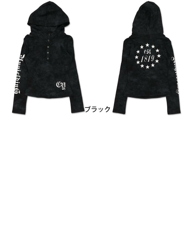 フード付き長袖カットソー/ヘンリーネック/ムラ染め