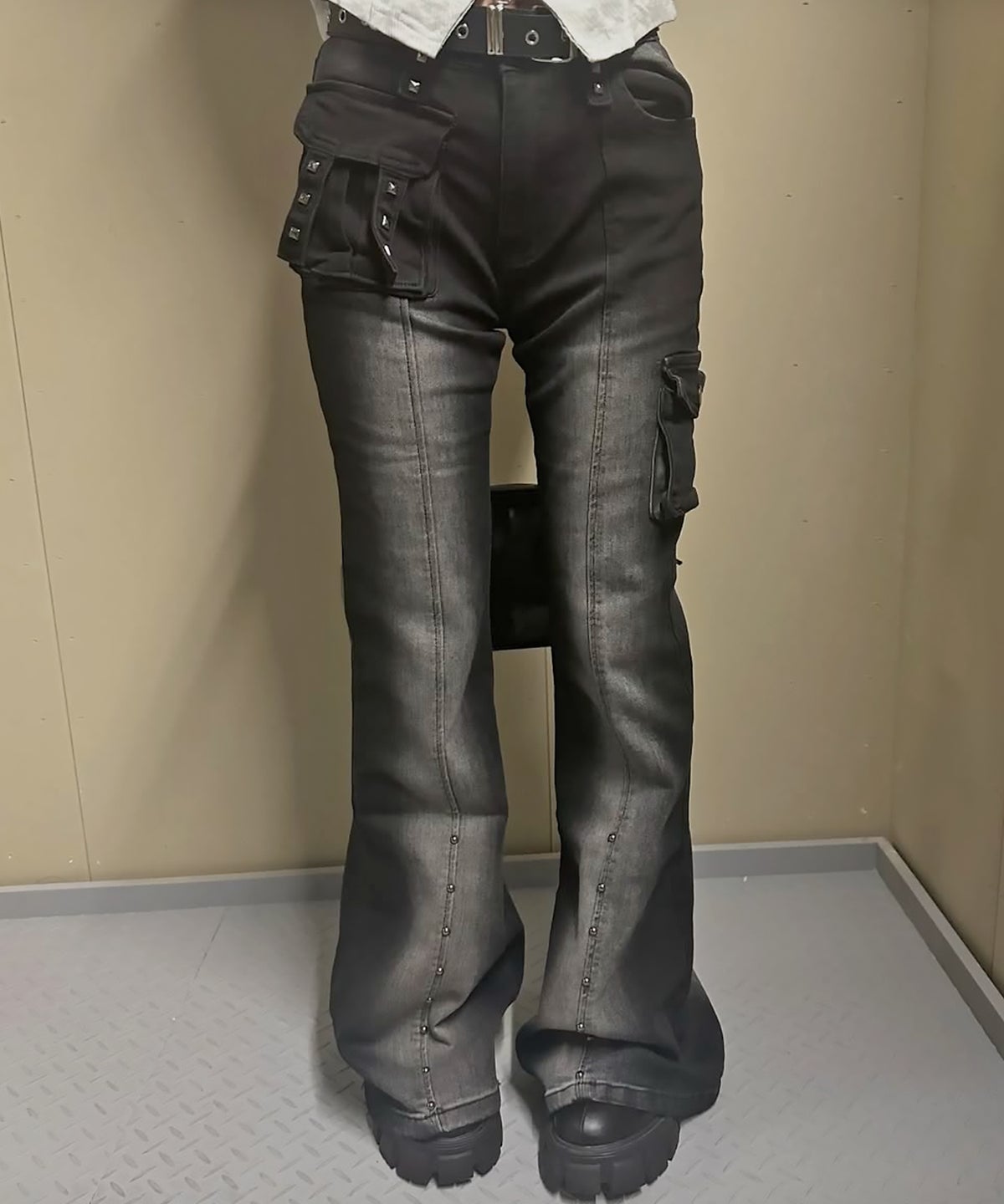 ミニスカート、フレアパンツ、クロップド丈、へそ出し、厚底、