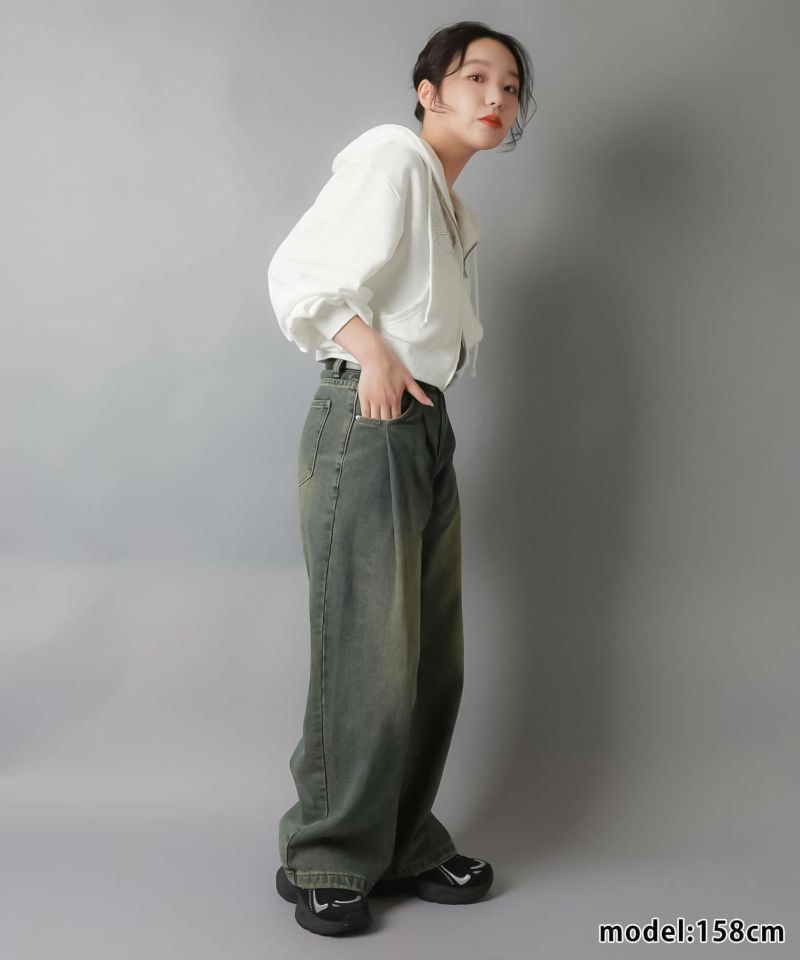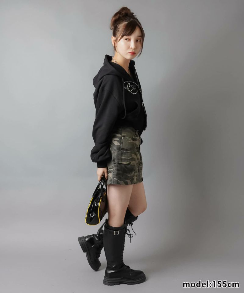【キラキラのラインストーンロゴが可愛いWジップショートパーカー】