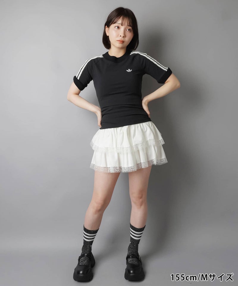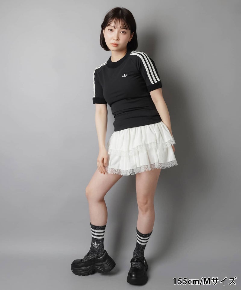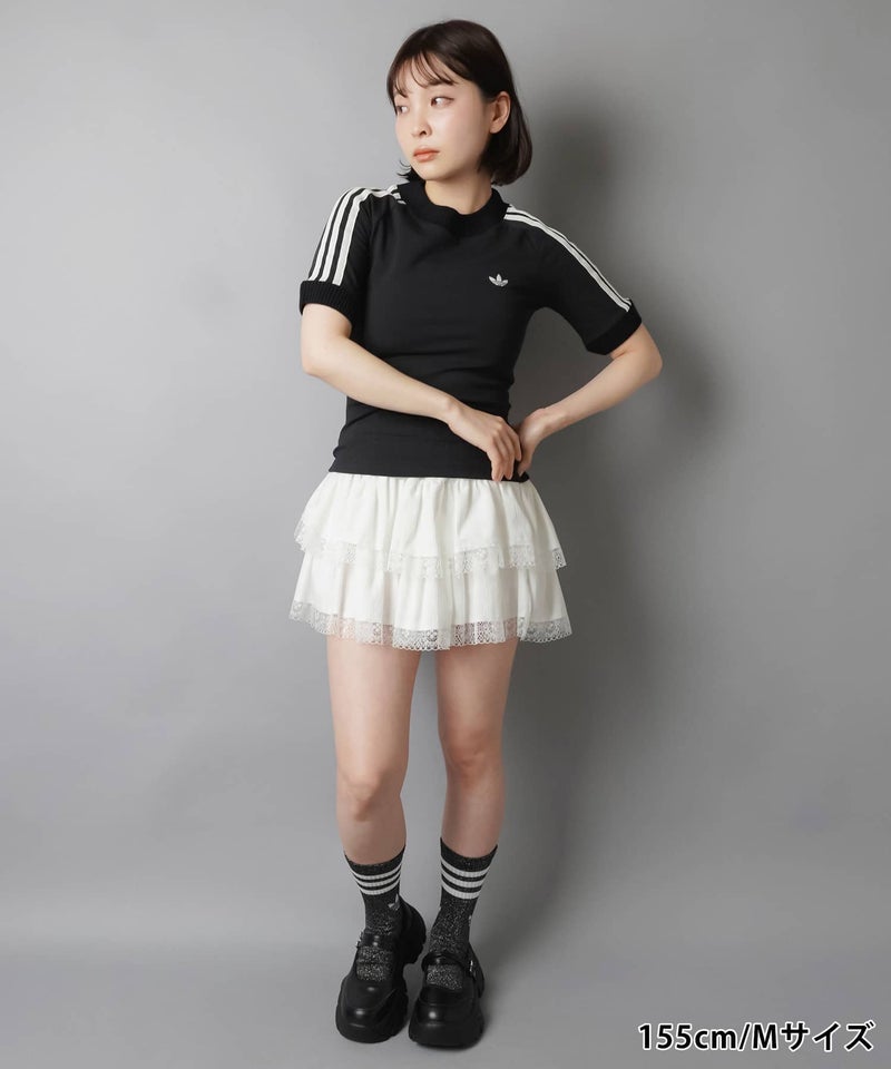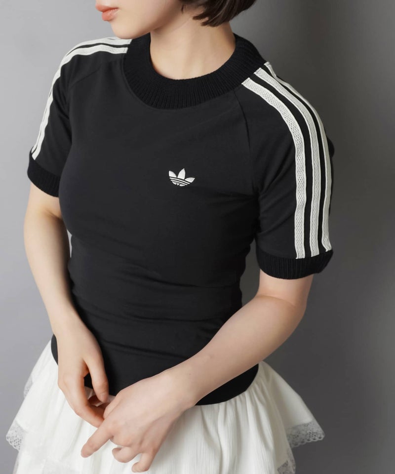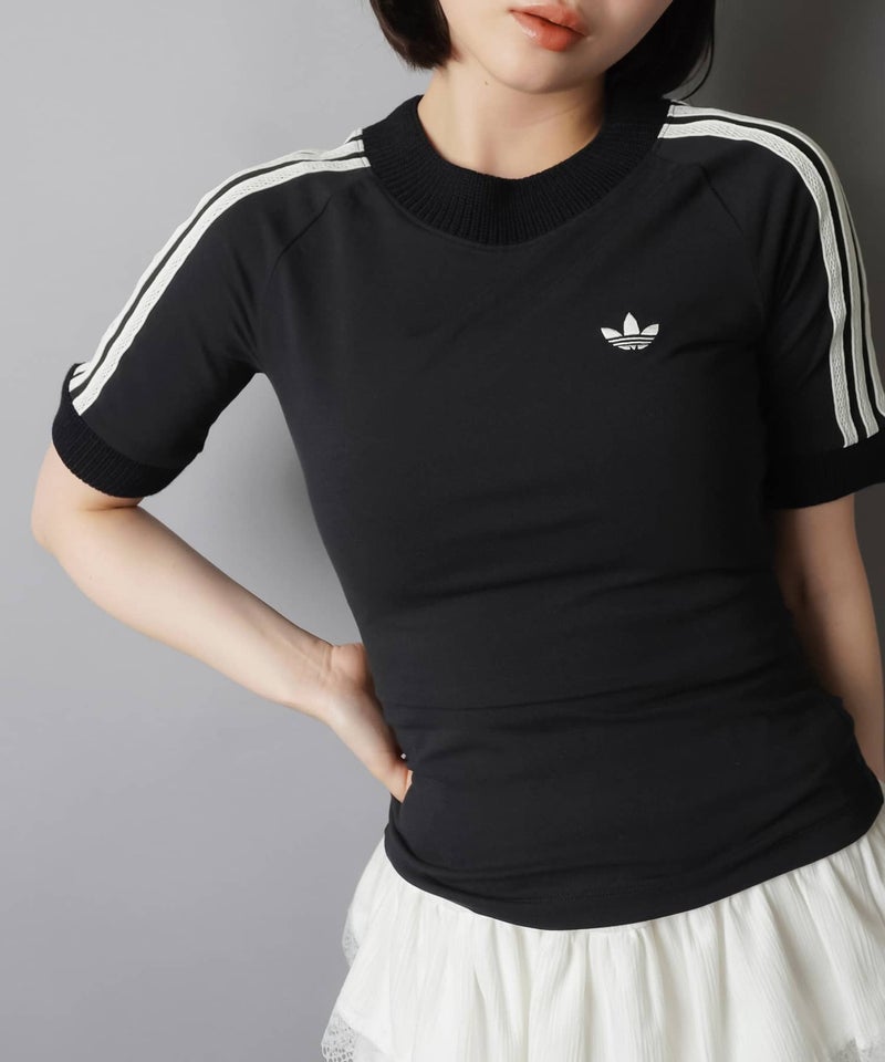≪adidas/アディダス≫リブネック半袖Tシャツ/クロシェディティール