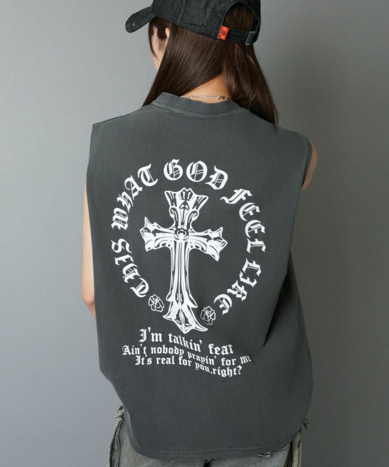 バックプリントには今年注目のクロスモチーフを大きくデザイン。