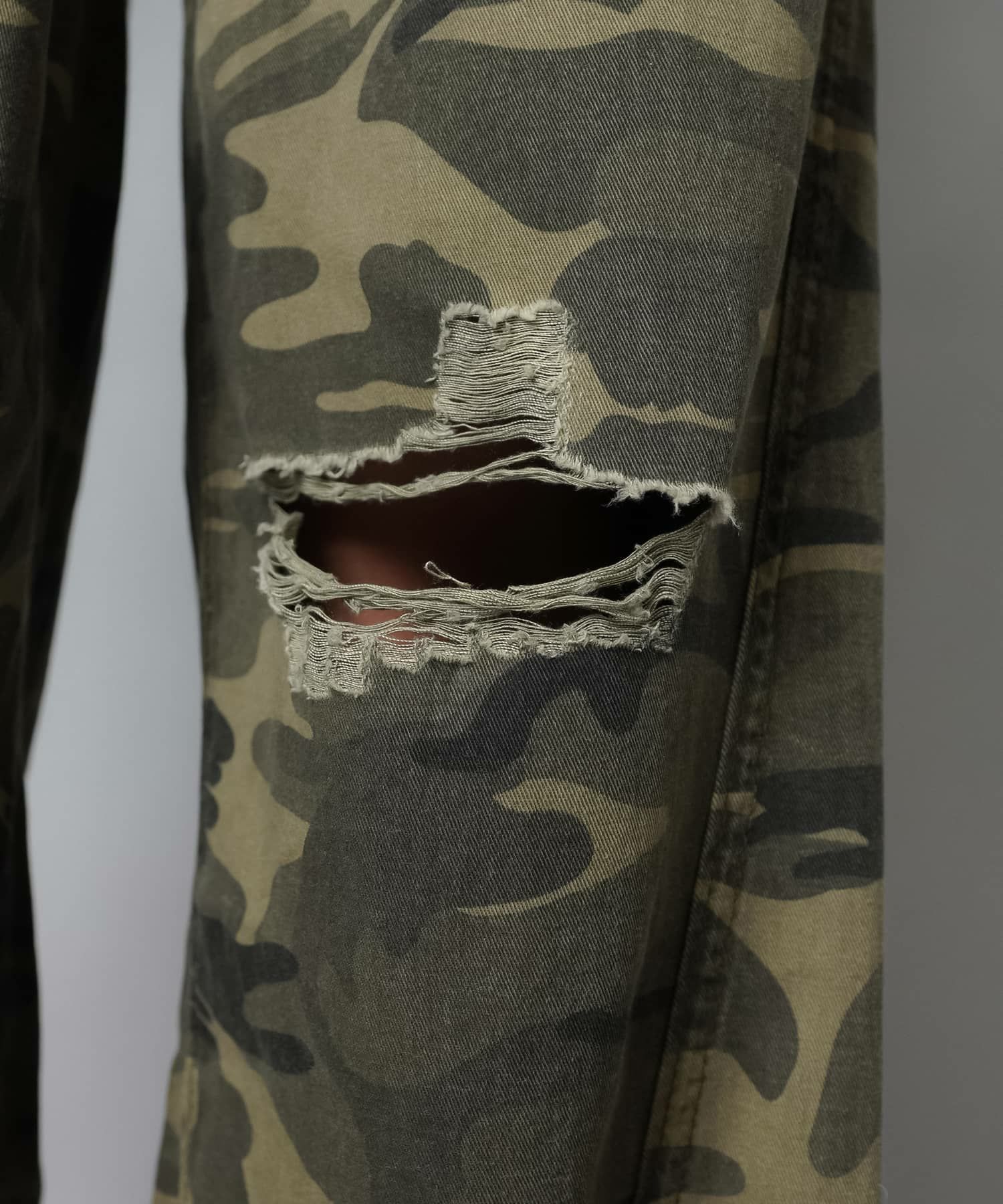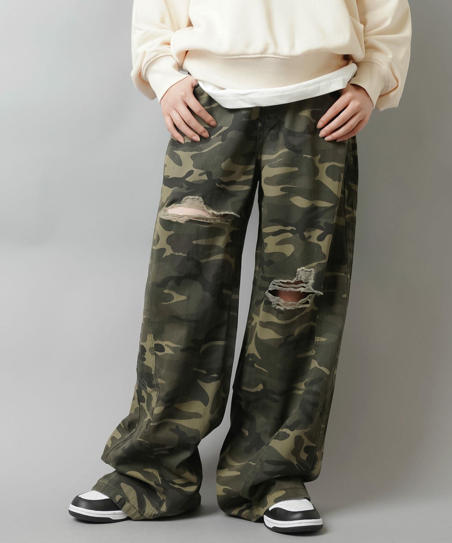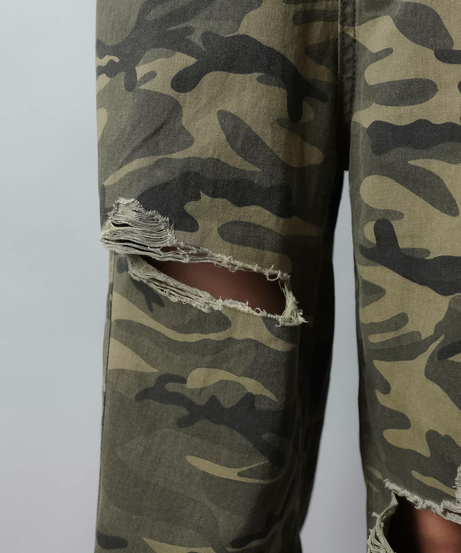 カモ柄/迷彩柄ワイドダメージパンツ
