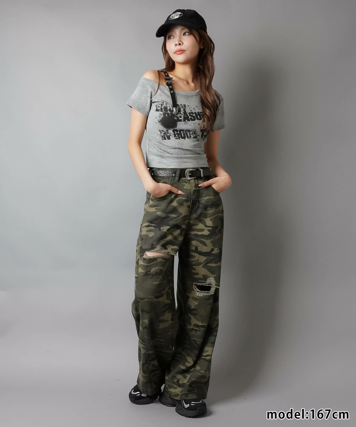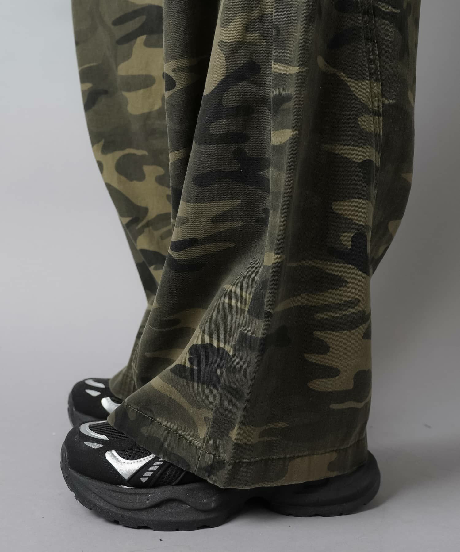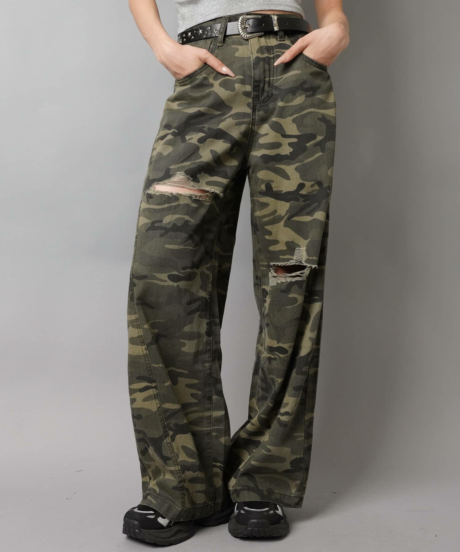 カモ柄/迷彩柄ワイドダメージパンツ