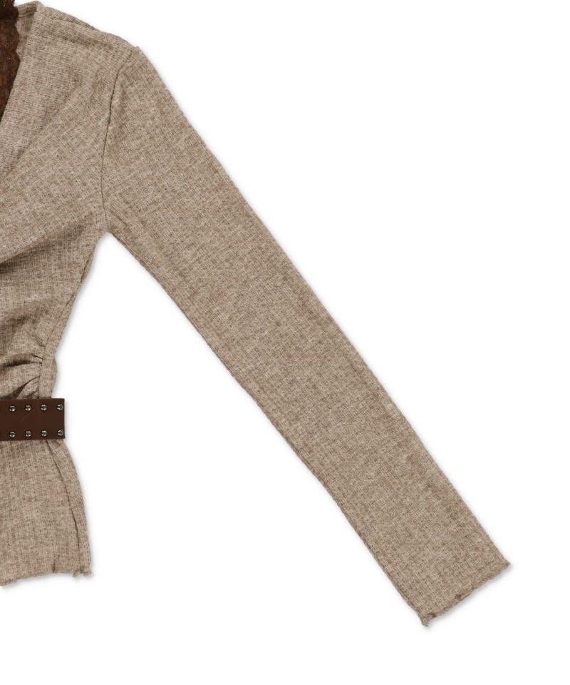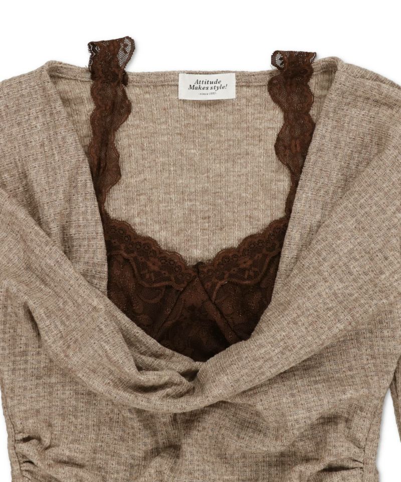 キャミソールレイヤード風長袖ドレープニット/ベルト付き