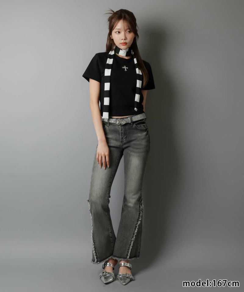 【クロスパーツが目を惹くショート丈/クロップド丈ミニT】】