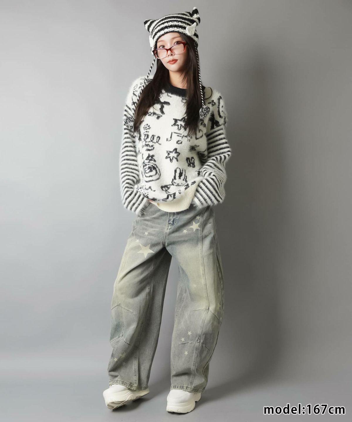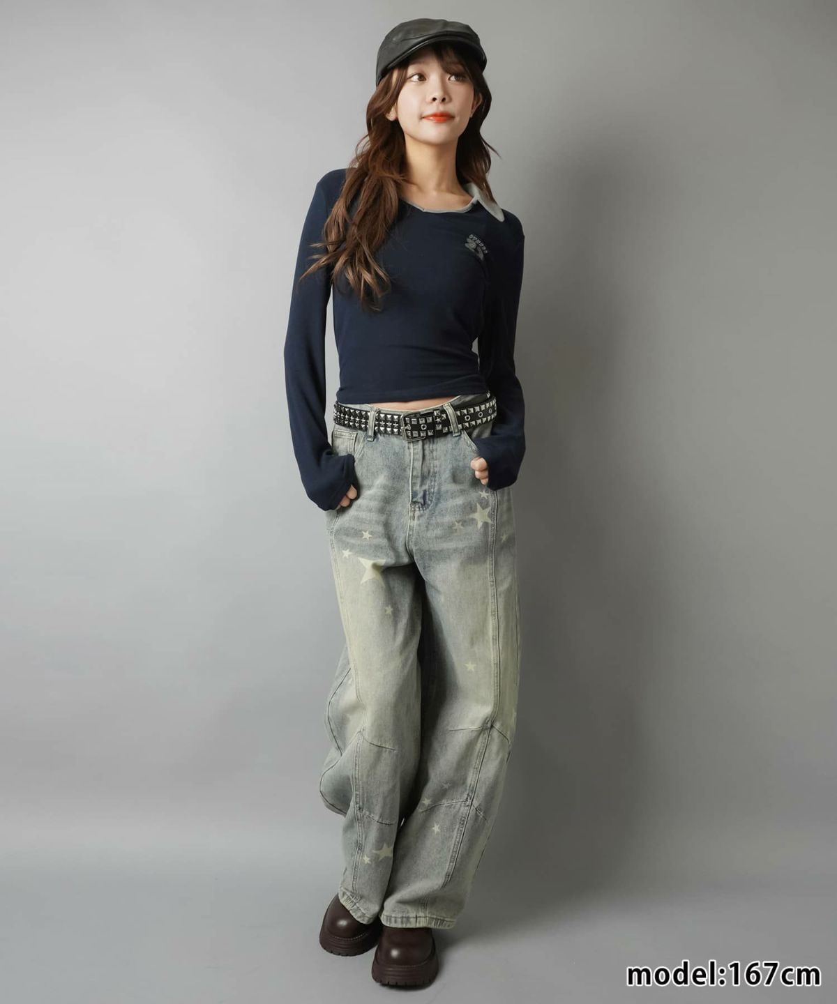 他の画像を見る 【34%OFF】デニムカーブパンツ/バレルレッグパンツ/スター/星柄 ¥ 6,589 → ¥ 4,389 税込 SALE 2点以上10%OFFクーポン対象 カートに入れる お気に入りに追加
