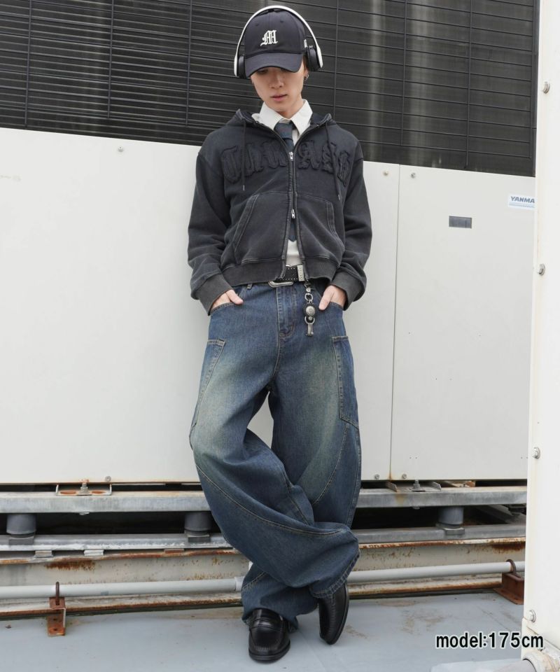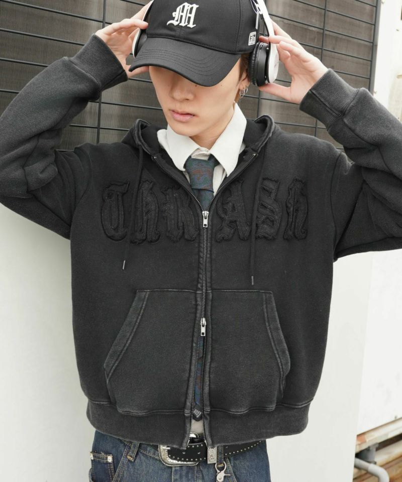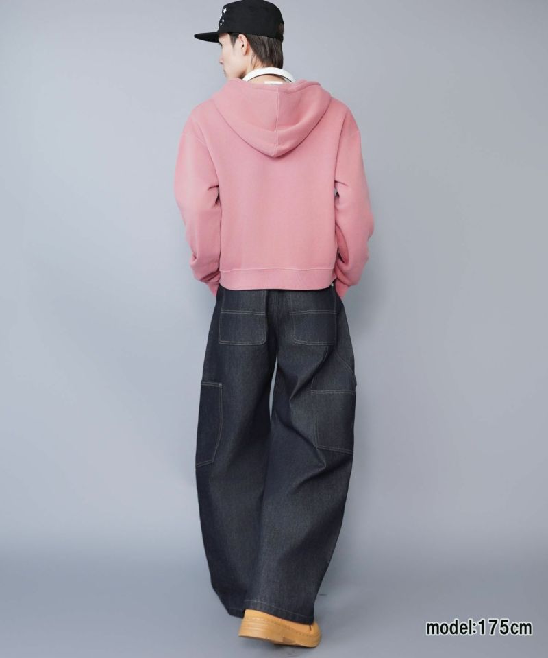 ワークテイストを感じさせる 短丈ダブルジップパーカー。
