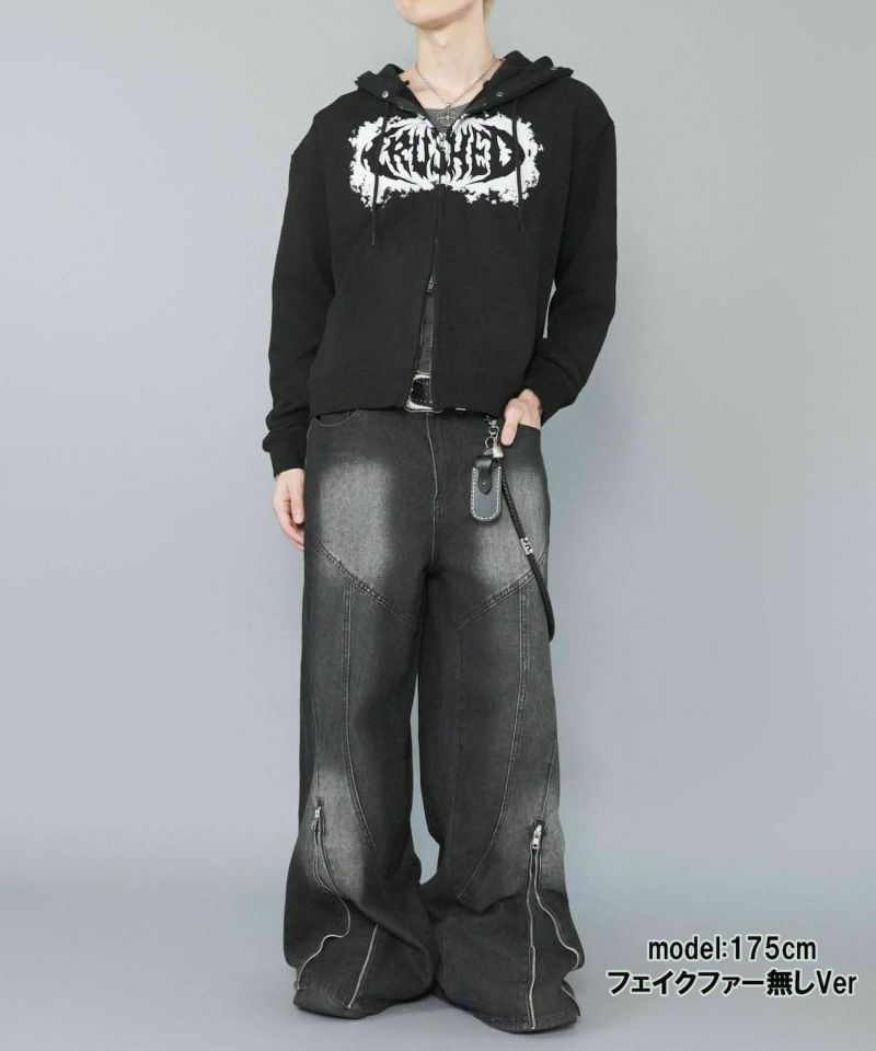 フードには存在感のあるフェイクファーをあしらい、