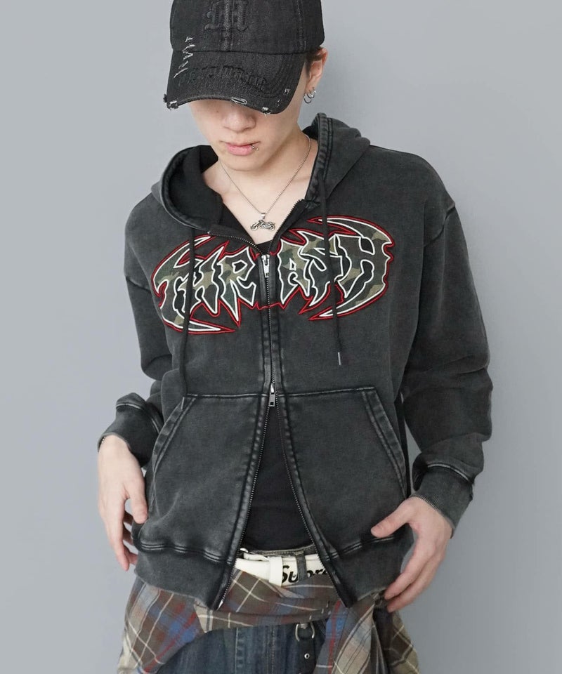 存在感抜群のカモフラージュ柄パッチワークロゴを