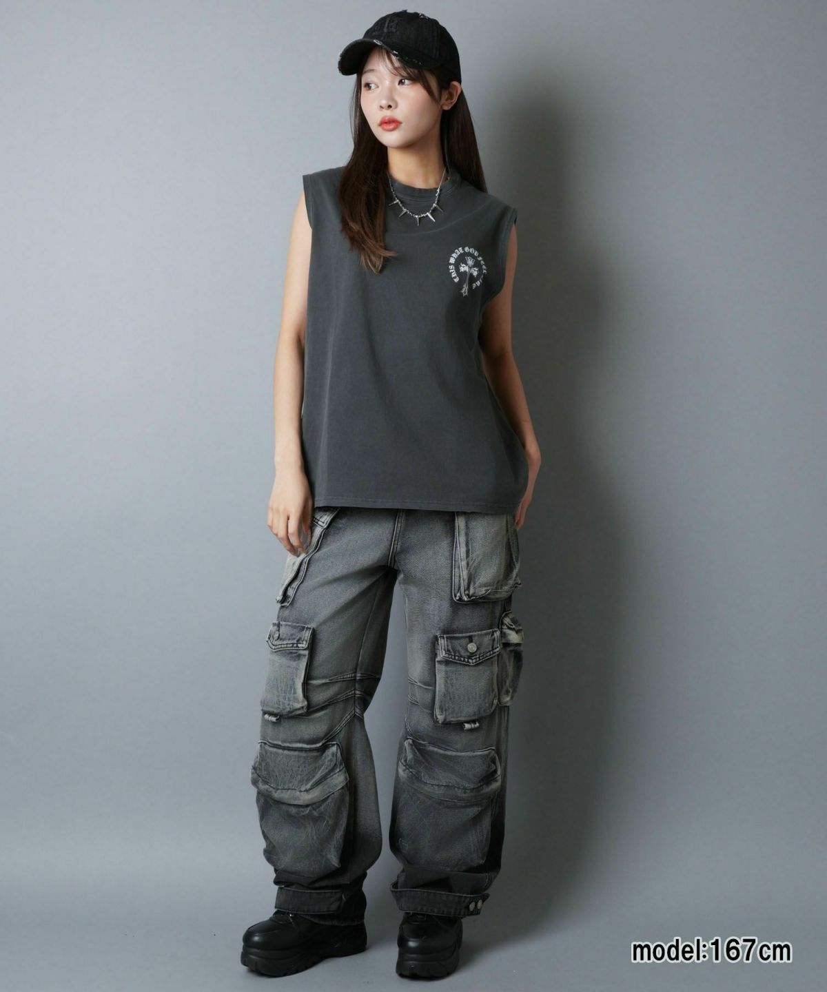 SOLD OUT 他の画像を見る 54%オフ🔥 【80%OFF】ピグメント加工バックプリントノースリーブTシャツ/バンT風/古着風/短丈 ¥ 2,189 → ¥ 550 税込 SALE UNISEX カートに入れる お気に入りに追加