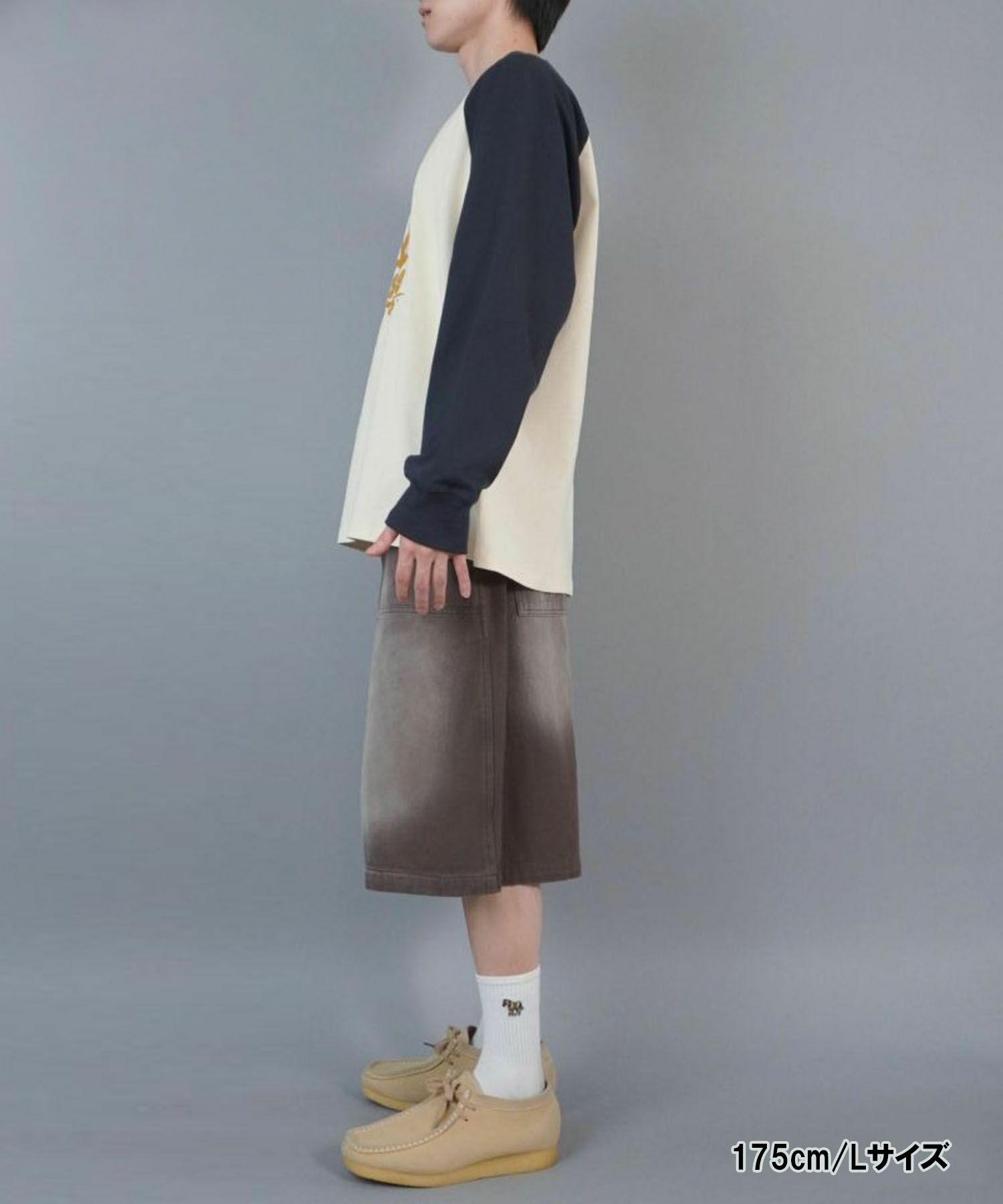 【21%OFF】ヴィンテージライクダブルニーハーフパンツ/バックロゴ