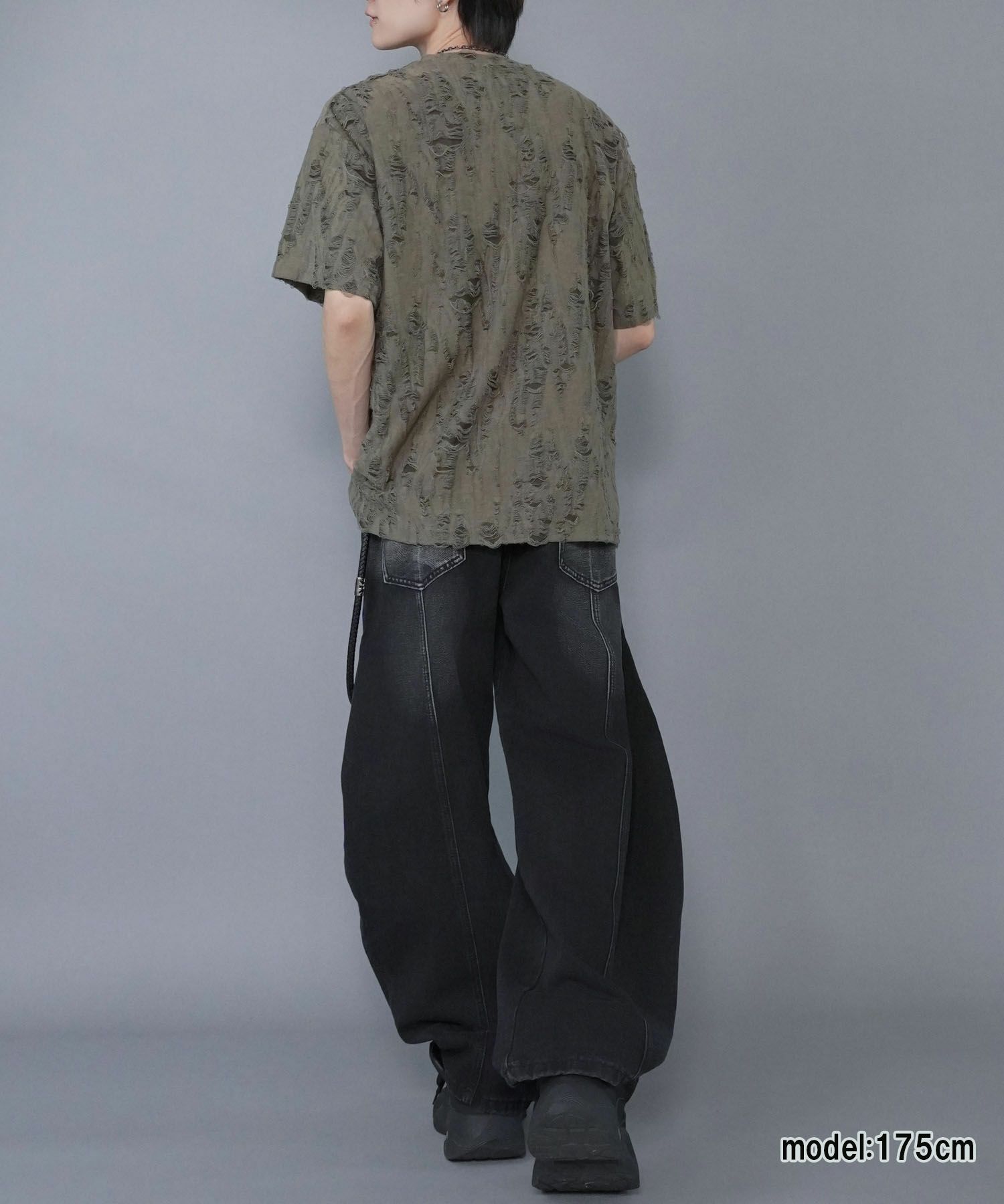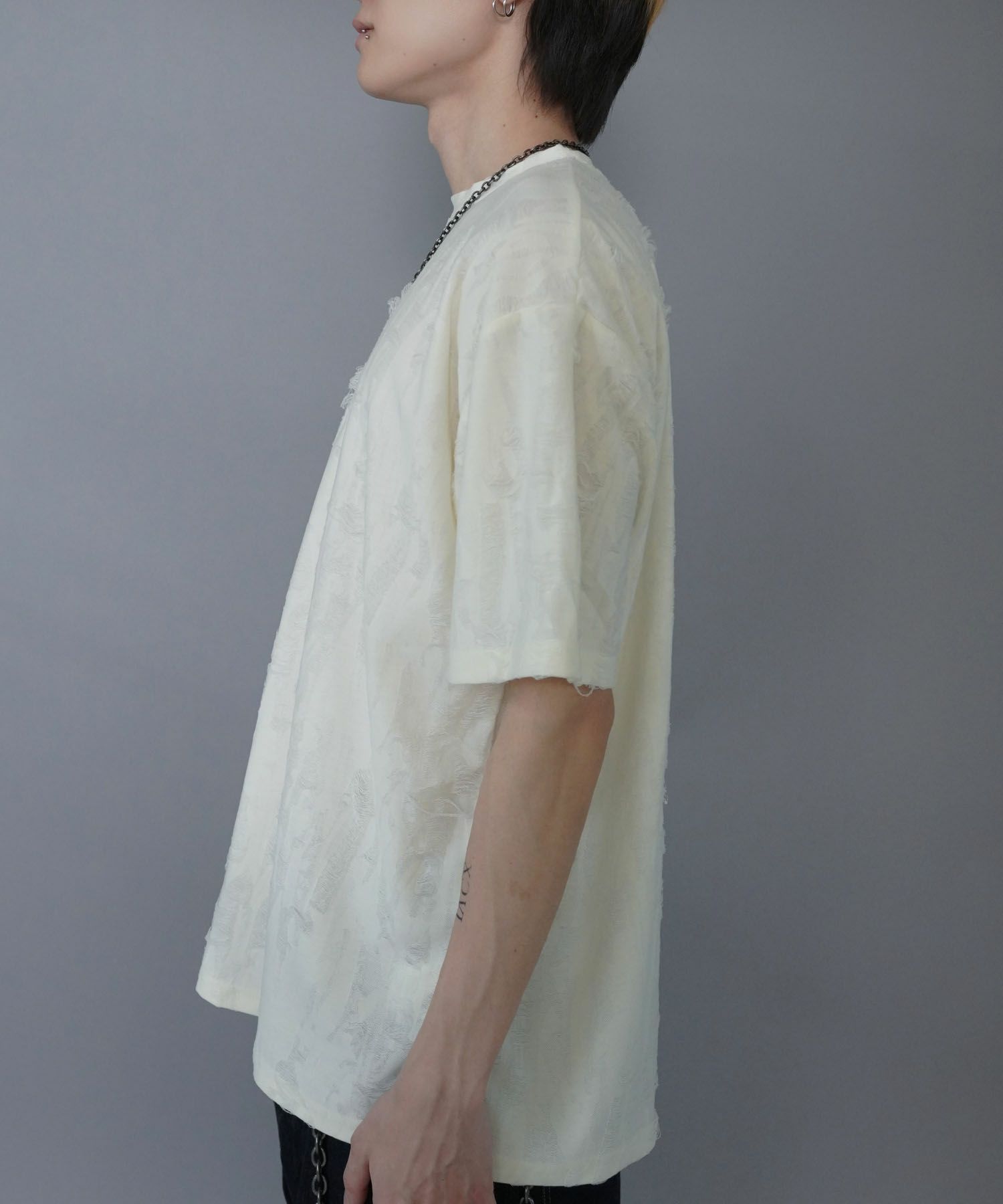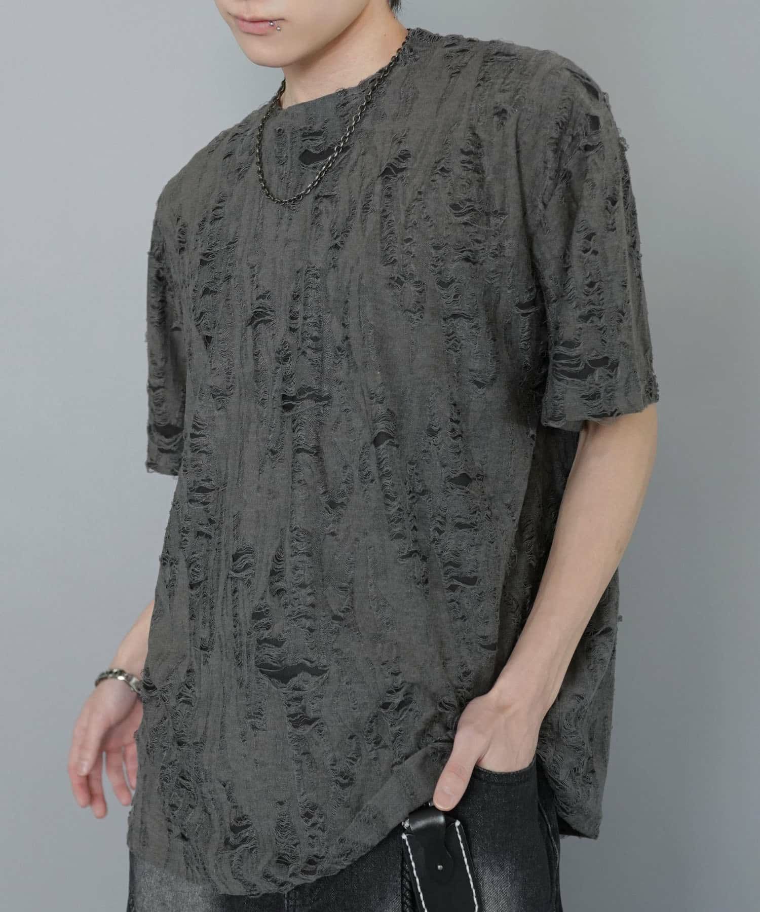 【84%OFF】ダメージ加工ジャガードTシャツ