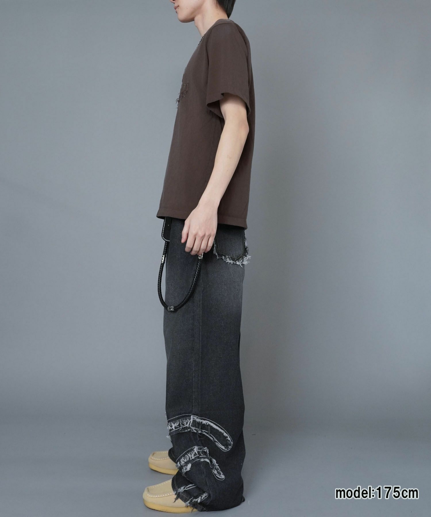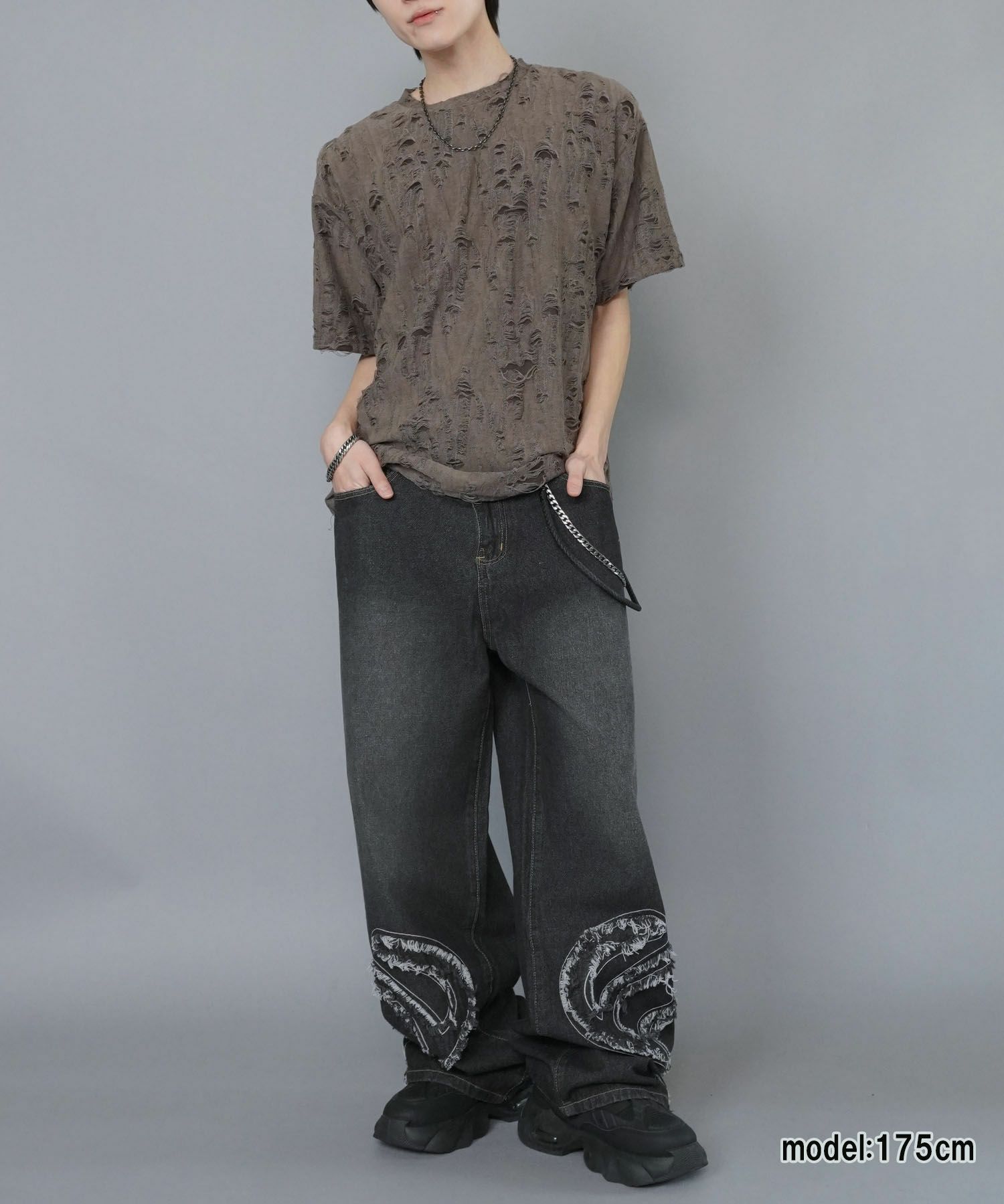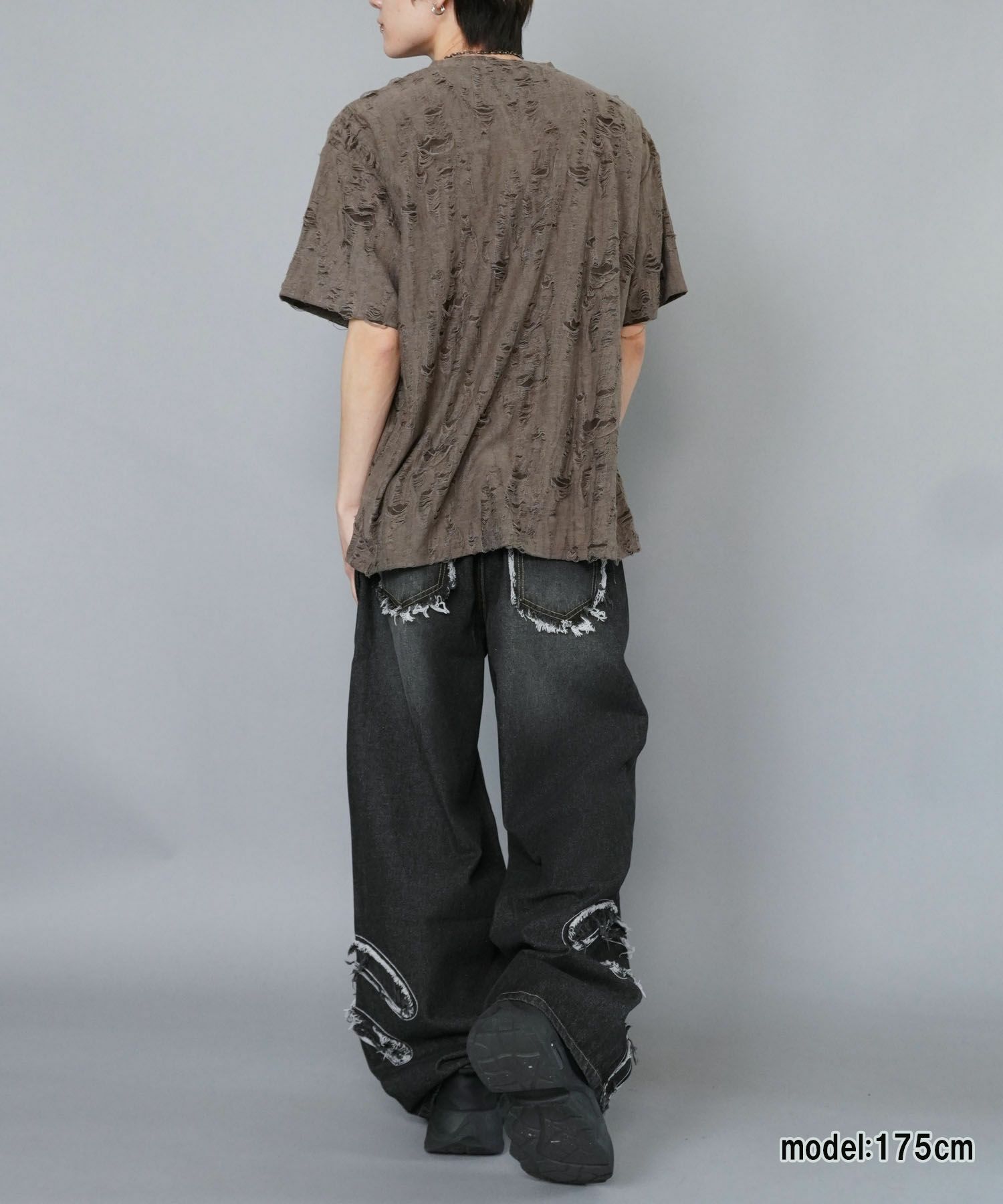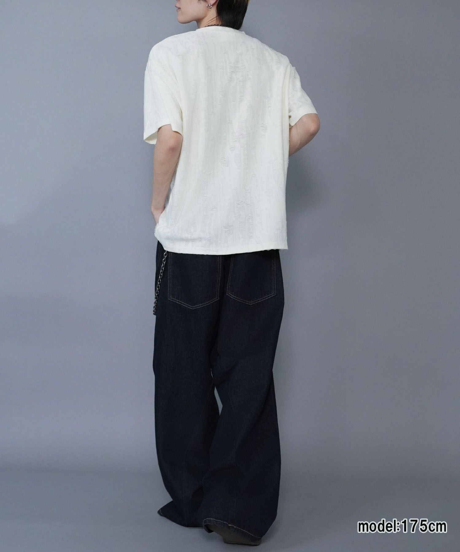 【84%OFF】ダメージ加工ジャガードTシャツ