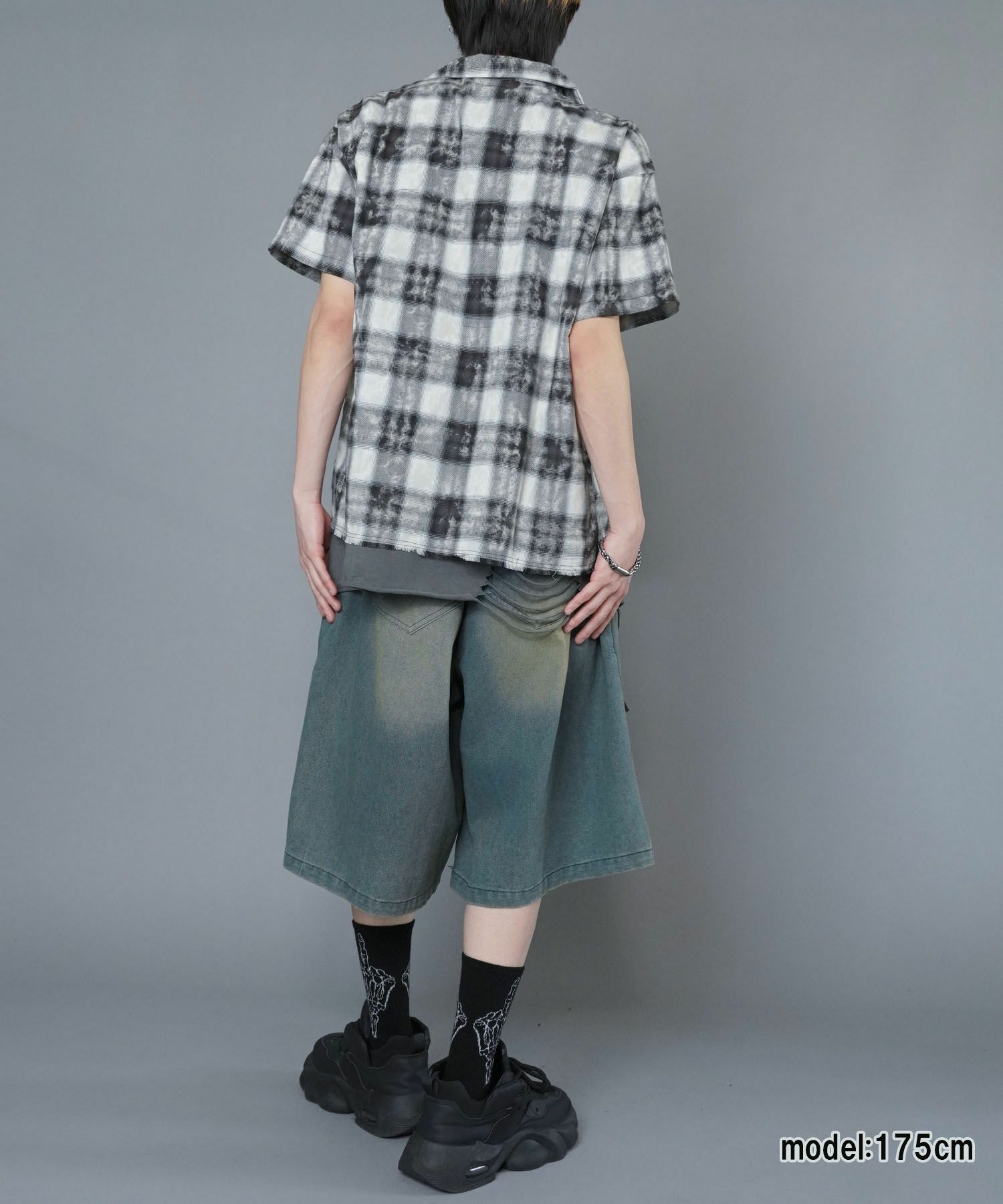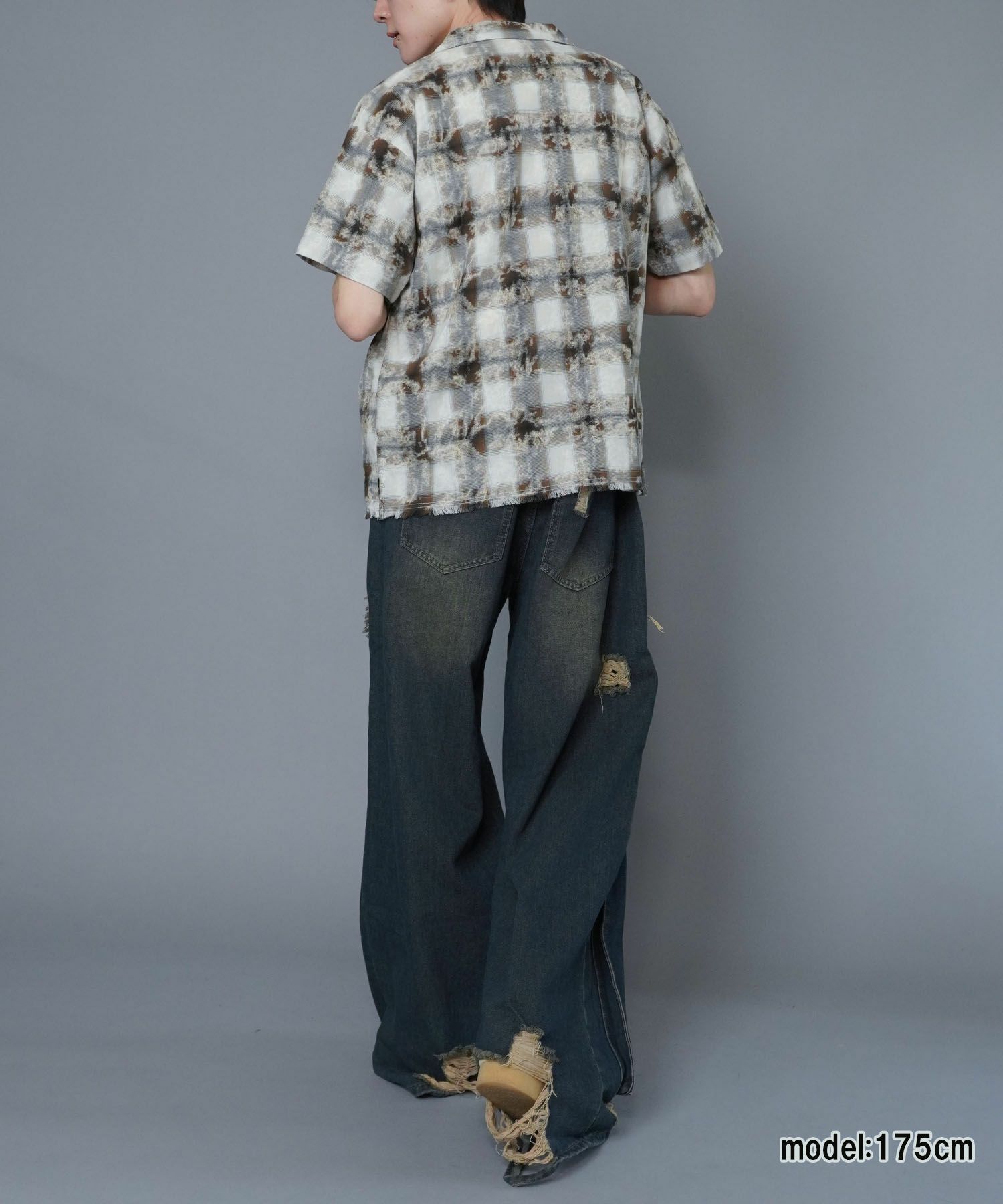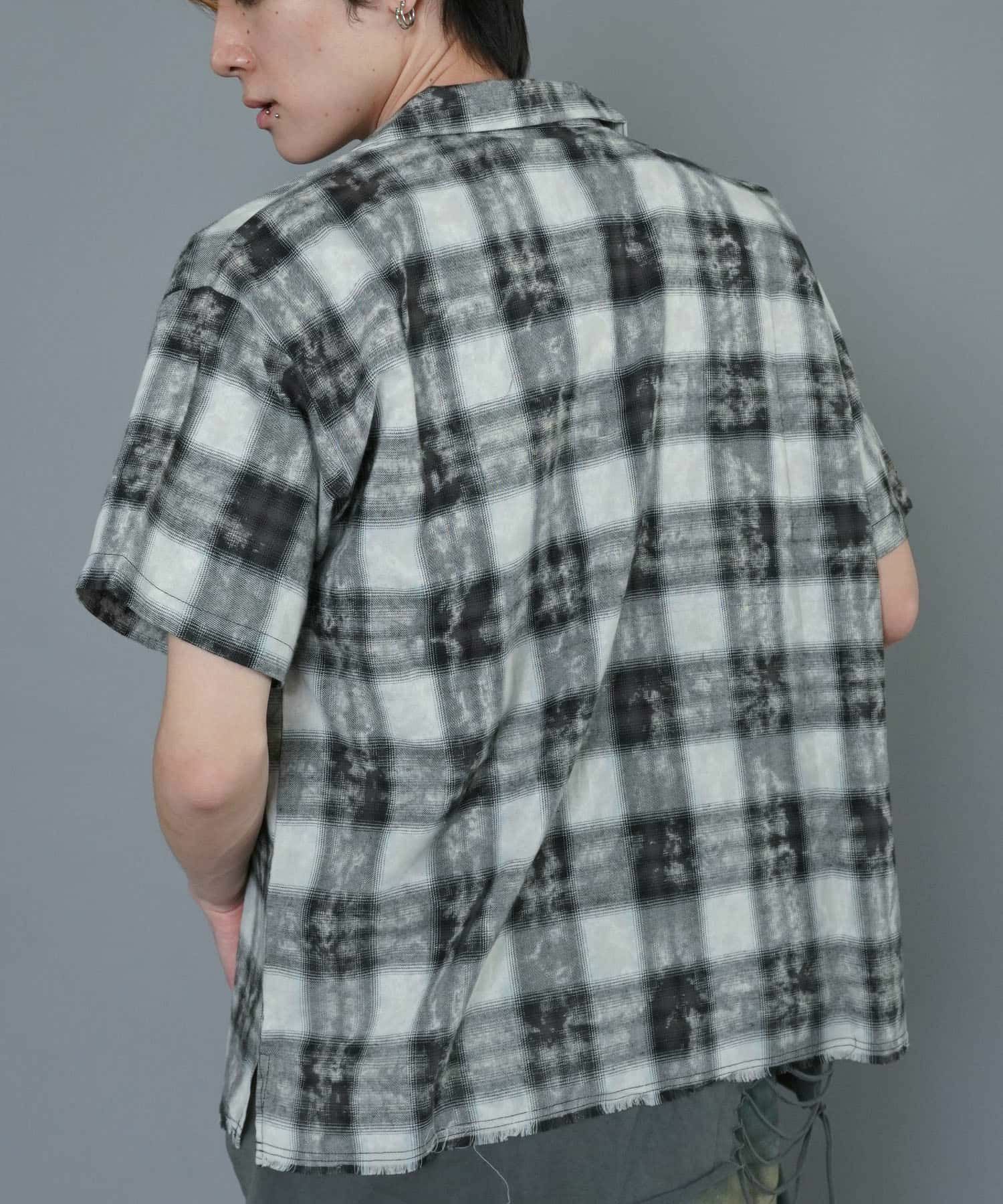 【89%OFF】オンブレオープンカラーチェックシャツ/ペイント