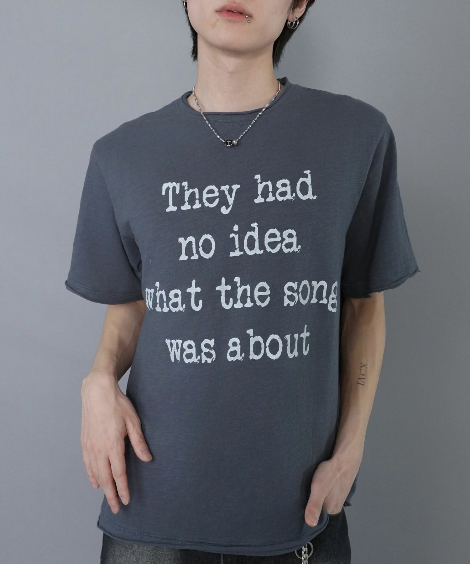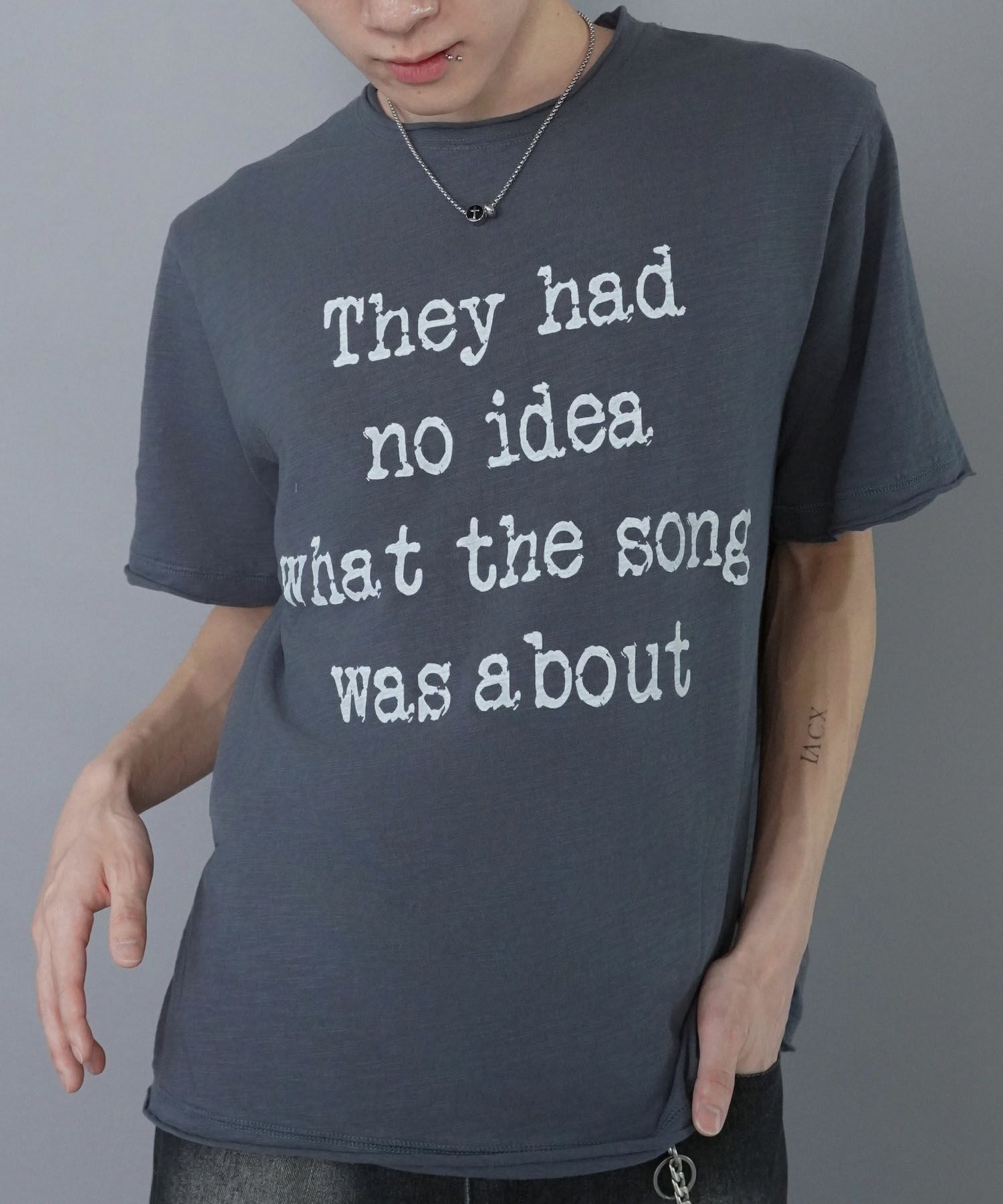 【86%OFF】グランジダメージTシャツカットソー/メッセージロゴ