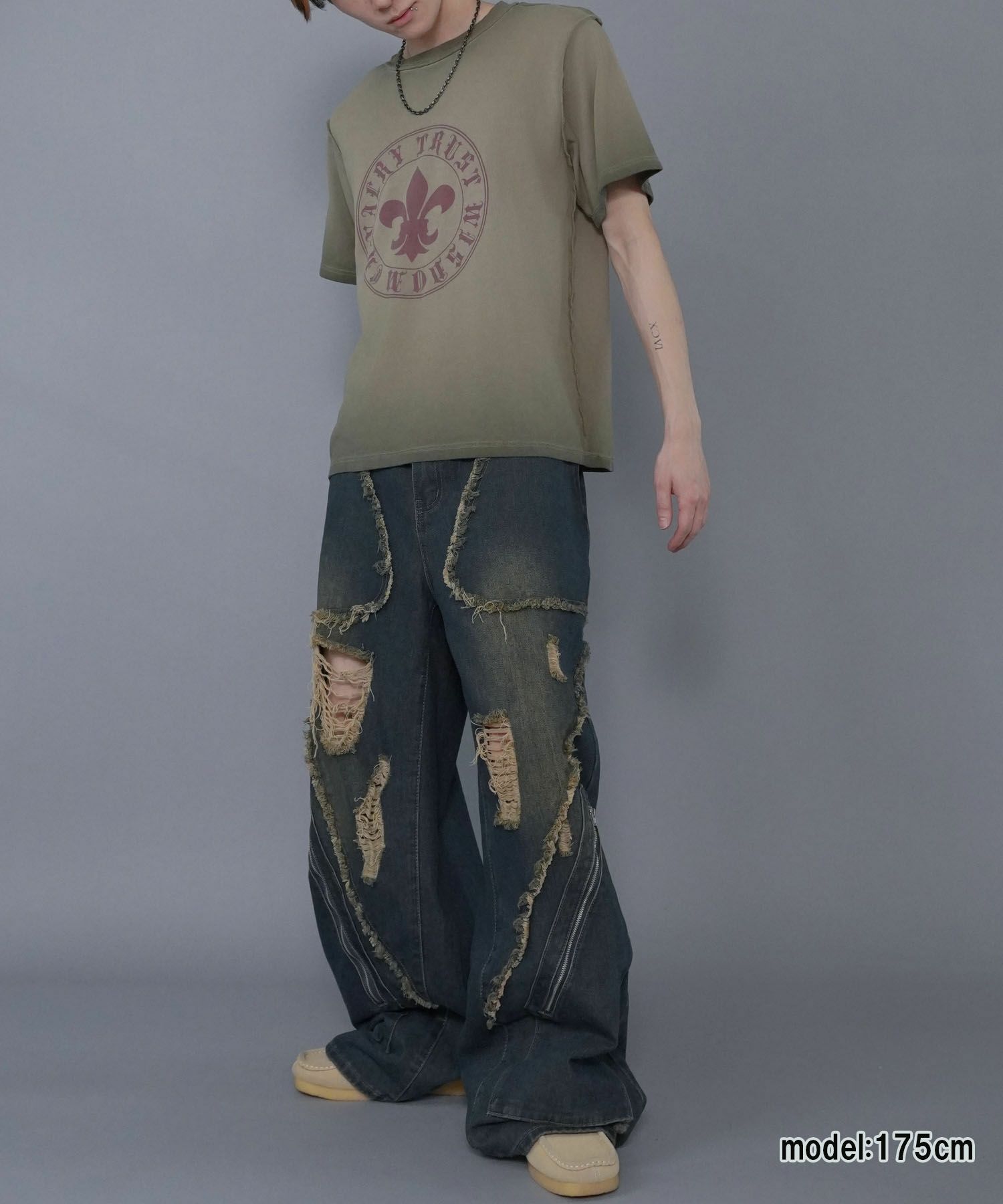【92%OFF】グランジTシャツカットソー/フルール・ド・リスプリント/ヴィンテージライク