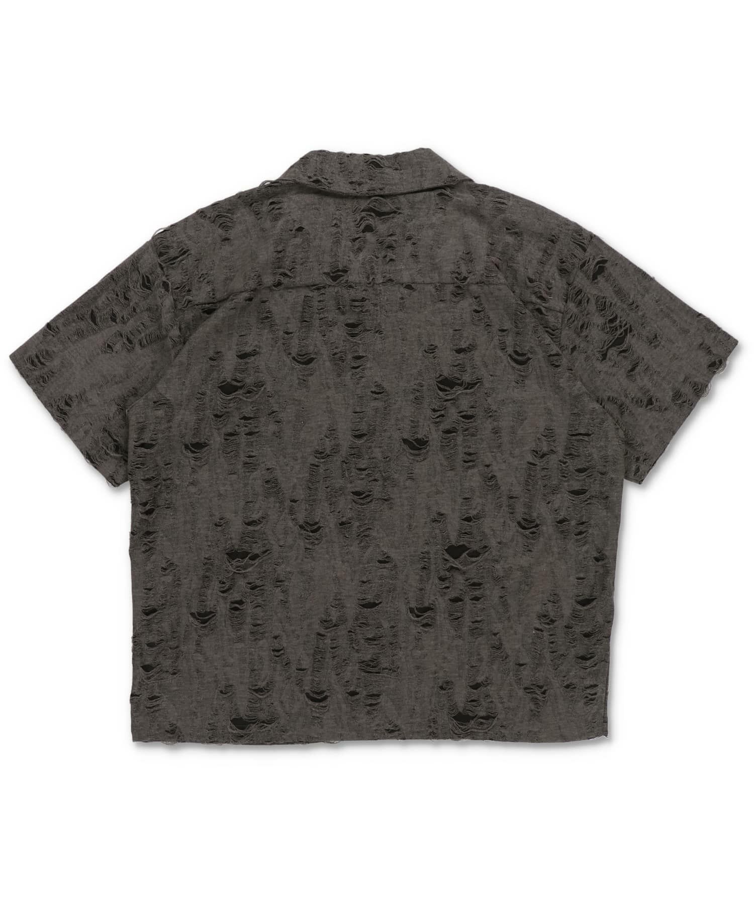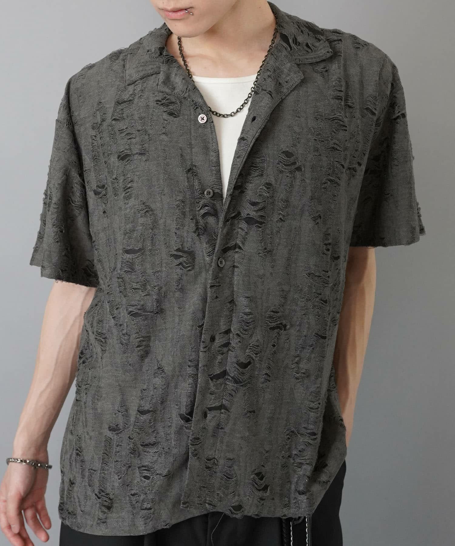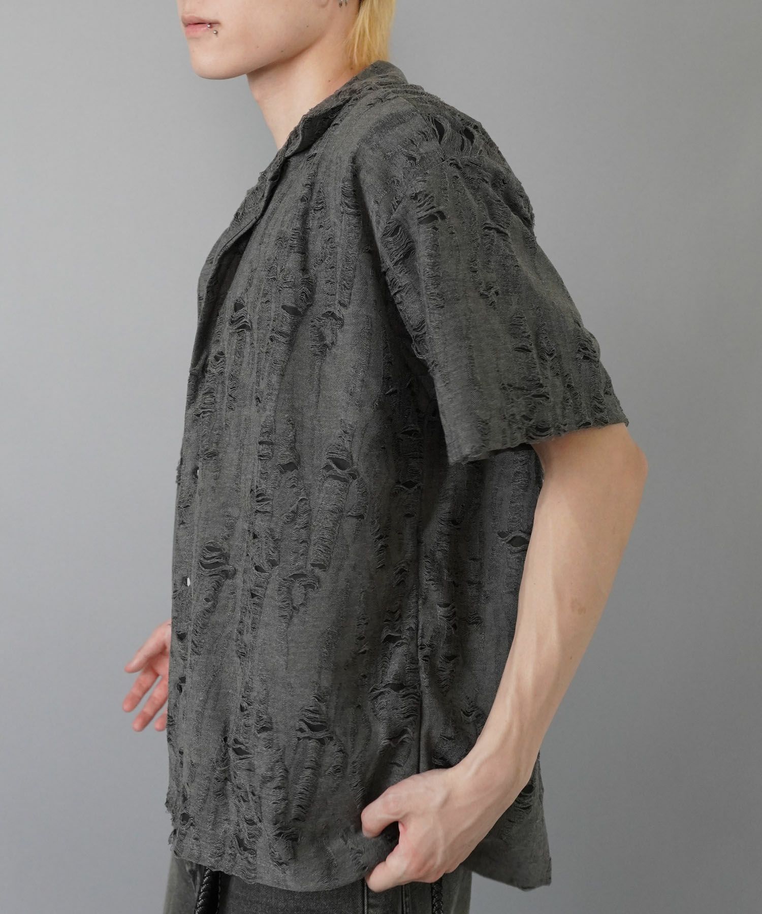 【88%OFF】ダメージ加工ジャガードオープンカラーシャツ