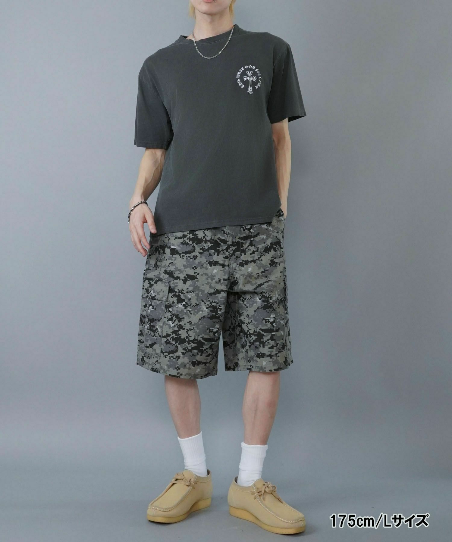 【80%OFF】カモ柄カーゴハーフパンツ/リアルツリー柄/デジタルカモ