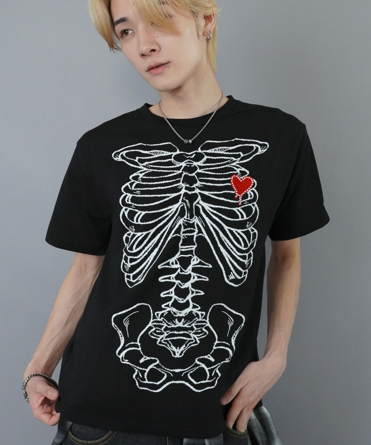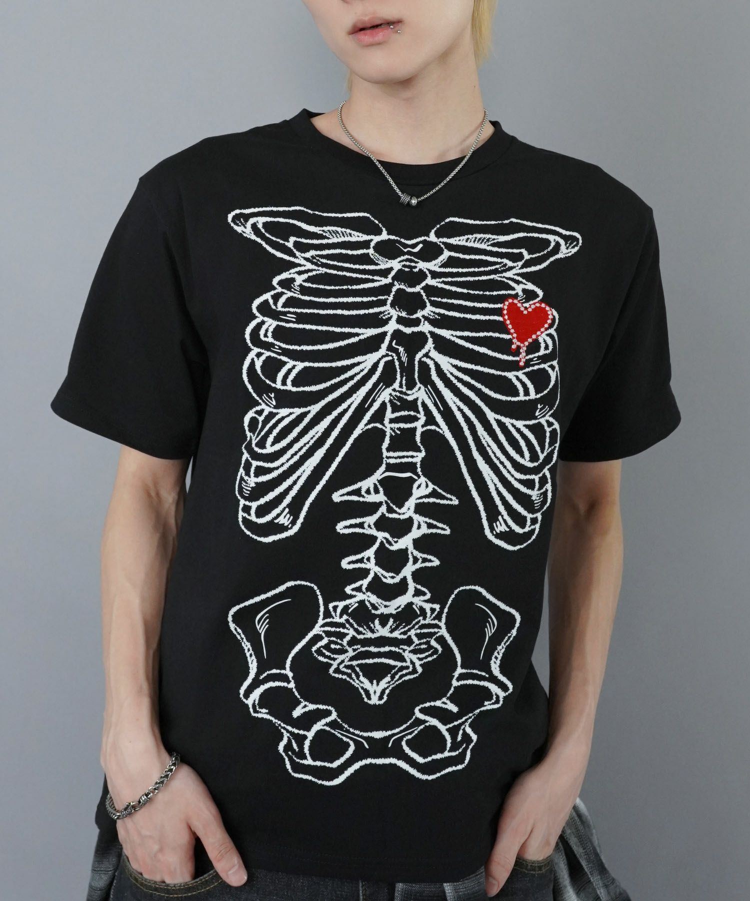 話題の骨T🦴♥この毒っぽさが今っぽい 【90%OFF】グランジプリント短丈Tシャツ/骨T/ケミカル加工