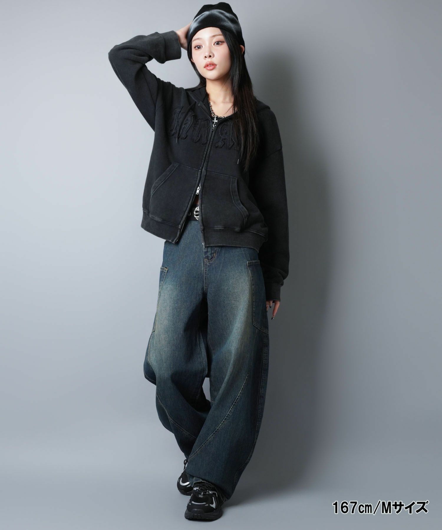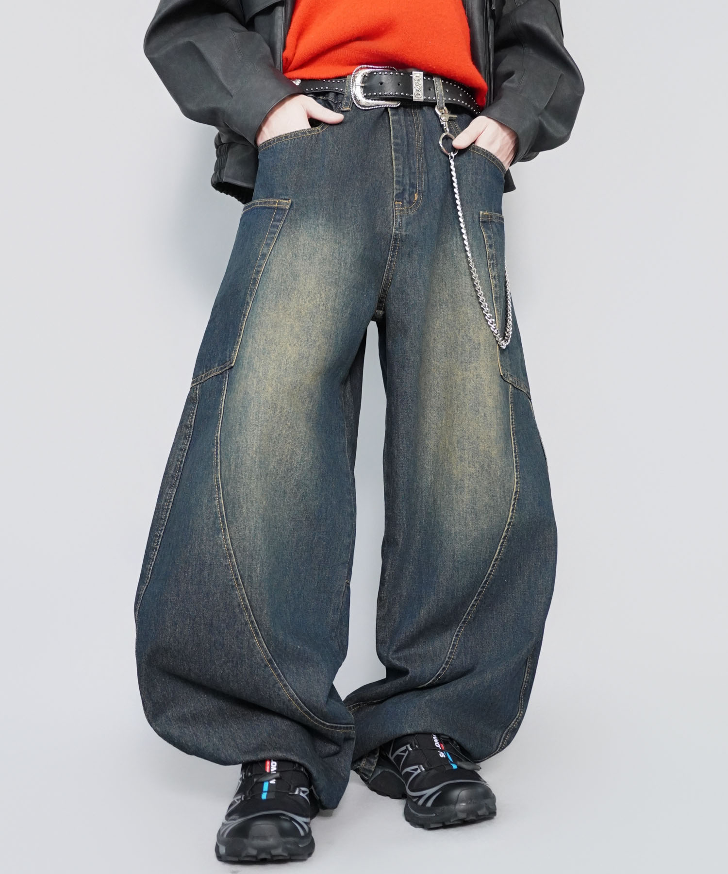 ゆったりルーズな履き心地🌟 【21%OFF】ブラスト加工ワイドバギーデニム/バレル・カーブシルエット