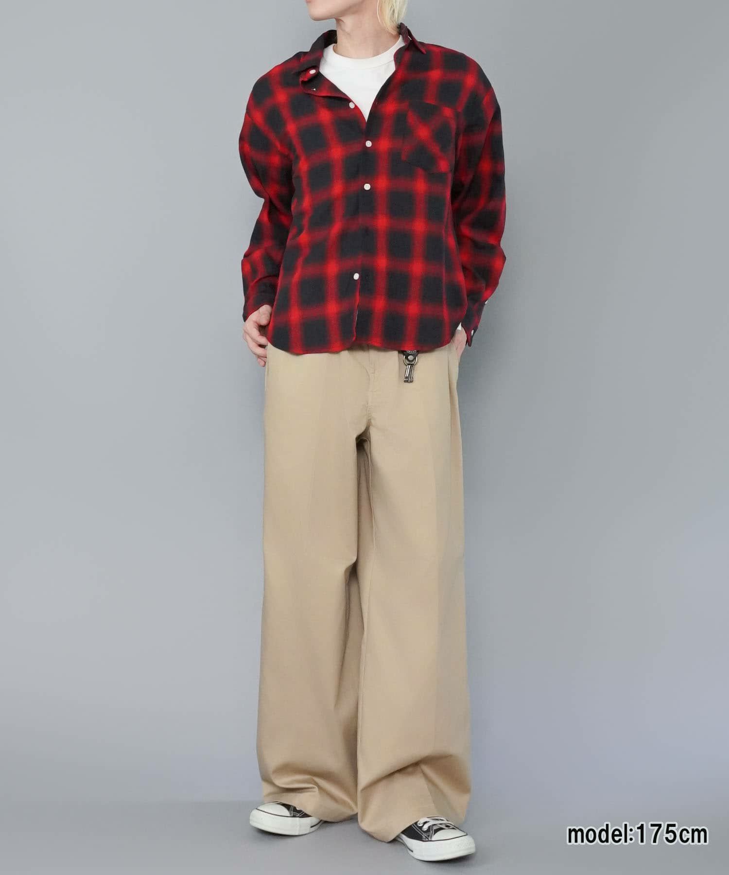 【90%OFF】オンブレオープンカラーチェックシャツ/バックロゴ