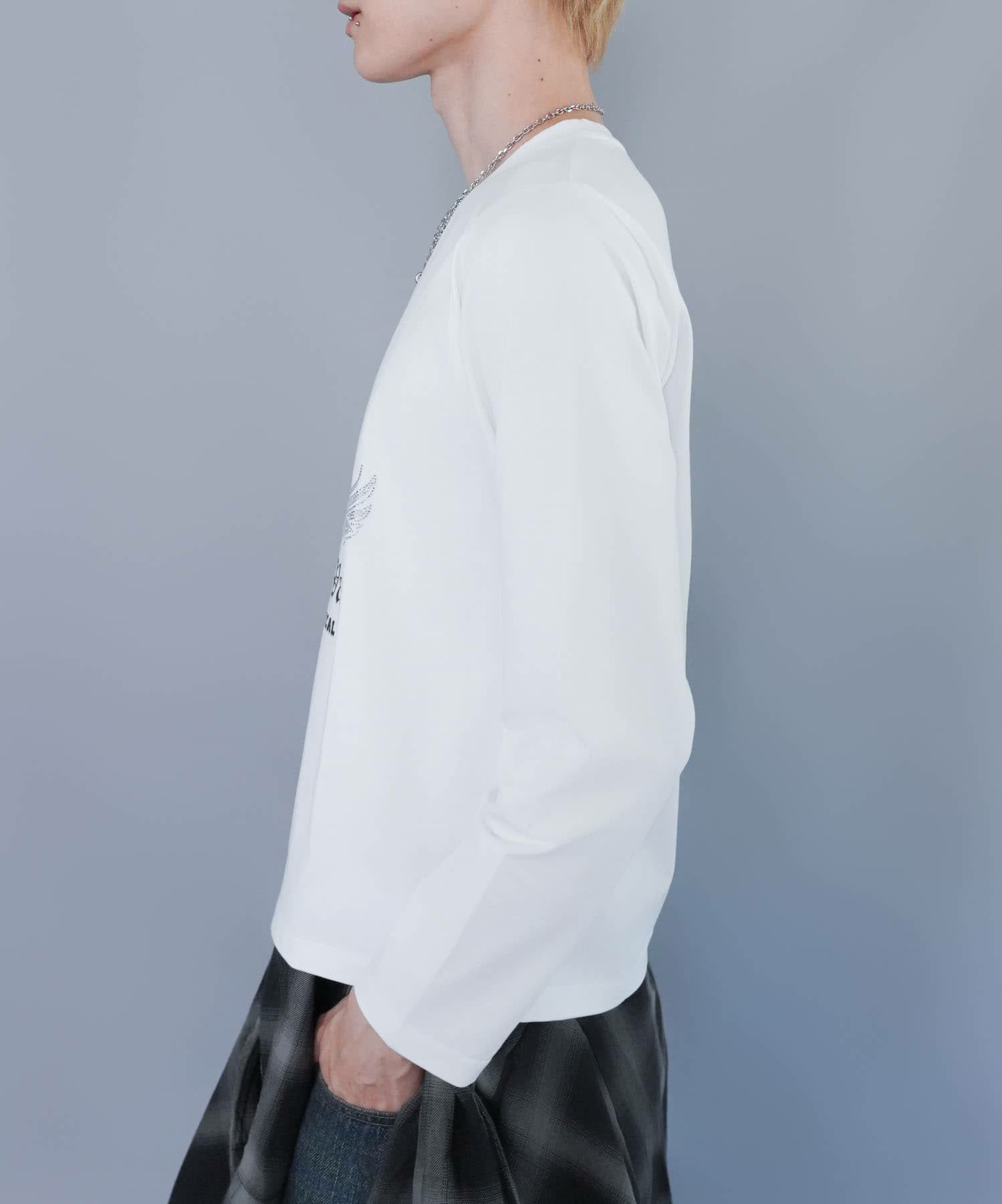 【26%OFF】短丈ロングスリーブTシャツ/スカル/ロンT/ショート丈