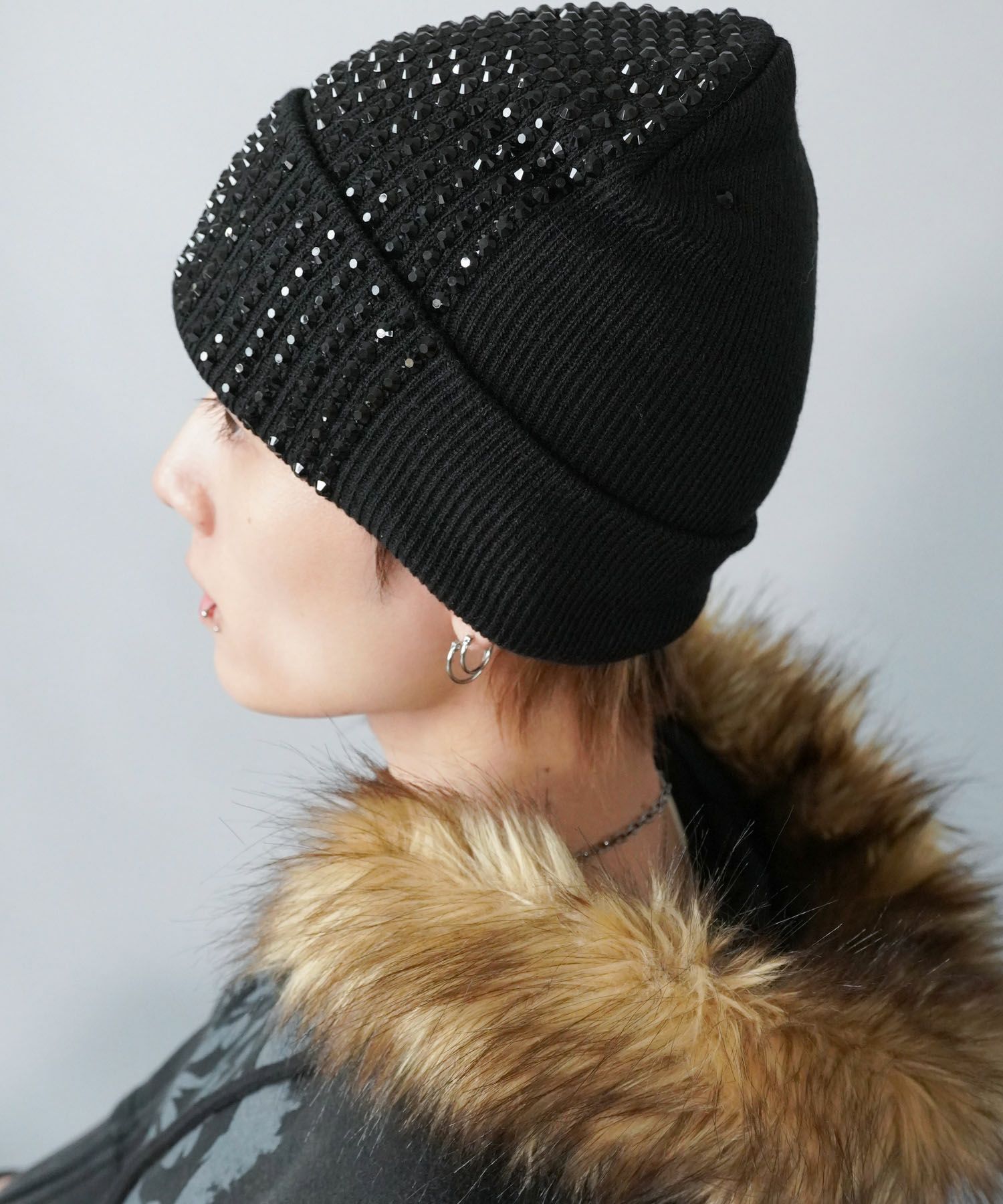 シングルニットビーニー/クロススタッズ/ダメージ加工/ユニセックス
