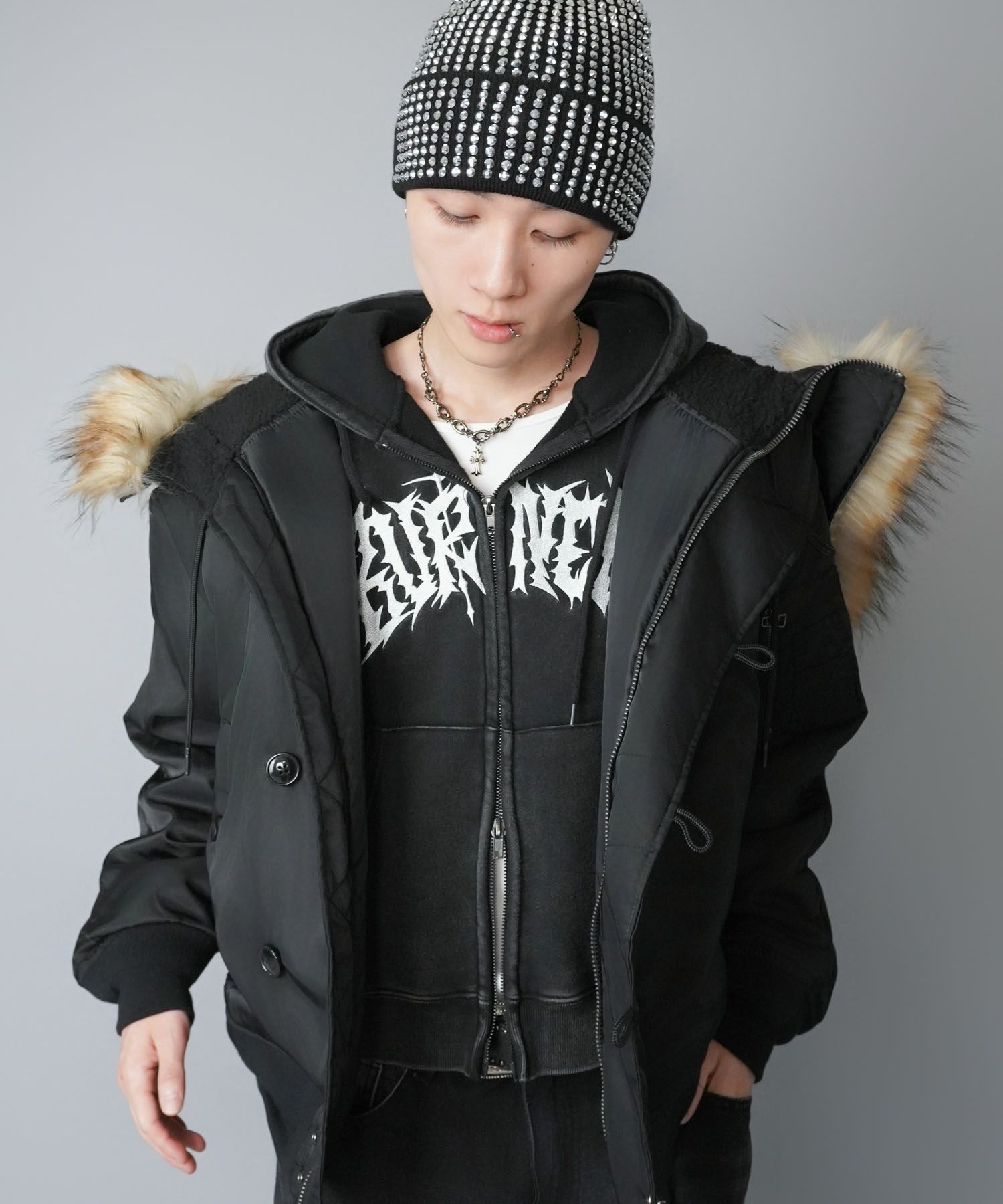 秒でキマる、SETUP対応ITEM💡 2WAY短丈ダブルジップパーカー/ラインストーン/ワンポイント/フェイクファー取り外し可能
