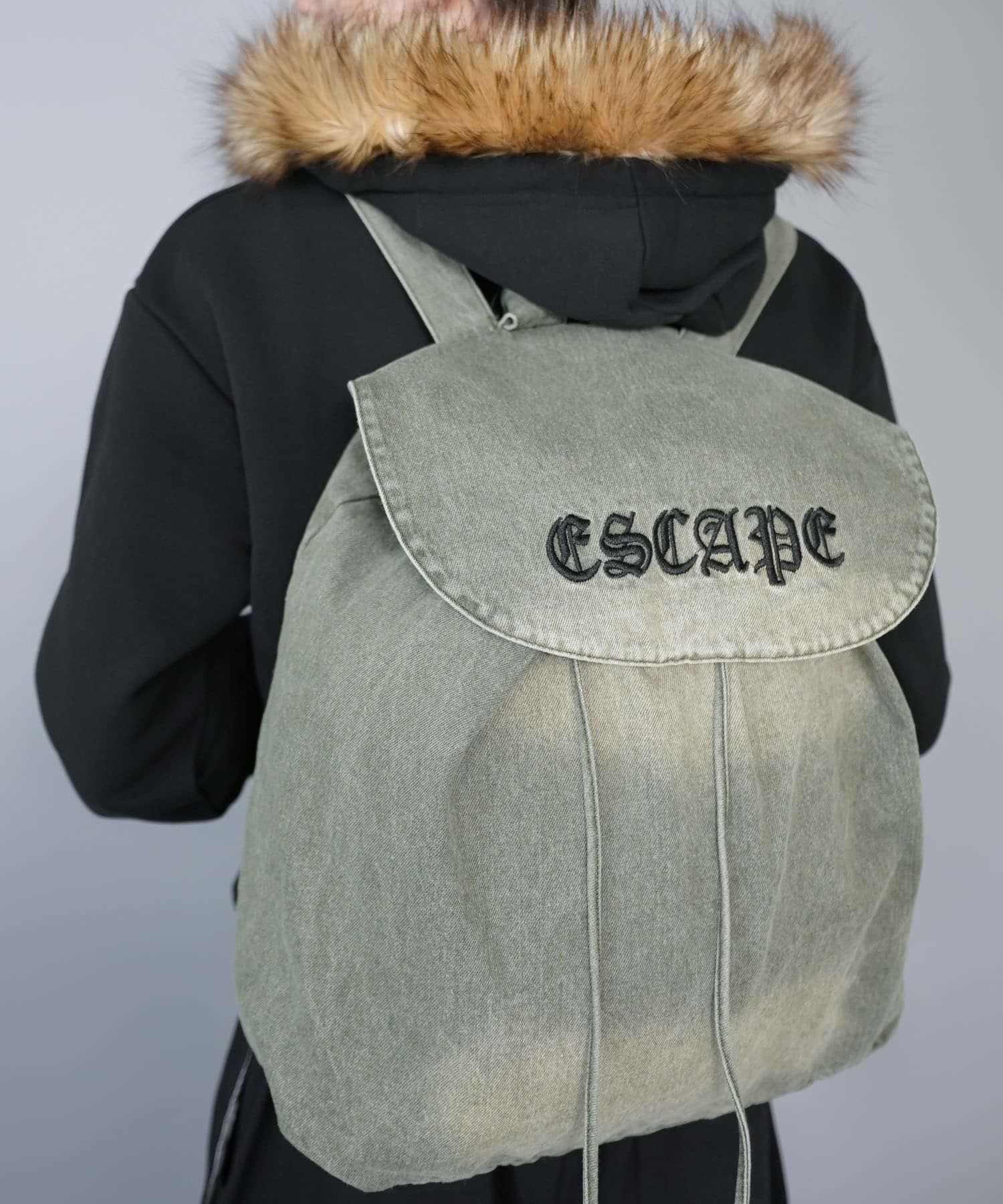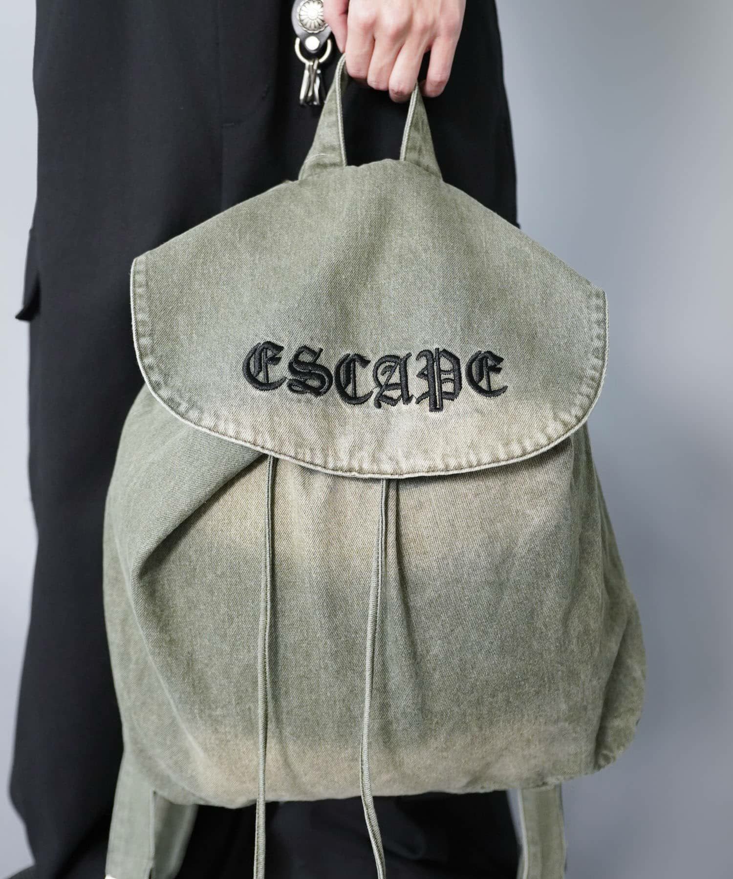 フェード加工デニムバックパック/大容量/Y2K/グランジ/ユニセックス