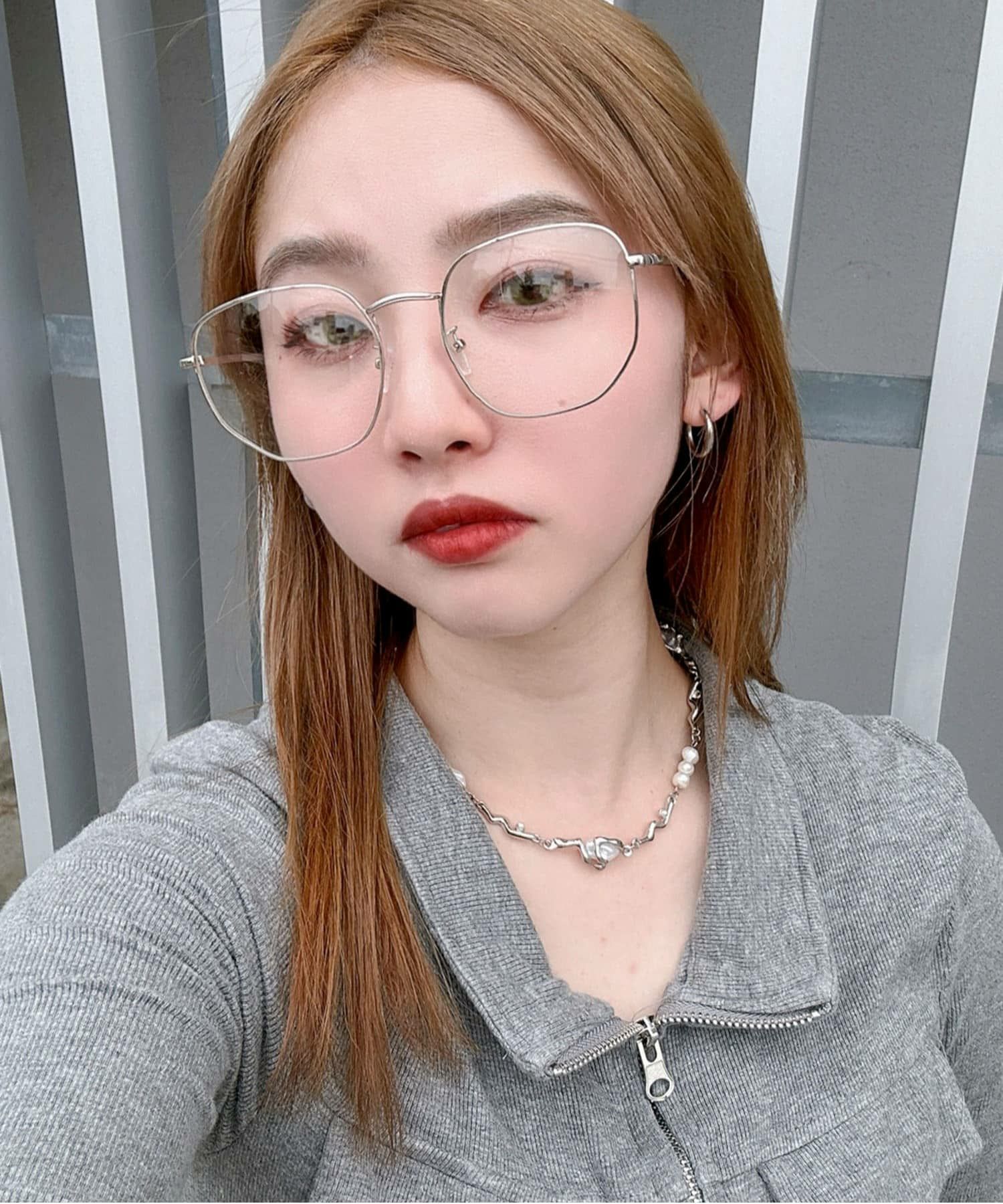 ビッグ細フレーム伊達メガネ