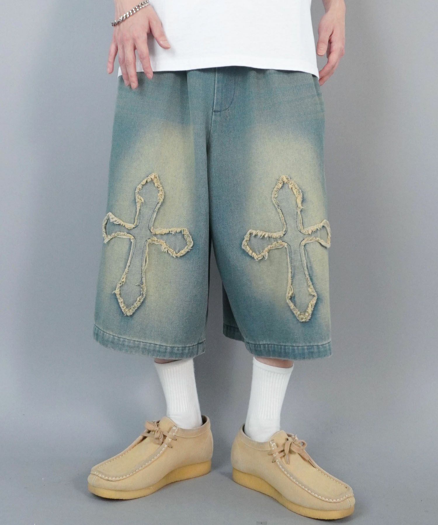 SOLD OUT 他の画像を見る 【12%OFF】ヴィンテージ加工バギーデニムハーフパンツ/クロス/膝下ロング丈/ジョーツパンツ ¥ 4,950 → ¥ 4,389 税込 SALE UNISEX カートに入れる お気に入りに追加