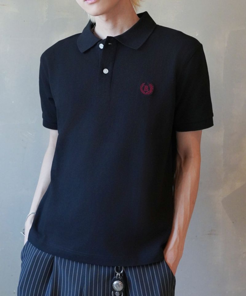 胸元のエンブレム風ワンポイント刺繍が映える、