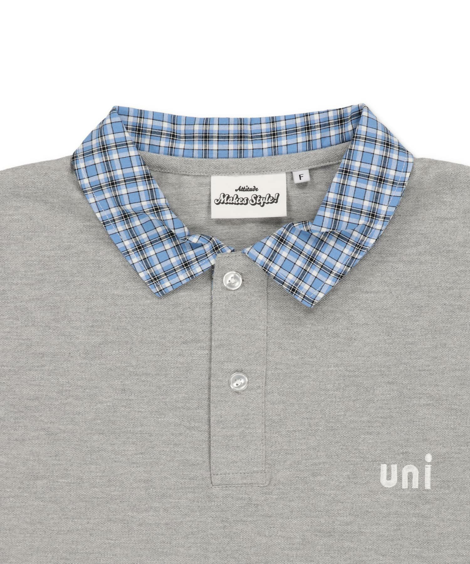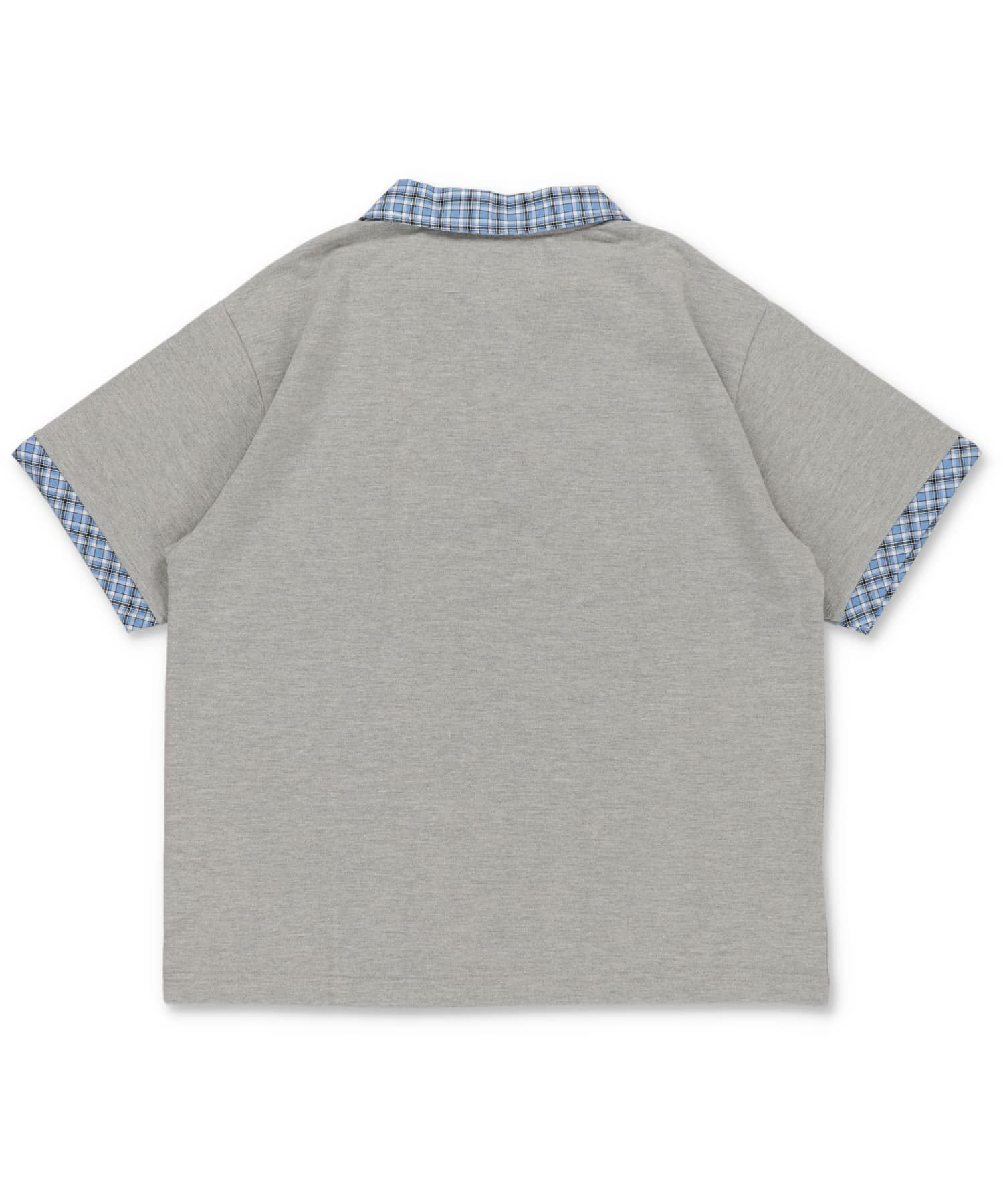 襟と袖口にチェック柄の切り替えを施した、