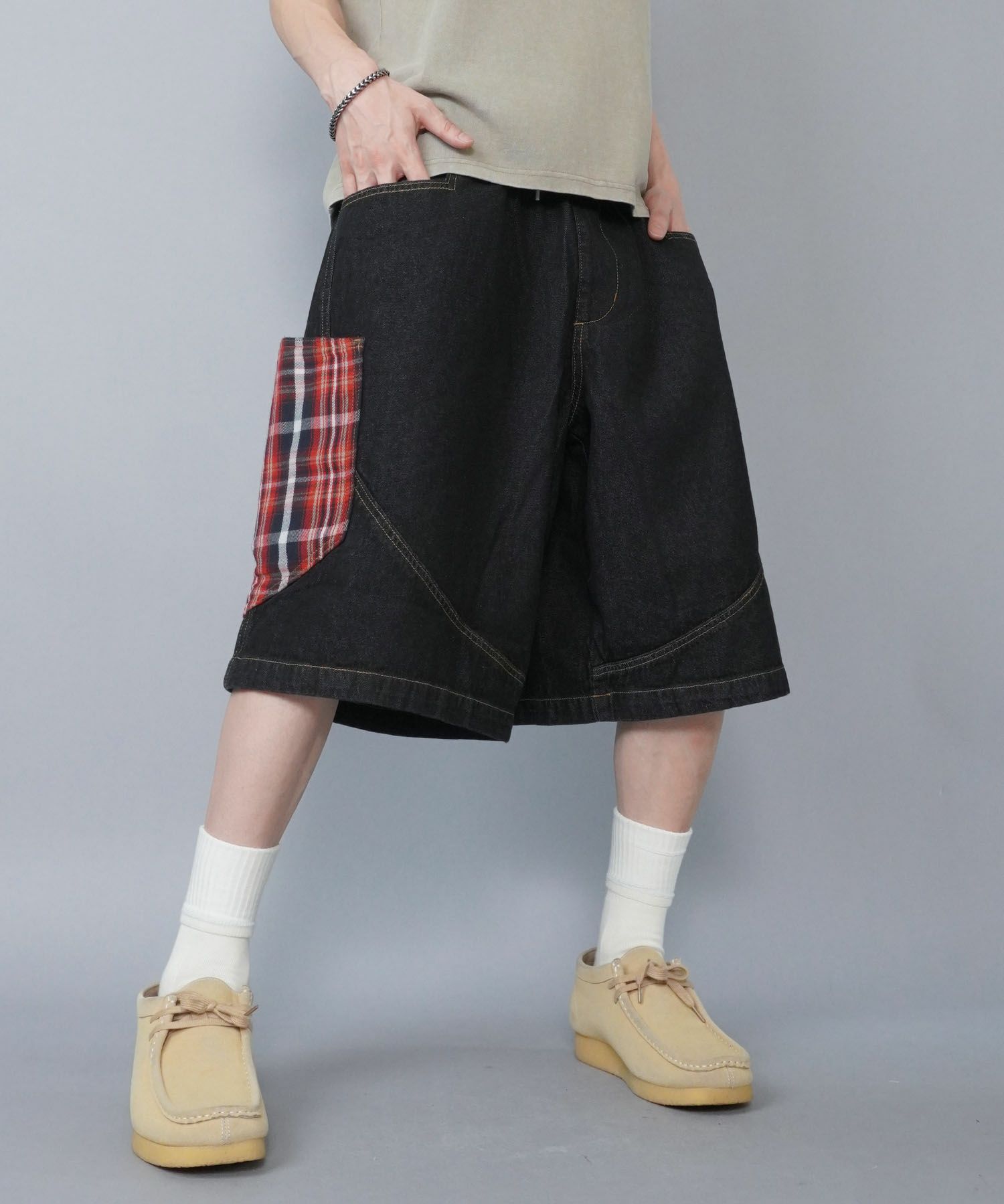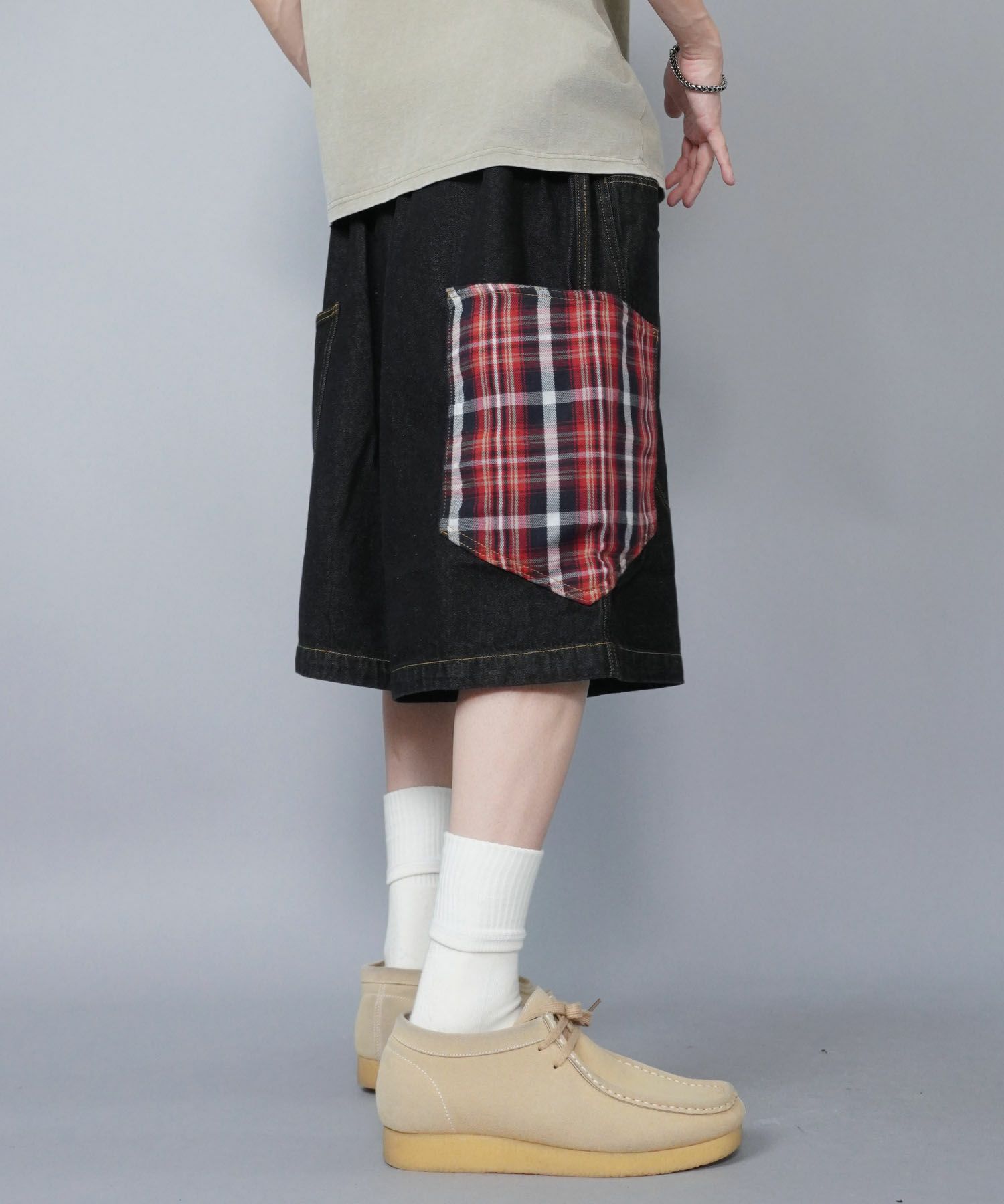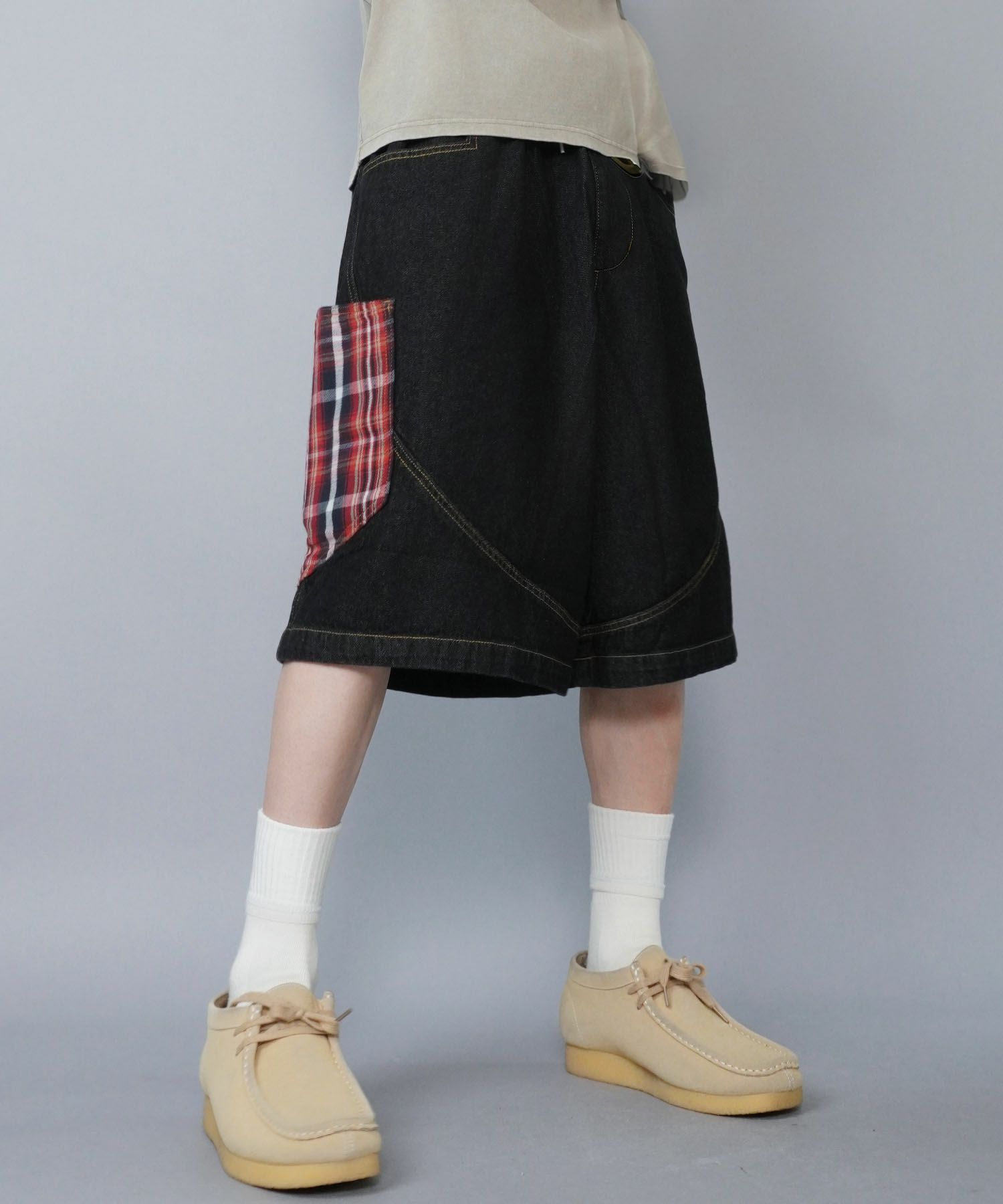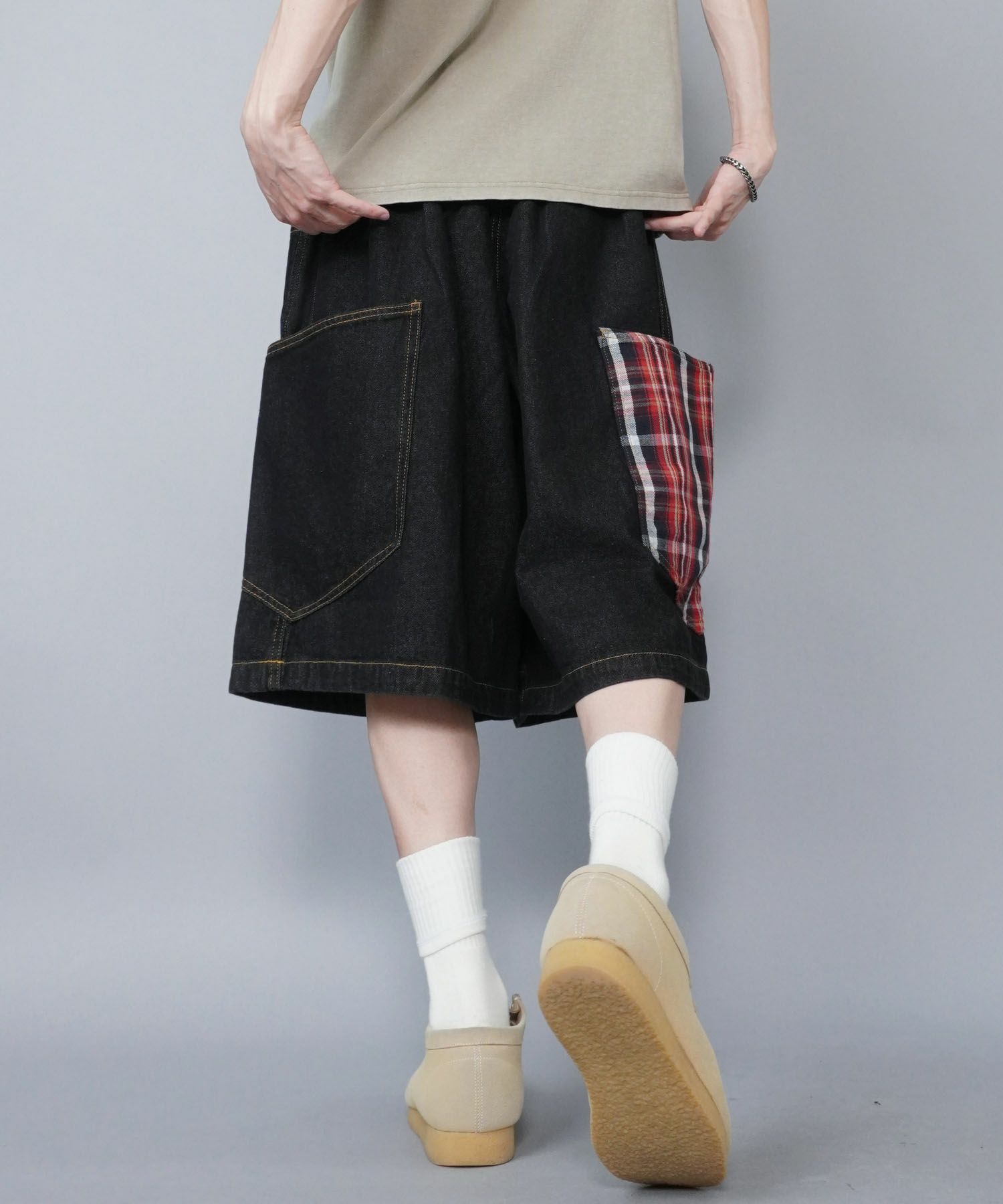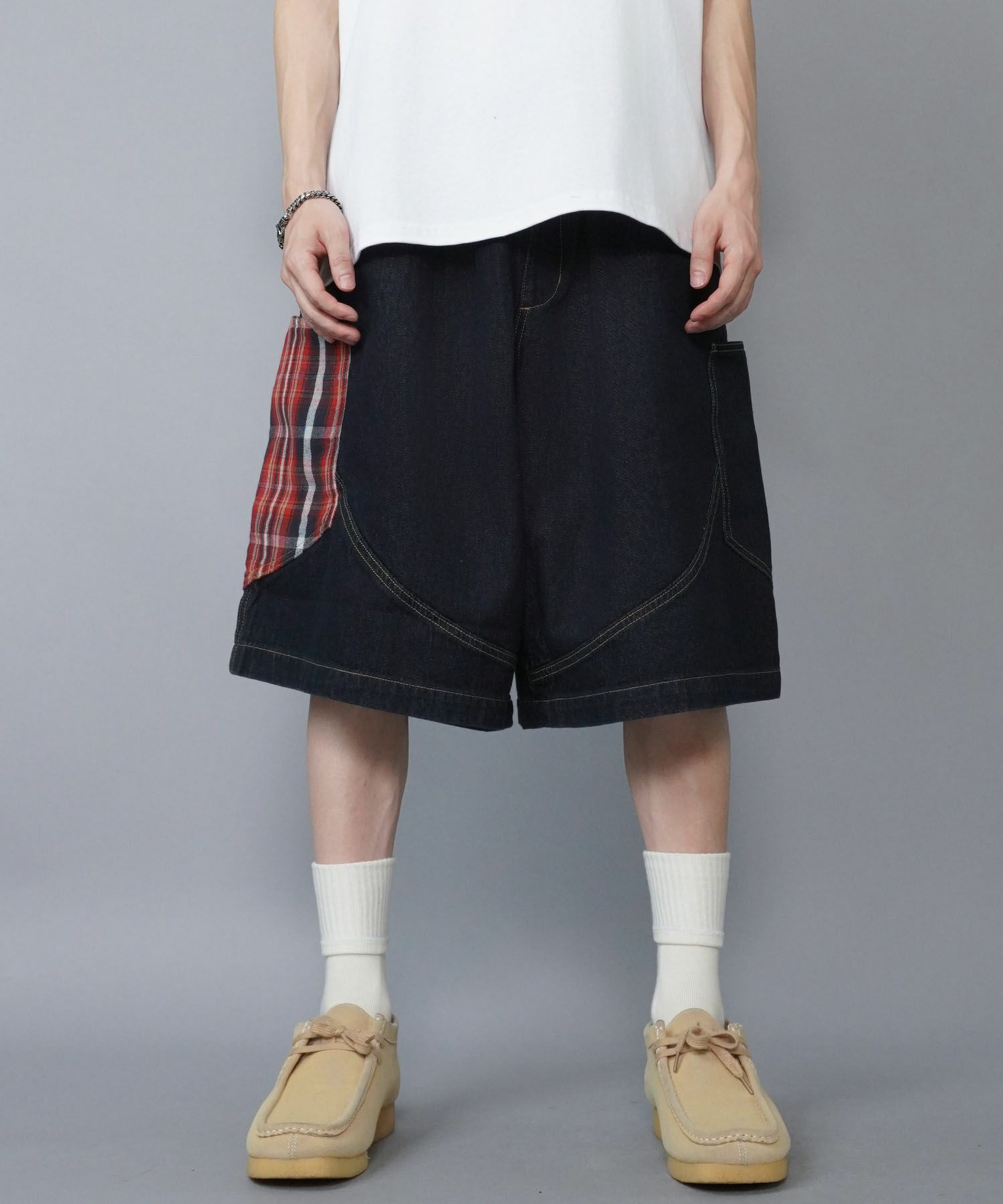 チェック切り替えが目を引くデニムハーフパンツが新登場。