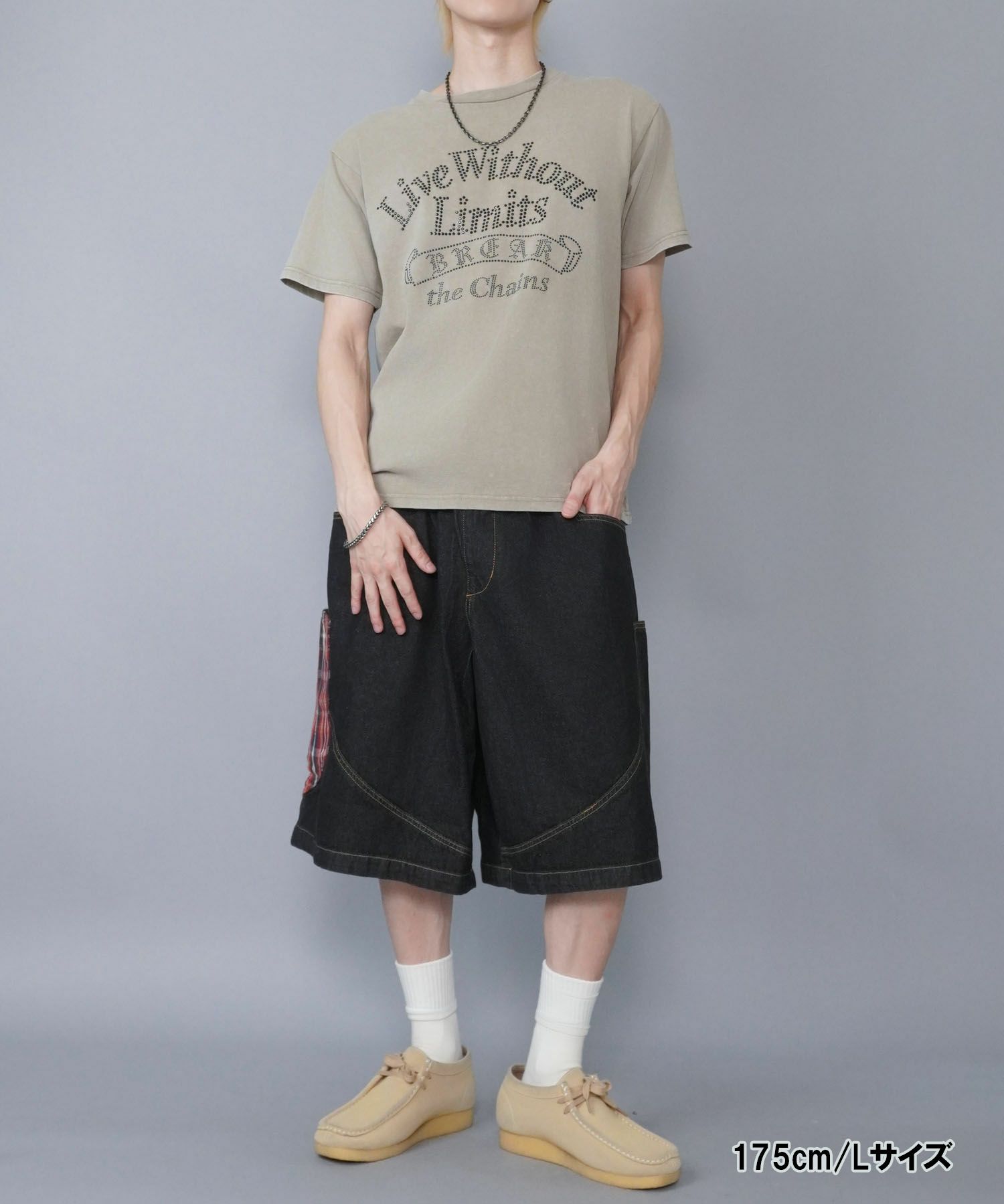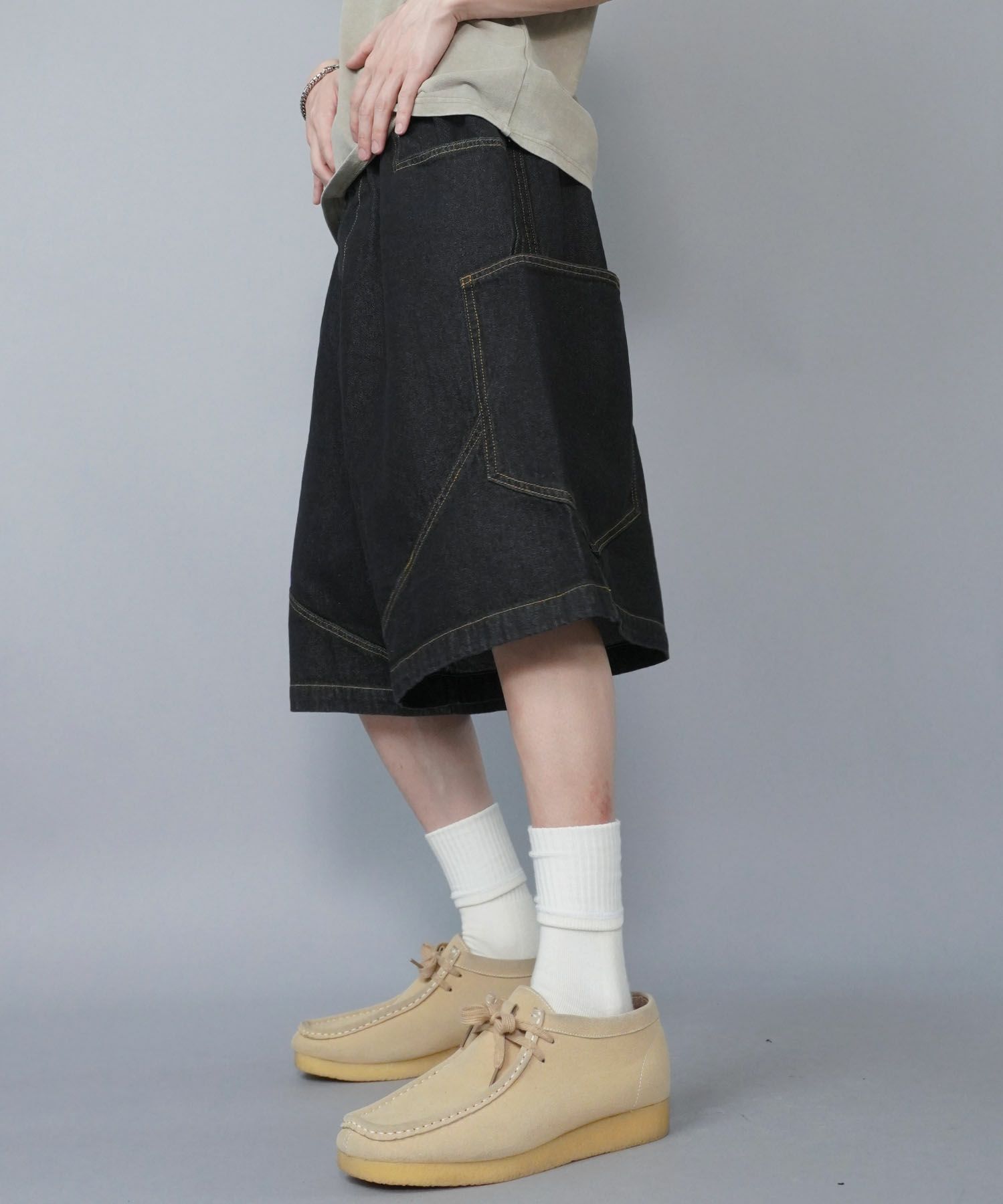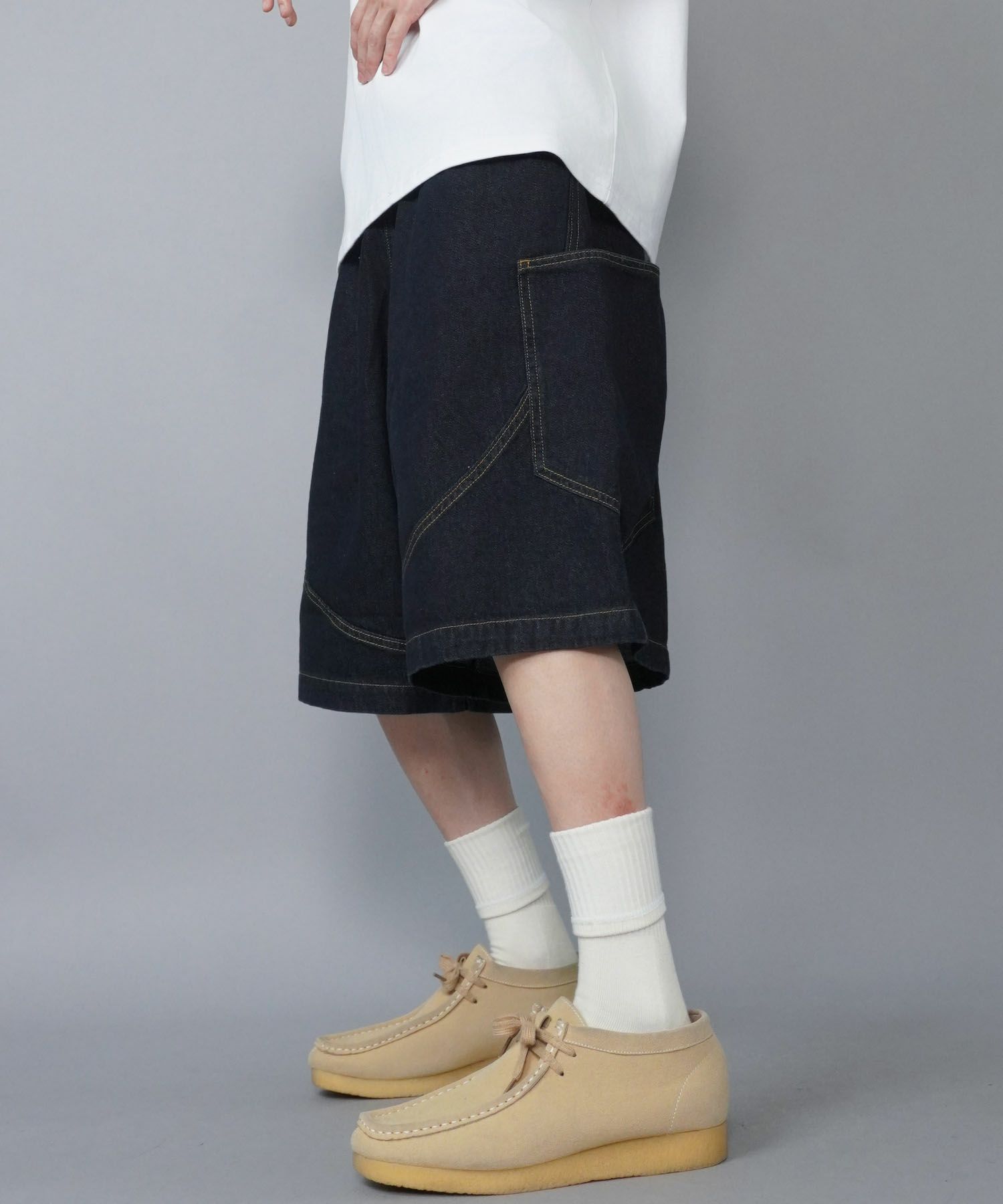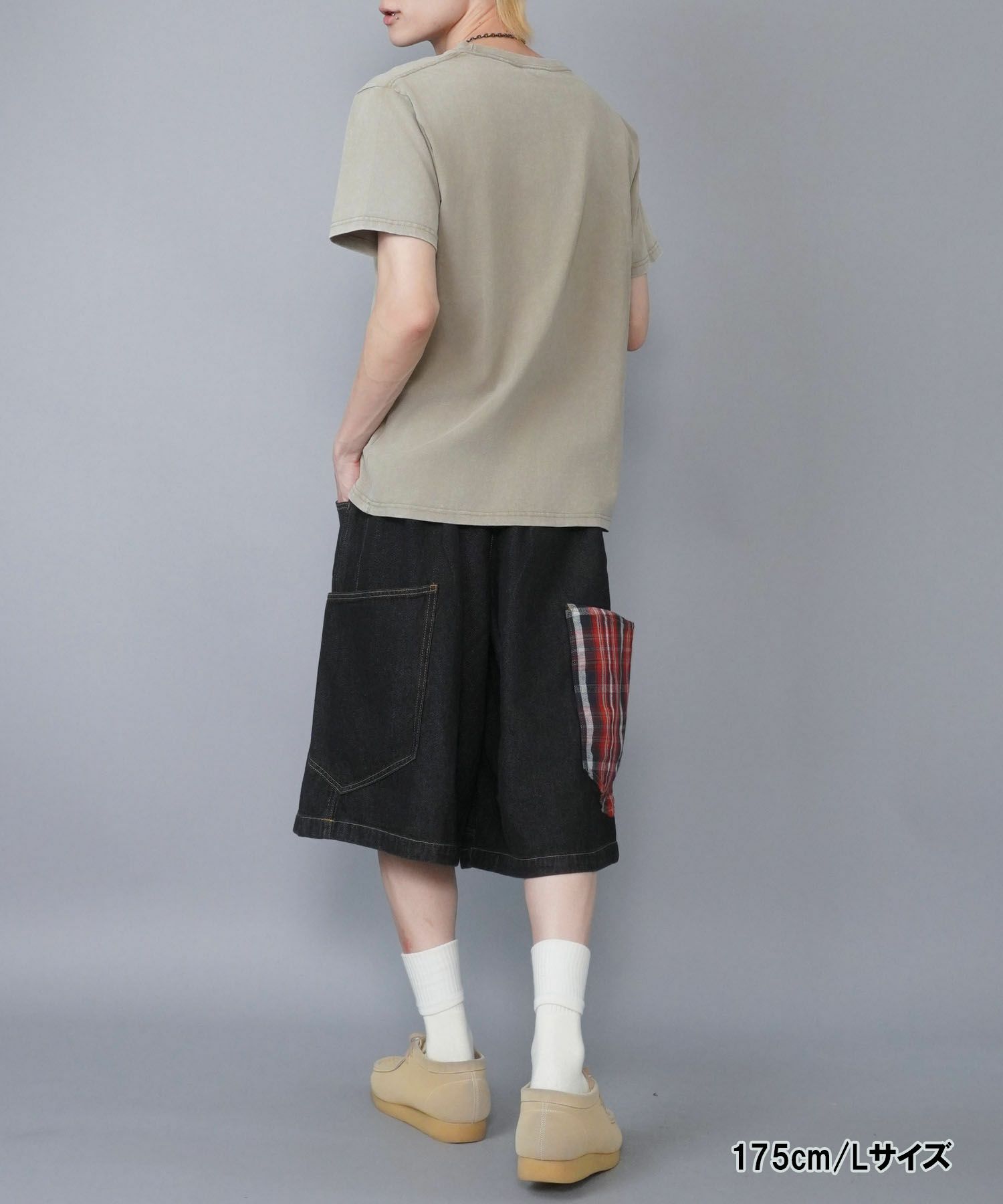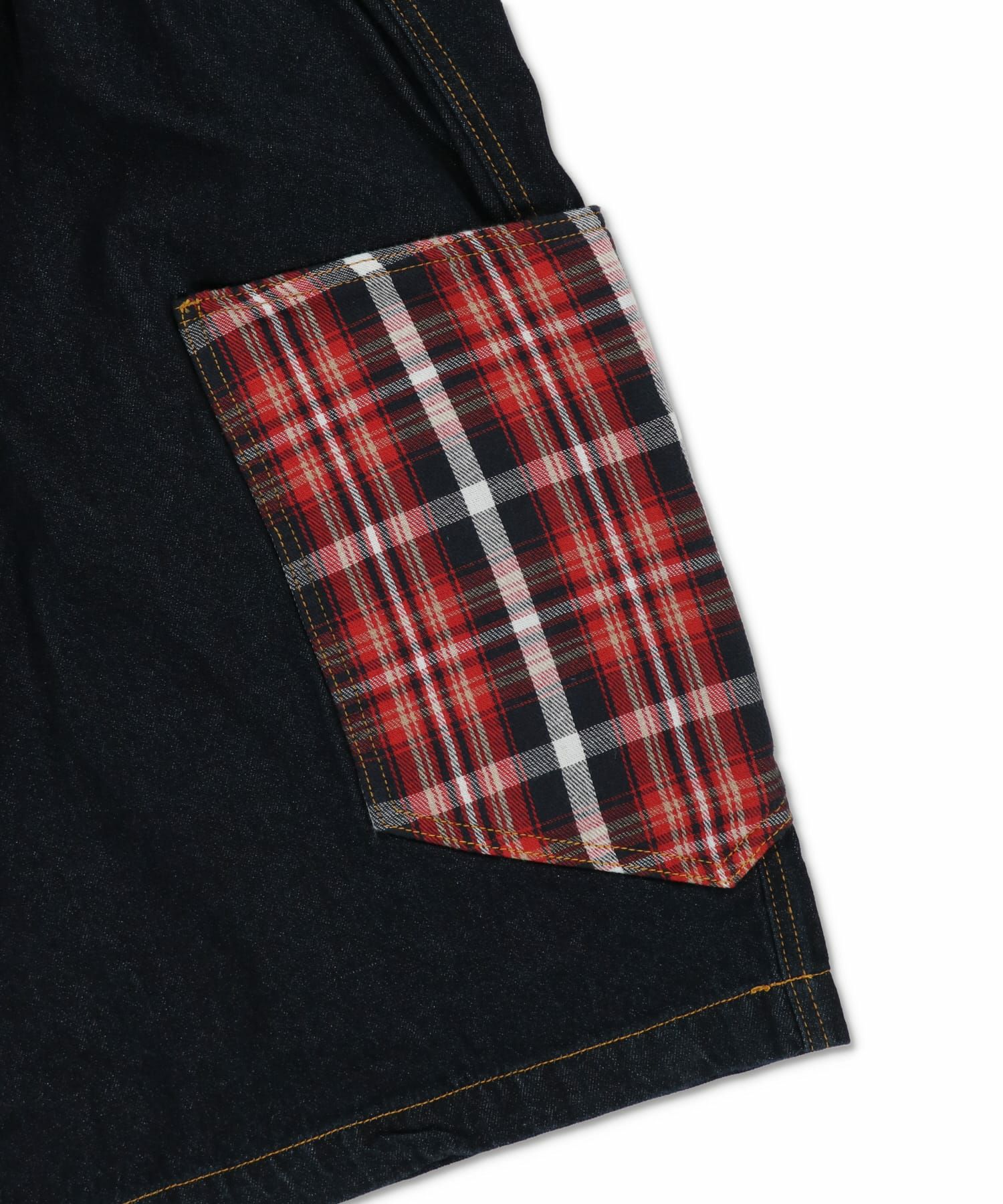 チェック切り替えが目を引くデニムハーフパンツが新登場。