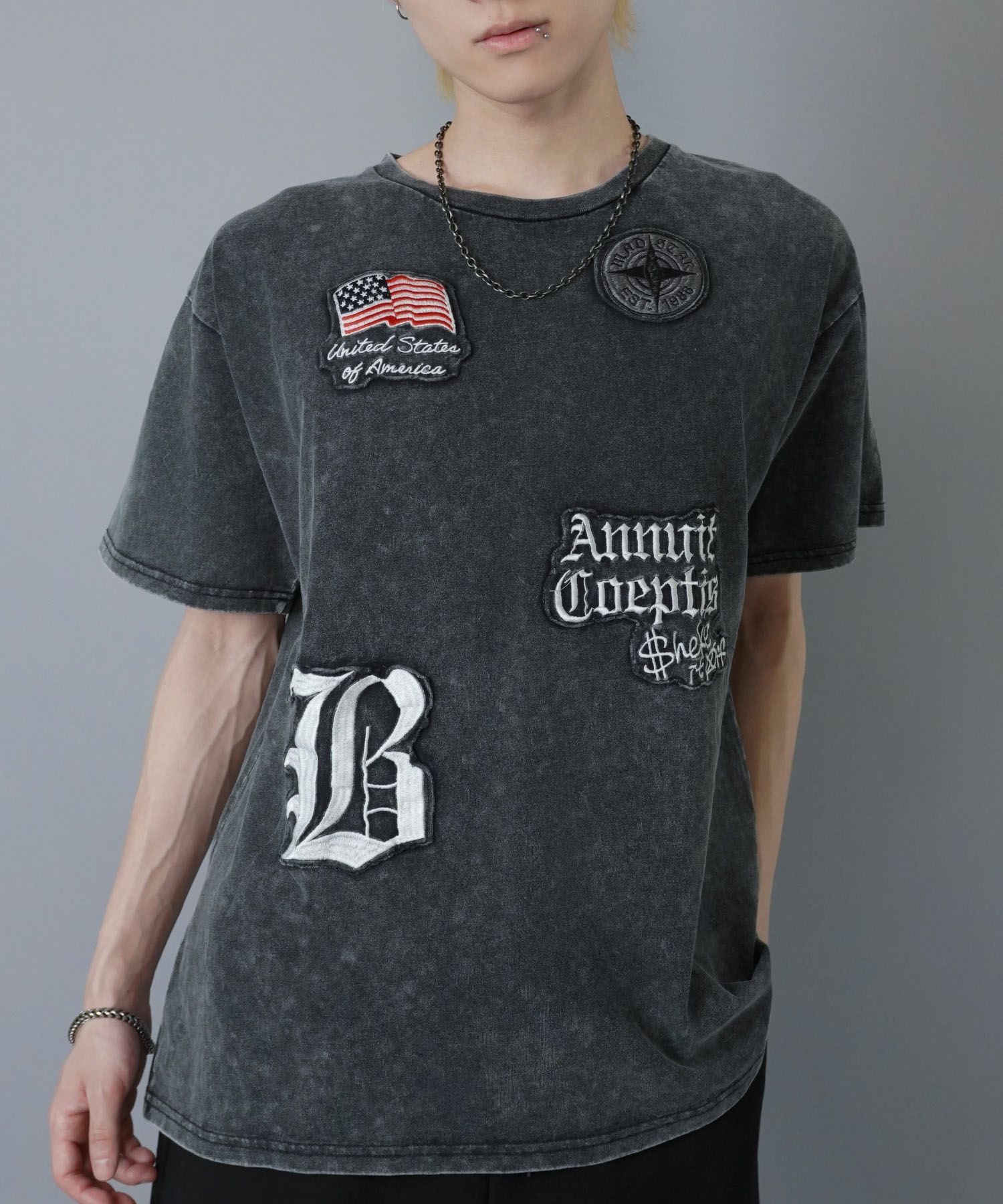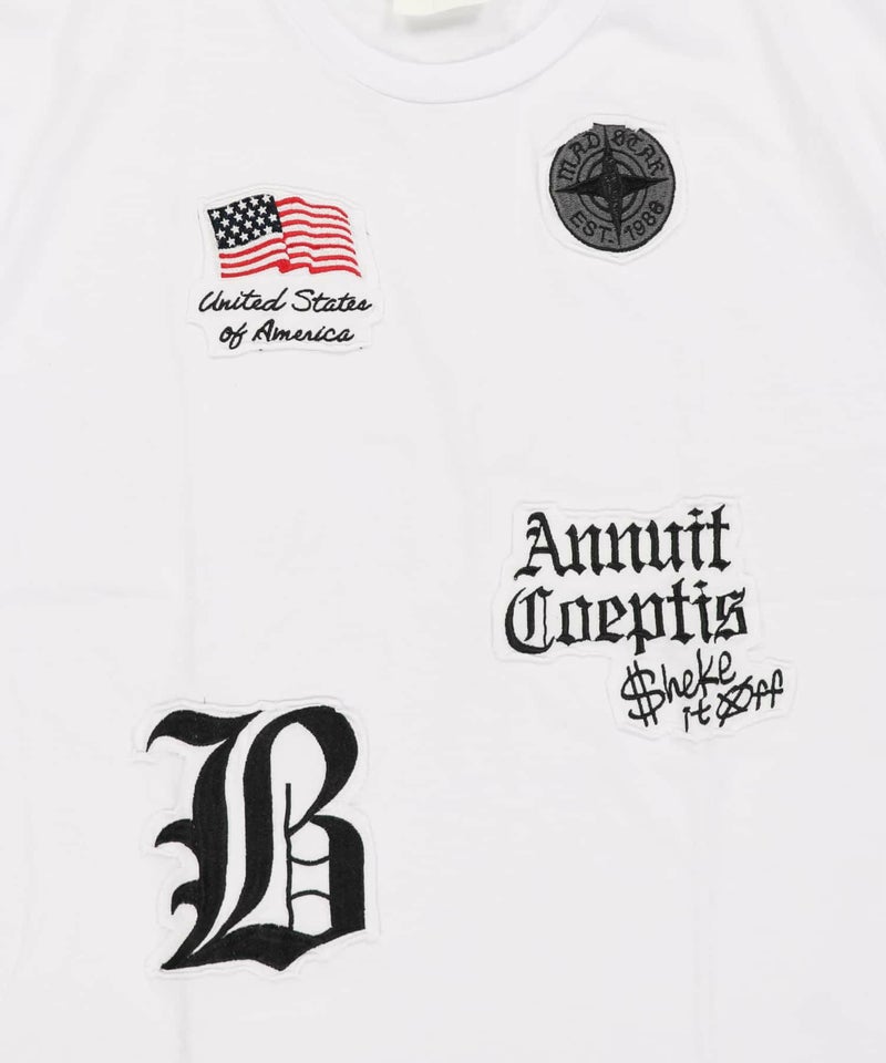 ワッペンをあしらった、ストリートTシャツ。