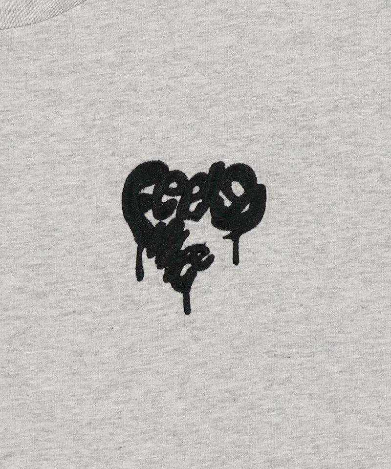 フロントにはさりげない刺繍のワンポイントハートロゴ、